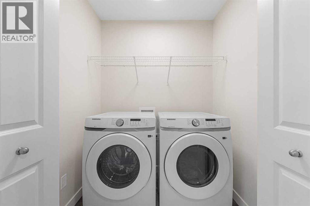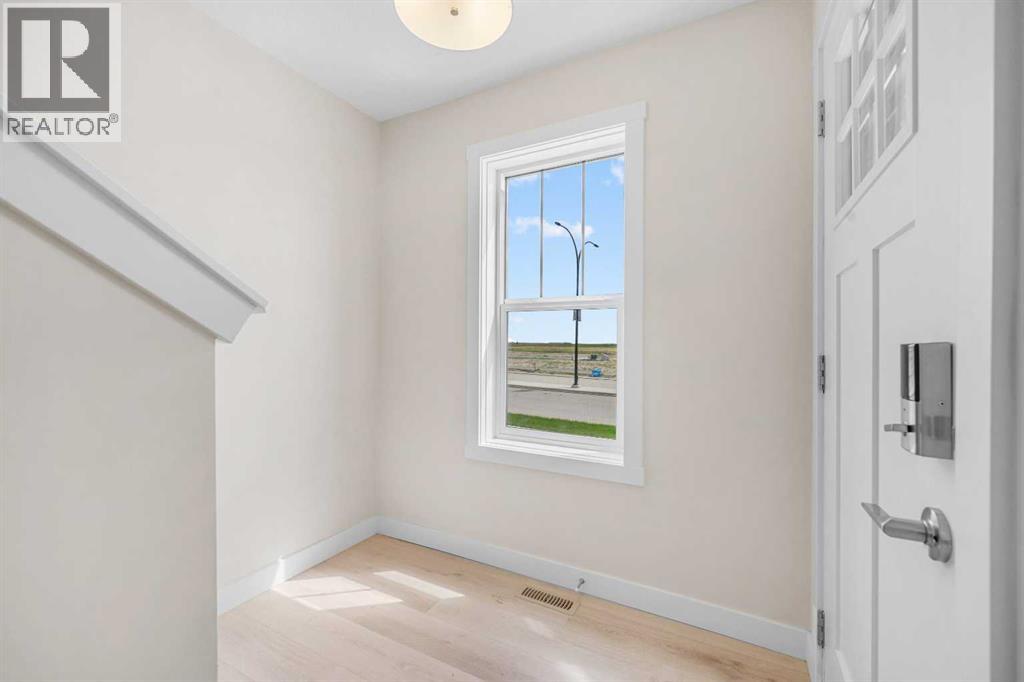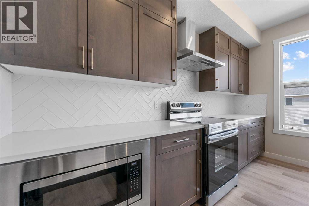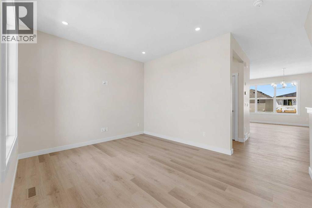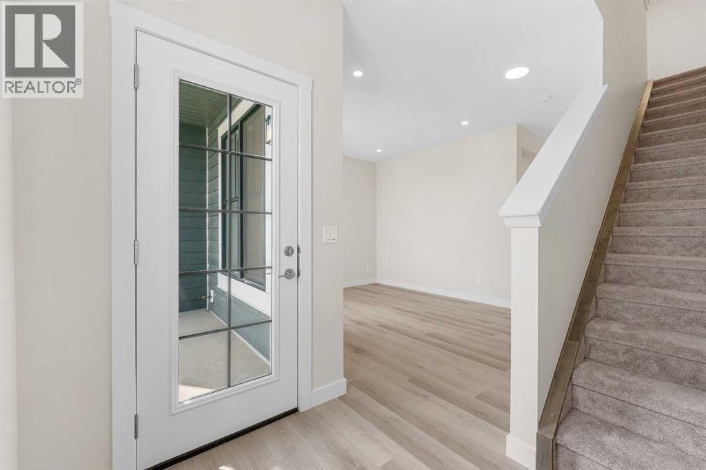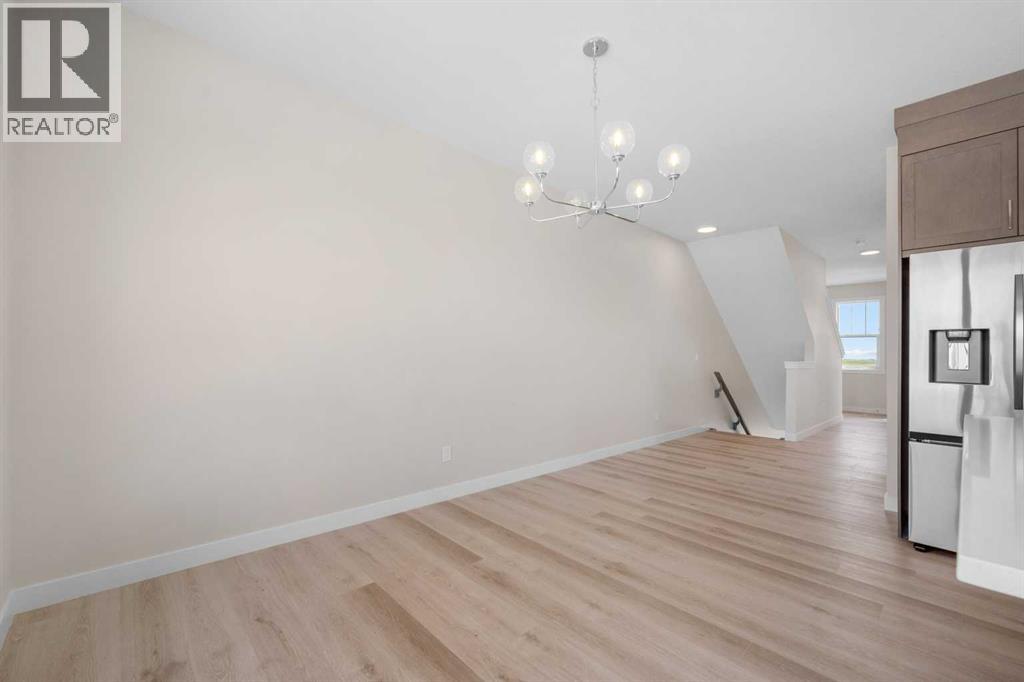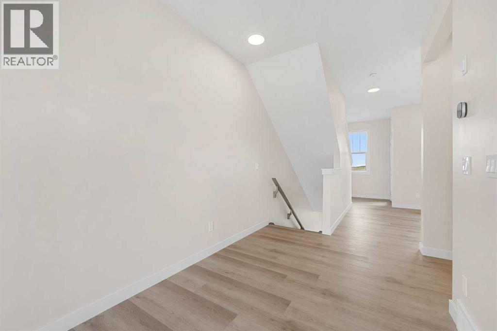 ** Brand New No Condo Fee Townhome Built by Genesis Homes ** Theo Model | 3 Beds | 2.5 Baths | Double Attached Garage | Main Level Den/Office | Incredible Open Floor Plan | Top of the Line Finishes | Quartz Countertops | Designer Curated Backsplash | Full Height Cabinets | Builder Package Stainless Steel Appliances | Gas Line to Range | Walk-in Pantry | Wide Plank LVP Flooring | Sizeable Bedrooms | Upper Level Hall Laundry | Smart Automated Home | Balcony | BBQ Gas Line | Double Attached Garage | James Hardie Siding. This stunning Theo model by Genesis boasts 1,687 SqFt, 3 bedrooms, 2.5 bathrooms and a spacious open floor plan layout that’s perfect for families, professionals, or anyone who loves extra space. The front door opens to a main level foyer with closet space and a flex den. With large windows and high ceilings this space is space has the versatility to be an office space with a peaceful retreat for work or creativity. Head upstairs to the 2nd level to a grand floor plan both open and functional. The kitchen is outfitted with sparkling quartz countertops, ample cabinet storage, a gas line and a stainless steel builders appliance package. The centre island in the kitchen is equipped with a barstool seating area making it the perfect space to enjoy small meals and socialize while you cook. The walk-in pantry is a bonus to your dry good storage. The dining room paired with the kitchen makes for an easy stove to table transition. The spacious living room is the perfect area to unwind with your family in the evenings and is ideal for hosting guests. Just off the living room is a door to your private balcony with a gas BBQ line for those summer cook outs! The uppermost level is paired with 3 bedrooms, 2 full bathrooms and hall laundry. The primary bedroom is a personal retreat with a deep walk-in closet and private 4pc ensuite bath with a deep tub/shower combo. Bedrooms 2 & 3 share the main 4pc bath with a single vanity and tub/shower combo. The upper level lau ndry is a treat as its located near all the bedrooms. The double attached garage secures you 2 year round secured parking and space for seasonal storage. Located just moments from essential amenities and nestled close to a picturesque park, you’ll enjoy easy access to shops, dining, and outdoor activities. Take in breathtaking mountain views and sunsets as you stroll by the serene pond. Hurry and book your showing at this gorgeous Genesis home today! (30812047)