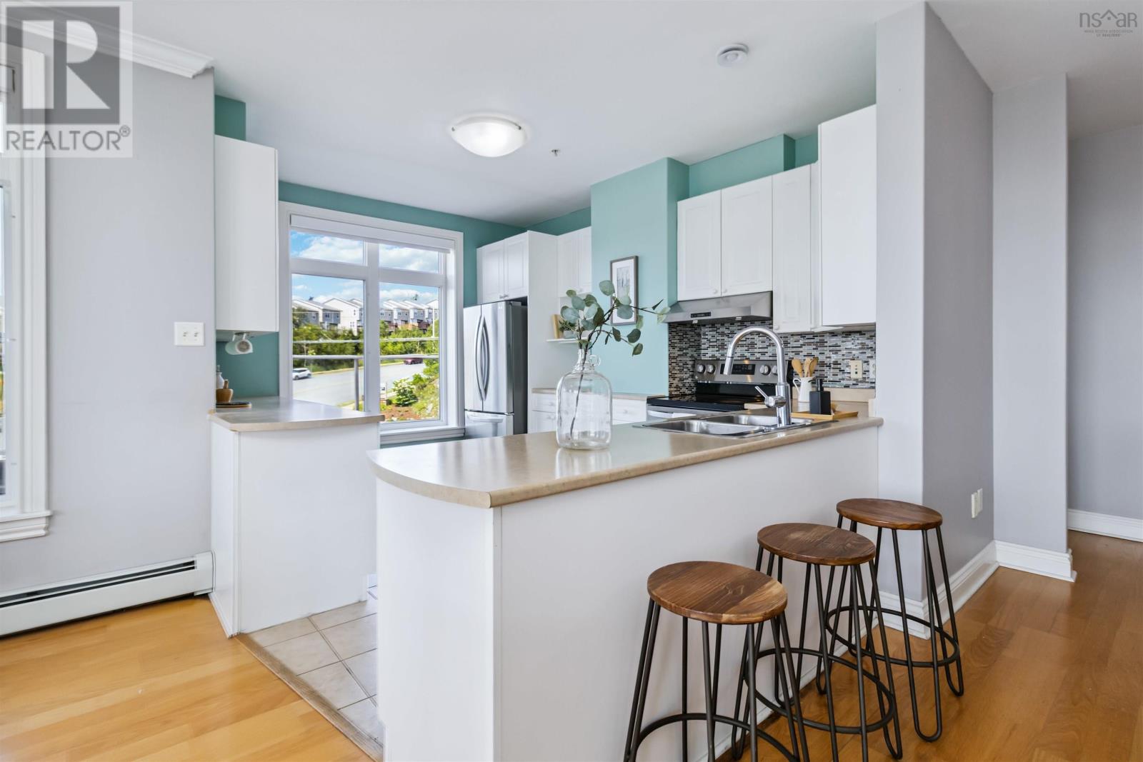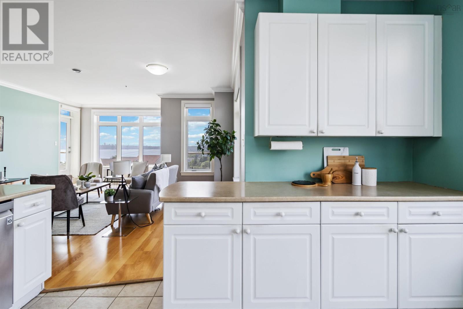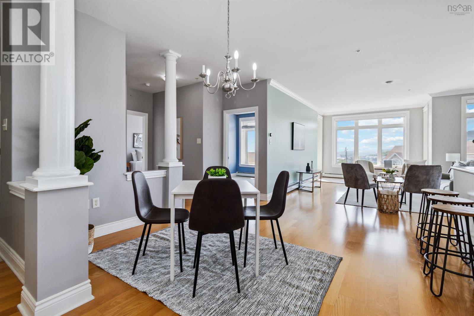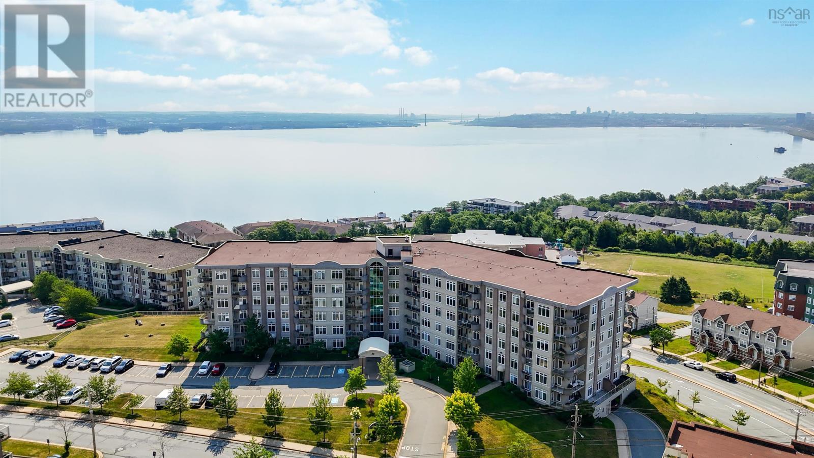 Soak in postcard-worthy, panoramic views of the Bedford Basin from this rare and luxurious 3-bedroom, 2-bath condo, one of the only 2 units in the building featuring two private balconies and access to an expansive additional outdoor space. The balconies nearly wrap around the entire unit, offering unmatched water views from every angle. From spectacular sunrises to summer regattas and dazzling city skylines, every window frames a stunning scene. Inside, the bright and airy open-concept layout is perfect for modern living, featuring a stylish kitchen with stainless steel appliances, generous cabinetry, and ample counter space. The spacious living area is filled with natural light and enhanced by high ceilings and remote-controlled window coverings for added comfort and convenience. The primary suite includes a walk-in closet and private ensuite, while the second and third bedrooms are both generously sized with large closets. Well maintained and move-in ready, this home also includes in-unit laundry with extra storage and refined finishes throughout. Condo fees include heat, hot water, underground parking, and a storage unit. Residents enjoy premium amenities such as a social room, gym, library, and car wash bay. Ideally located just minutes from the shops, restaurants, and conveniences of Larry Uteck, this exceptional condo delivers the ultimate in comfort, space, and lifestyle. (231105926)