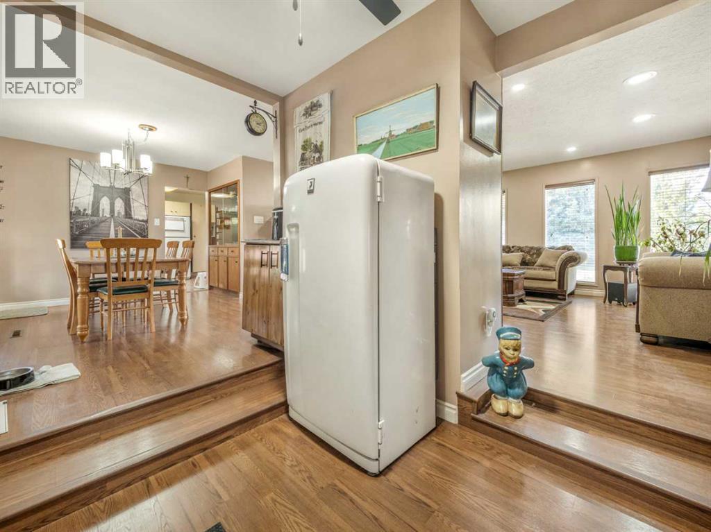 This beautifully maintained home in a sought-after South Lethbridge neighborhood offers five spacious bedrooms and two bathrooms, perfectly suited for families or anyone looking for space and style. Enjoy comfort and convenience with included appliances such as two fridges, stove, dishwasher, microwave, washer, dryer, and central air conditioning. The formal living room creates a welcoming focal point, complete with a cozy wood-burning fireplace that adds warmth and character, while the backyard fire pit sets the scene for relaxed evening gatherings. Recent upgrades shine throughout the property, including hot water on demand, underground sprinklers, fresh exterior paint, upgraded eaves troughs, and new shingles installed two years ago with a approximate 30-year lifespan. The garage door opener—with two remotes—was replaced two years ago for added peace of mind. With additional features included like window coverings, blinds, multiple ceiling fans, dual furnaces, water softener and a solar energy system for significant energy savings, this move-in ready gem blends practicality with polish in a welcoming community near parks, schools, and amenities (30864273)