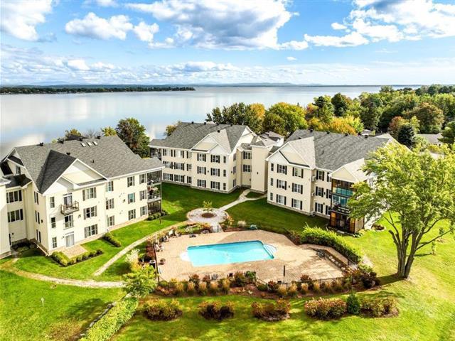 Sublime condo de 1340 p2 situé face au lac Champlain, voisin d'un golf et spa, à proximité de la décente de bateau, plage et services. Le terrain est aménagé avec piscine creusée chauffée. Cet unité de condo comprend 2 espaces au garage avec un rangement intérieur et un stationnement extérieur. Les plafonds sont de 9 pieds de hauteur avec hall d'entrée intime, cuisine avec comptoir en quartz et placard, adjacente à la salle à manger avec cellier, salon avec foyer plus vue exceptionnelle sur le lac. Les chambres sont spacieuses avec de grand garde-robe et la salle de bains est ultra moderne avec douche sans seuil. Vos invitées seront jaloux! (56057848)