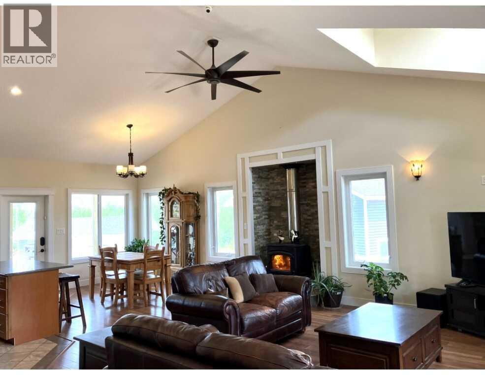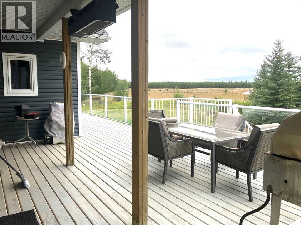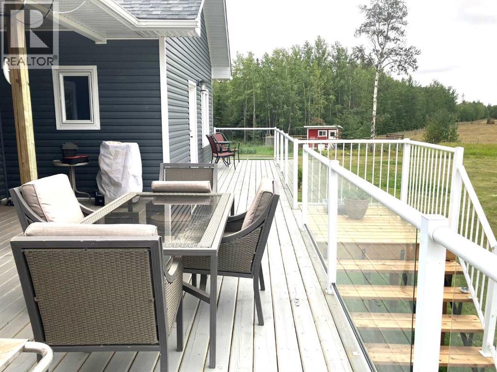Welcome to your dream acreage, perfectly situated between Peace River and Grimshaw, offering the tranquility of country living with an easy commute. This stunning 2014-built, 1,610 sq. ft. home boasts 4 bedrooms and 3 full bathrooms, meticulously designed for comfort and style. Step inside and be captivated by the open-concept layout, featuring a large kitchen and dining area—the heart of the home, perfect for family gatherings and entertaining. The kitchen is a chef's delight, with beautiful maple cupboards and ample counter space. Overlooking the great room, the charming dormer windows fill the space with natural light, creating a bright and airy atmosphere and adding to the country feel is the large wood burning free standing stove. The master bedroom is a true sanctuary, featuring luxurious in-floor heating, large walk in closet and a full 4 piece bathroom for privacy and relaxation. Every detail has been considered, with extra insulation throughout the home, including approx R 80-100 insulation in the ceiling and additional insulation in the walls, ensuring energy efficiency and year-round coziness. The fully finished basement includes a majestic bedroom, another recreation/games room that encompasses the majority of the lower level. a 4 piece bathroom and a meticulously maintained mechanical room housing the HE furnace, hot water on demand, storage and the water equipment for the well. The property's outdoor features are just as impressive. A large deck with new railings and stairs offers the perfect spot to relax and take in the fantastic views. The large, recently built 32' x 28' shop is a standout feature, complete with two overhead doors, a 12-foot ceiling, and water supplied from its own dedicated well. The 13-foot ceiling garage is a hobbyist's dream, featuring radiant tube heating and extra concrete on the perimeter slab,An additional 16' x 32' out building with a concrete pad provides excellent cold storage for all your lawn and garden needs. W ith only half a mile of gravel road, access to this property is a breeze. Don't miss this opportunity to own a piece of paradise, combining modern amenities with pleasant walking trails and breathtaking scenery. (30950921)