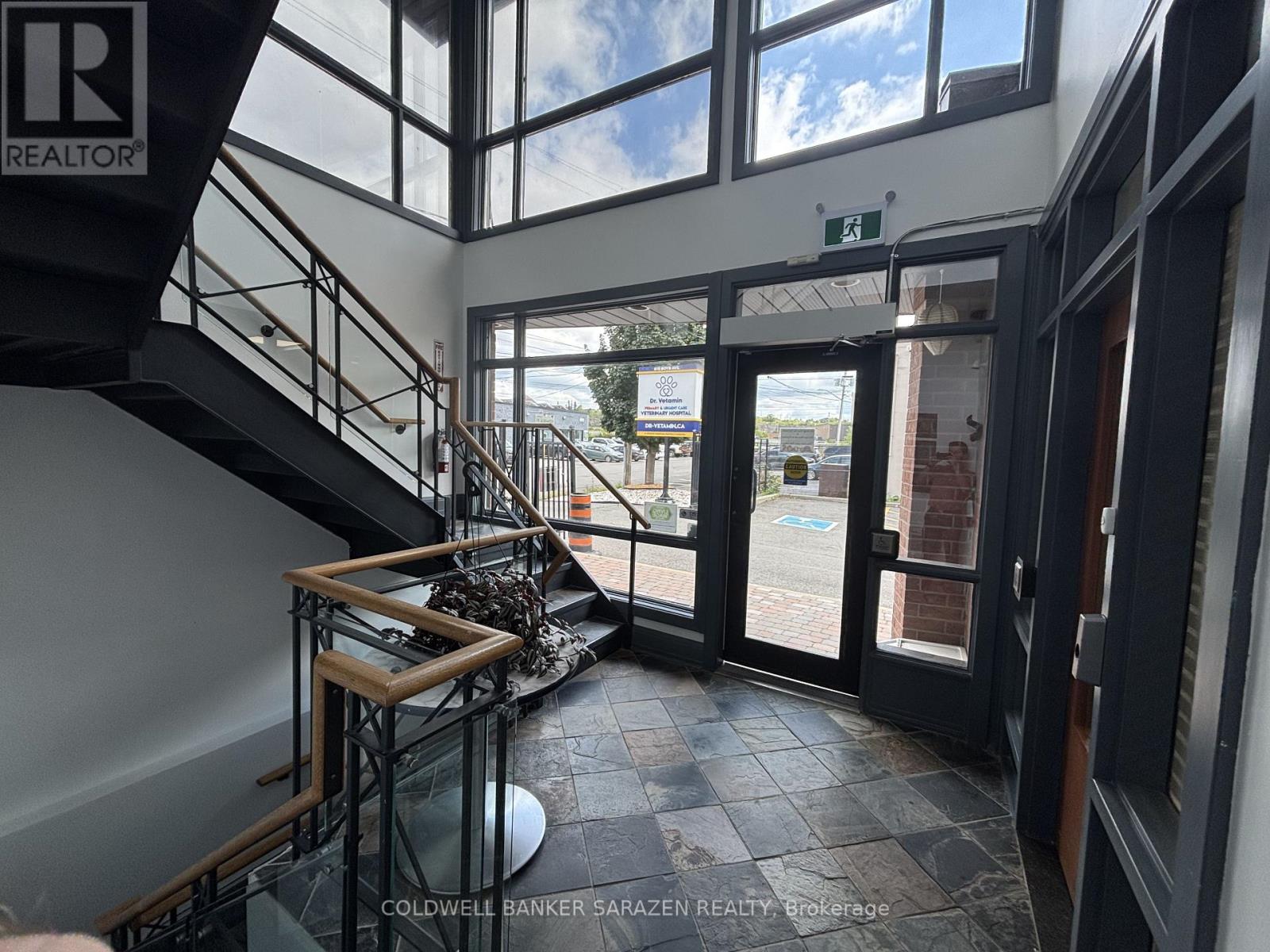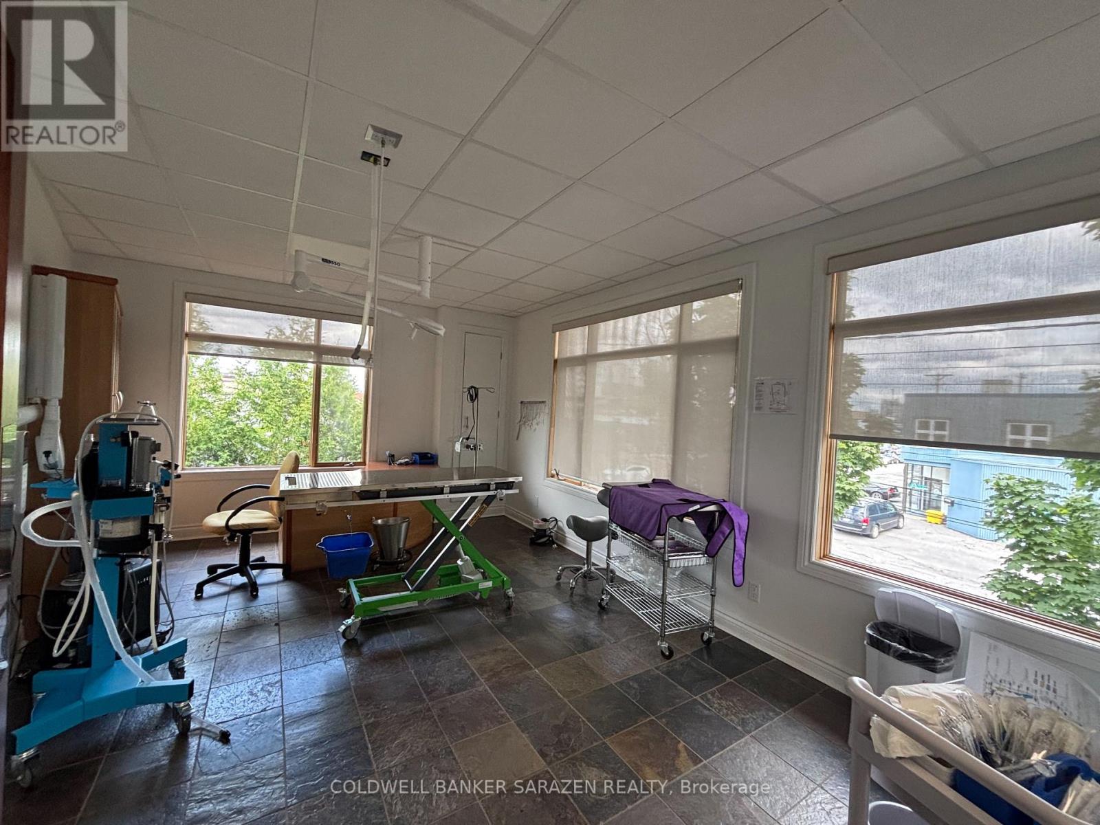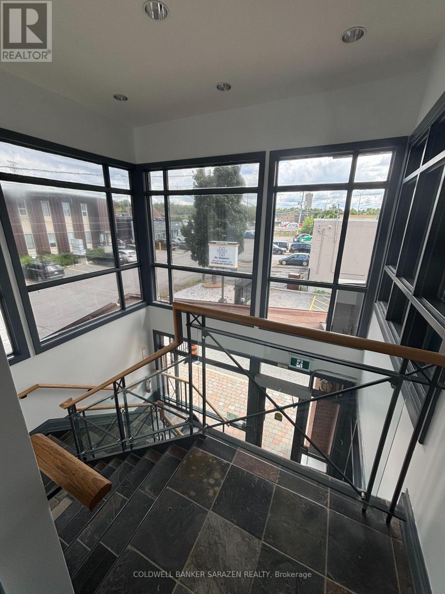 Turn-key second floor professional/medical office space available for lease. Suite 200 measures approx. 2,000 SF and features 5 enclosed offices, a kitchenette area, a washroom and 2 entrances. The unit has many large windows, offering plenty of natural light and built-in desks and cabinetry to fit multiple uses. A great opportunity for any business in an ideal central location in the Carling Ave industrial park. The balance of the building is medical use. Zoning allows for a wide variety of uses. (41038301)