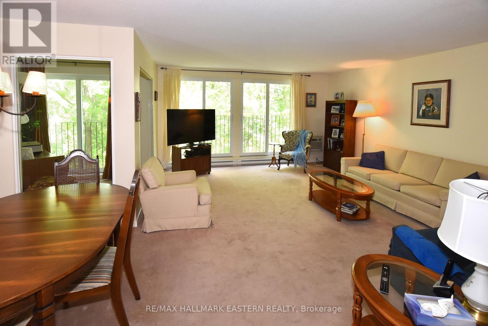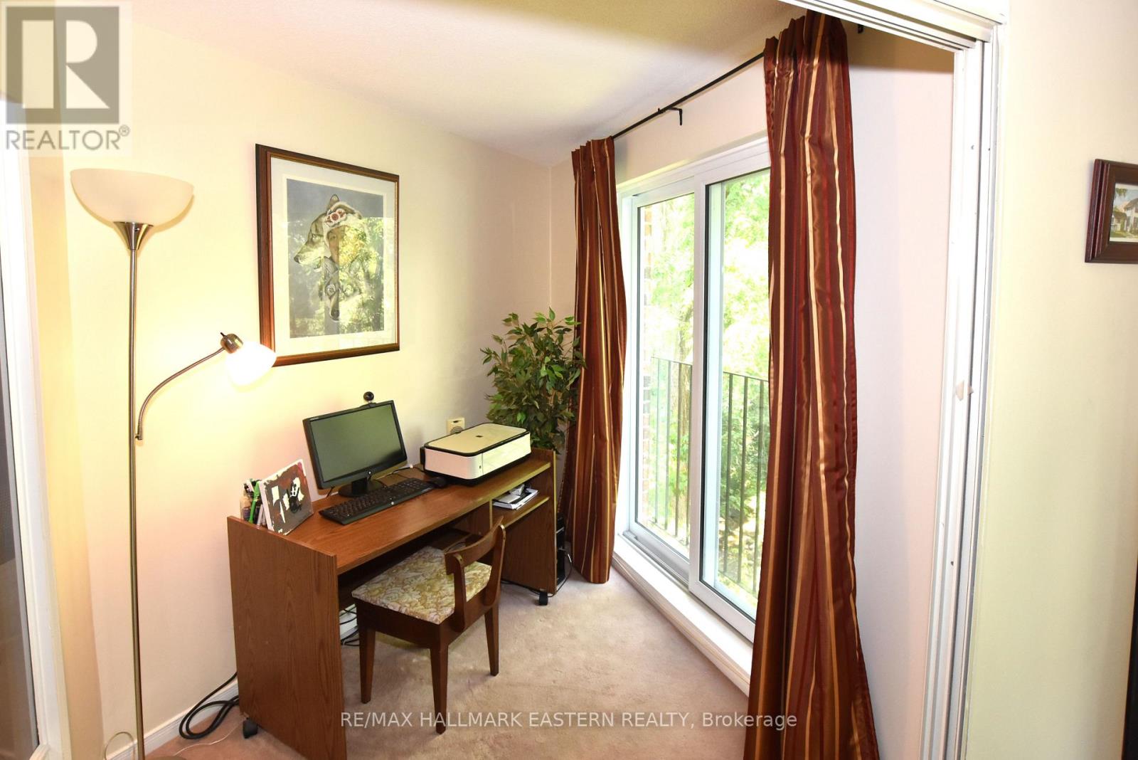 Bright and well maintained 2-bedroom, 2-bathroom condo at "The Maples" . This spacious, open-concept home features a bright living and dining area with large patio doors offering peaceful views of Bear Creek. Enjoy the comfort of a generous living room, a dedicated office nook with patio door just off the main living area, and the convenience of in-suite laundry. The primary suite includes its own bathroom for added privacy. Residents at "The Maples" enjoy secure entry, heated underground parking, a private storage locker. Access to amenities including a gym, common lounge, and library. Located in a beautifully landscaped setting, the condo is just close to Riverview Park, across from the Otonabee River, and close to shopping, public transit, and essential amenities. Whether you're looking to downsize or settle into a low-maintenance, comfortable home in a prime location, this unit is a perfect choice. (41069377)
