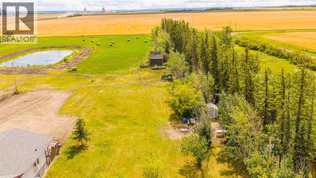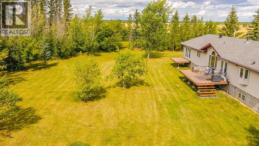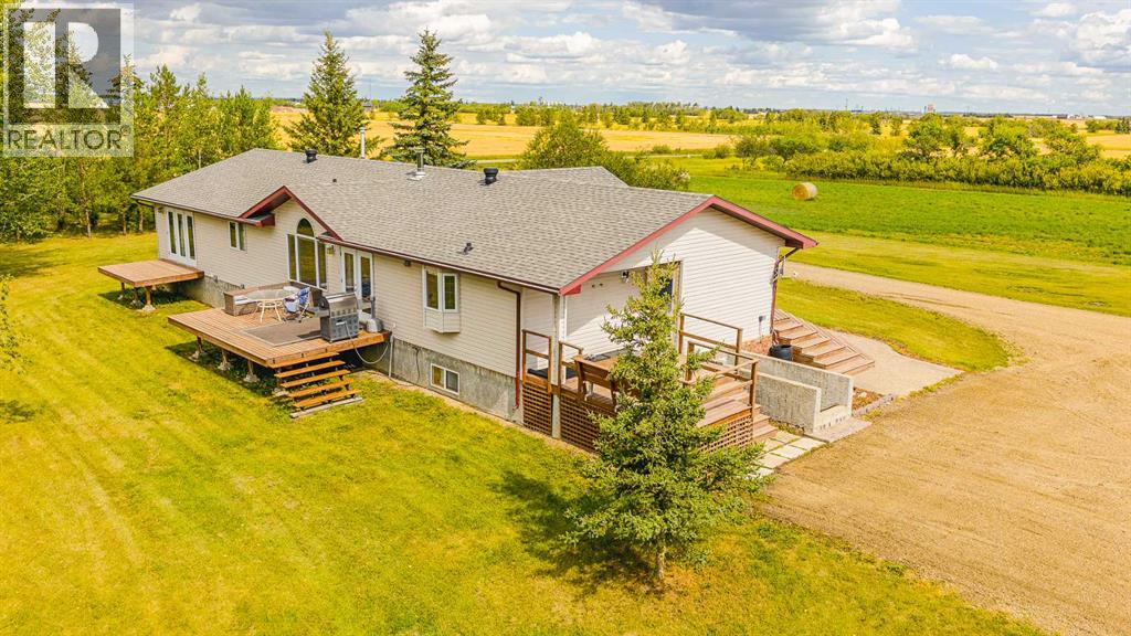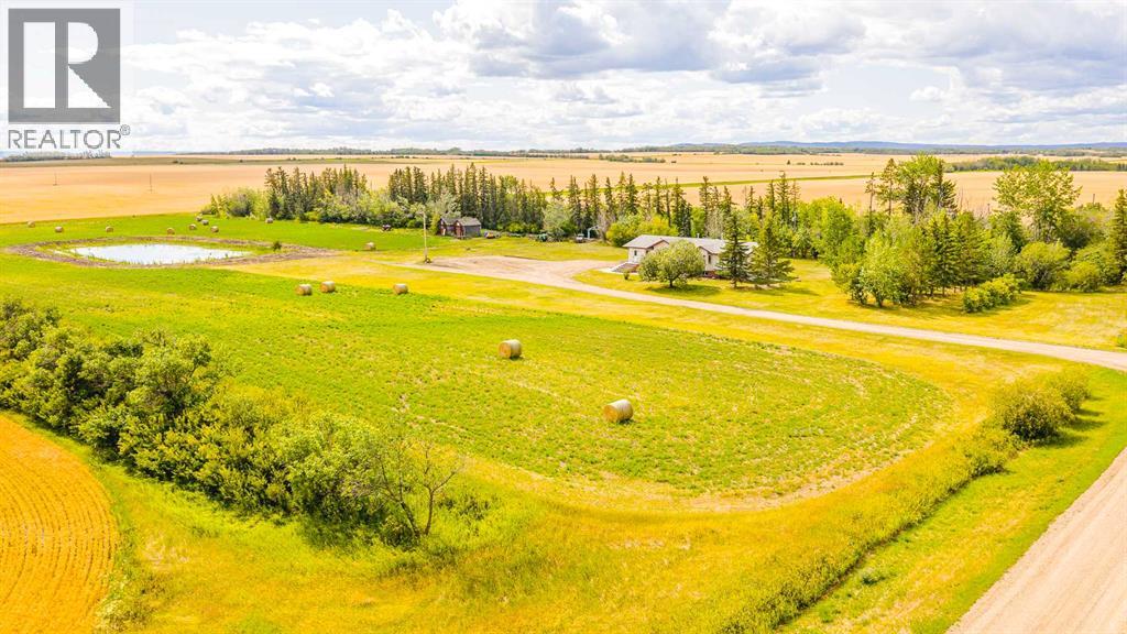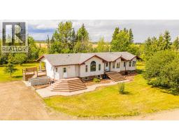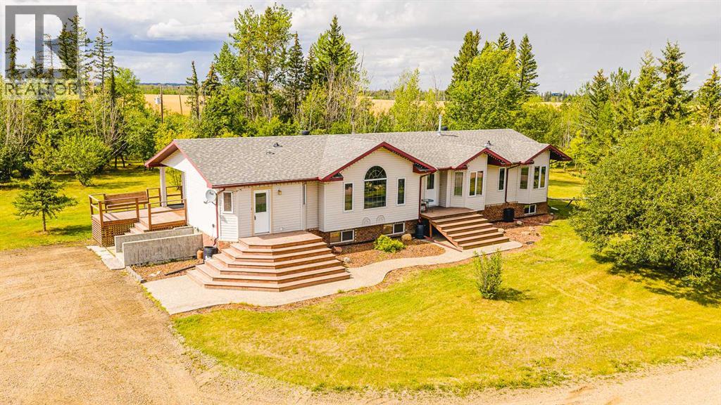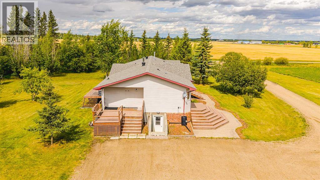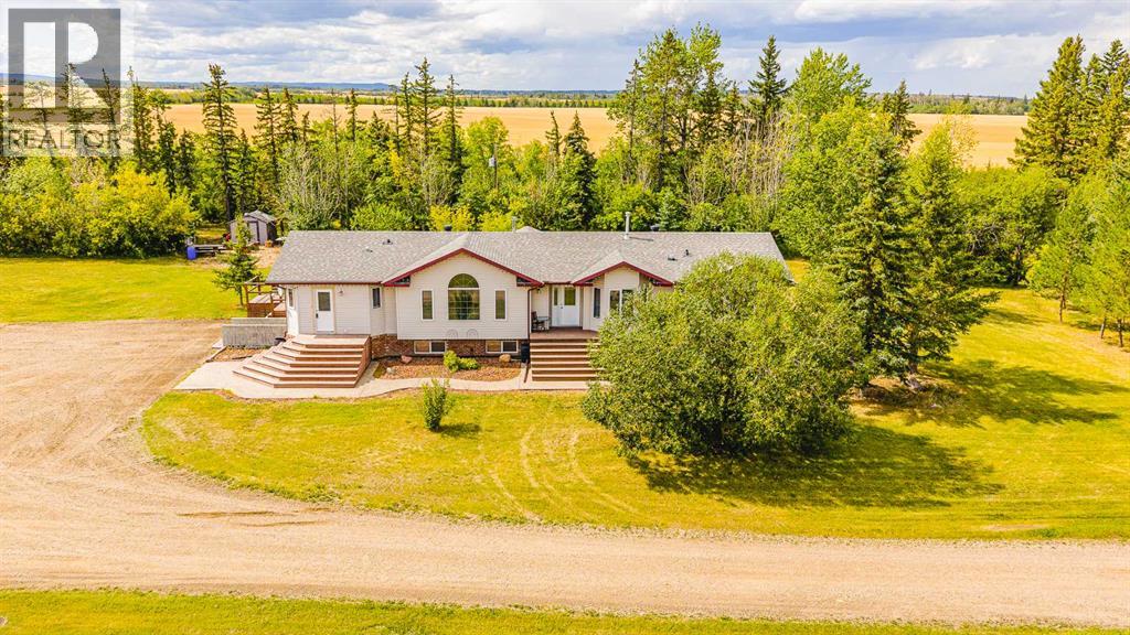 Nestled on 24 serene acres just a stone’s throw or a few minutes from Rycroft—this striking 5-bedroom, 3-bathroom bungalow with a finished basement blends graceful countryside living with thoughtful modern touches. Vaulted ceilings, bay windows and an open-concept design define the heart of the home, where a chef’s kitchen, outfitted with rich cherry oak cabinetry, black and stainless steel appliances, and a cozy eat-up bar, flows seamlessly into a dining area spacious enough for memorable family gatherings (fitted for wood stove also). French doors open onto a deck with a natural gas BBQ hookup—perfect for summer celebrations against a backdrop of tall trees, a fire pit, and lush hay fields. The tranquil primary suite offers private morning escapes with its own deck, walk-in closet, and a spa-like ensuite featuring a corner jetted tub and separate shower and ceramic tile flooring. At the other end of the home, a large boot room and conveniently located main-floor laundry serve the household well, and a three-piece washroom off the back entrance keeps mudroom traffic flowing. Downstairs, discover a versatile space with its own entrance—ideal for conversion into a rental suite or in-law accommodation. It includes an entertainment room, two additional bedrooms, a spacious foyer, and plenty of unfinished storage space that’s prepped and plumbed for another bathroom—offering endless potential. Practical updates include a brand-new high-efficiency furnace (2025), Culligan water treatment system, in-floor heating in basement, and shingles replaced in 2021. The property is currently on gravel roads, with paving slated for the near future. Located roughly 45 minutes from Grande Prairie, this home sits amidst agricultural landscapes and minutes from essential and enriching amenities in nearby Spirit River and Rycroft. Book your private showing today! (30978938)