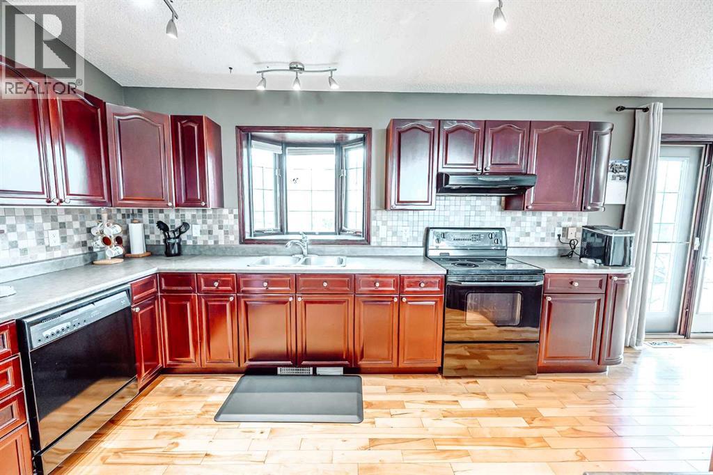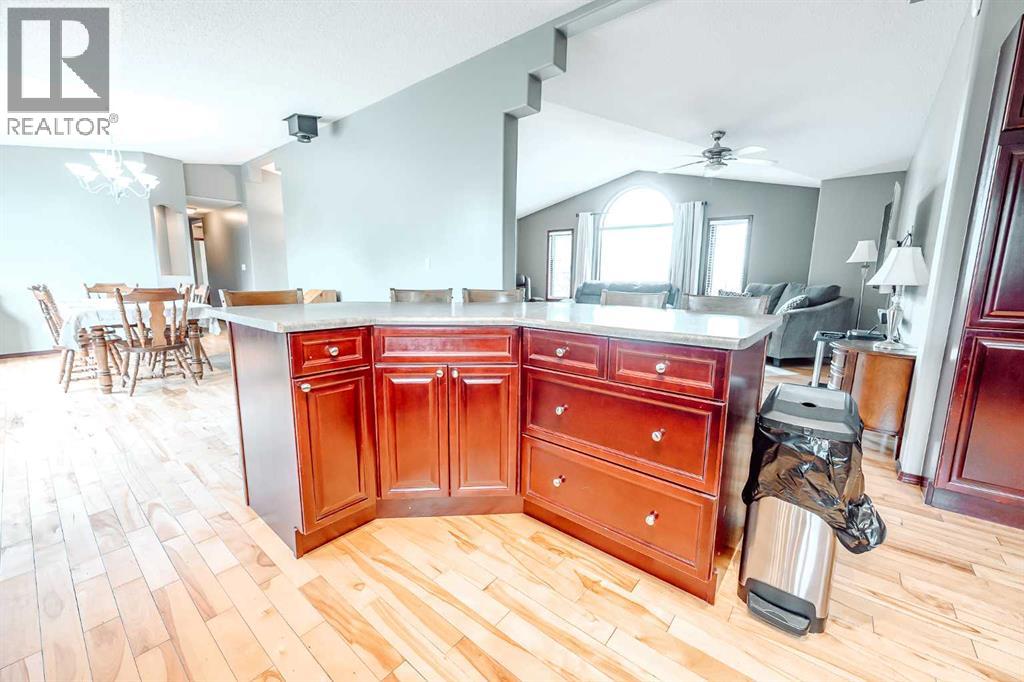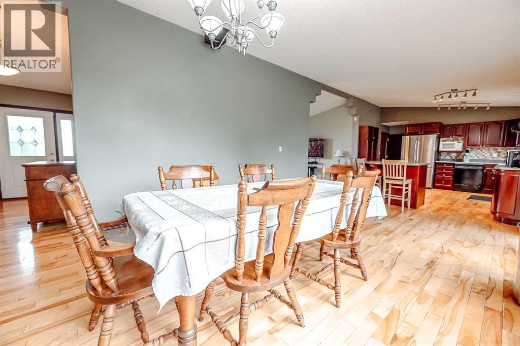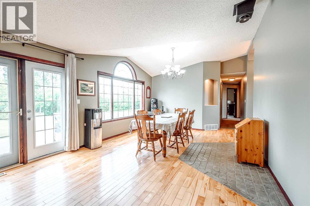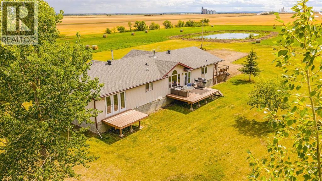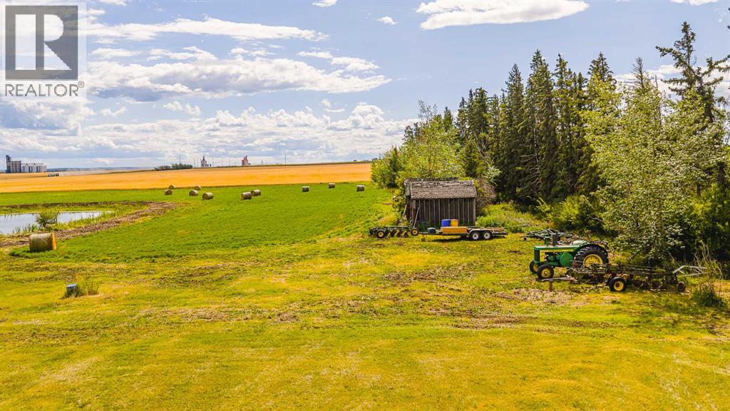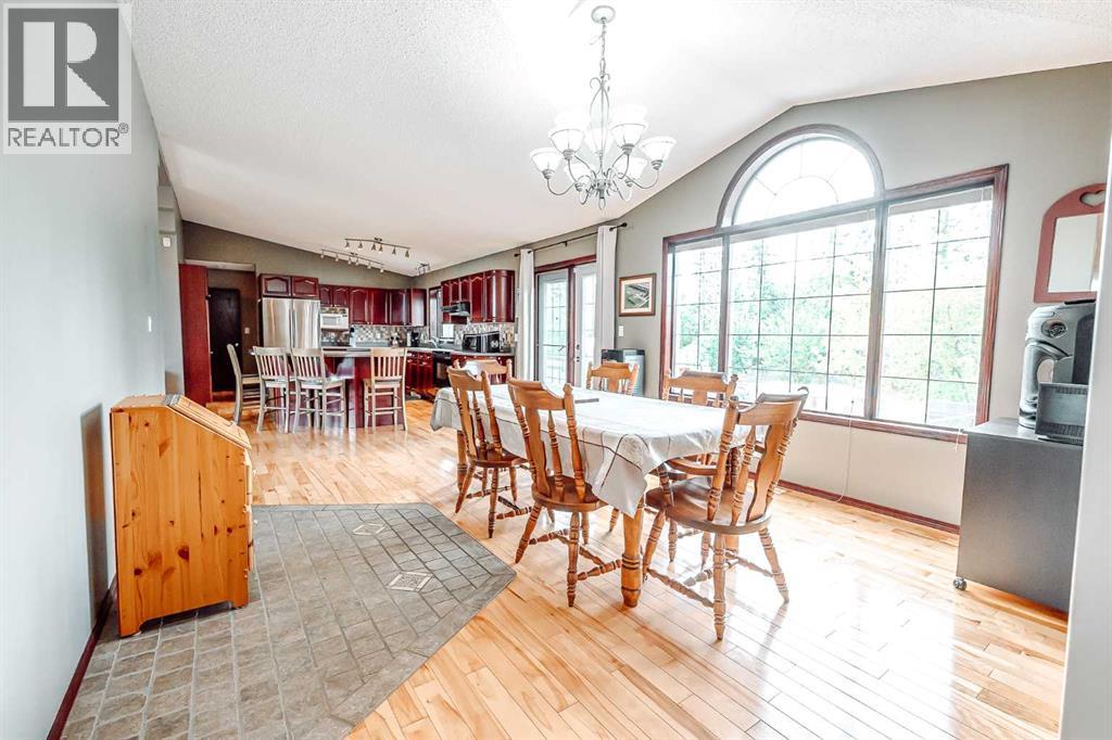 Nestled on 24 serene acres just a stone’s throw or a few minutes from Rycroft—this striking 5-bedroom, 3-bathroom bungalow with a finished basement blends graceful countryside living with thoughtful modern touches. Vaulted ceilings, bay windows and an open-concept design define the heart of the home, where a chef’s kitchen, outfitted with rich cherry oak cabinetry, black and stainless steel appliances, and a cozy eat-up bar, flows seamlessly into a dining area spacious enough for memorable family gatherings (fitted for wood stove also). French doors open onto a deck with a natural gas BBQ hookup—perfect for summer celebrations against a backdrop of tall trees, a fire pit, and lush hay fields. The tranquil primary suite offers private morning escapes with its own deck, walk-in closet, and a spa-like ensuite featuring a corner jetted tub and separate shower and ceramic tile flooring. At the other end of the home, a large boot room and conveniently located main-floor laundry serve the household well, and a three-piece washroom off the back entrance keeps mudroom traffic flowing. Downstairs, discover a versatile space with its own entrance—ideal for conversion into a rental suite or in-law accommodation. It includes an entertainment room, two additional bedrooms, a spacious foyer, and plenty of unfinished storage space that’s prepped and plumbed for another bathroom—offering endless potential. Practical updates include a brand-new high-efficiency furnace (2025), Culligan water treatment system, in-floor heating in basement, and shingles replaced in 2021. The property is currently on gravel roads, with paving slated for the near future. Located roughly 45 minutes from Grande Prairie, this home sits amidst agricultural landscapes and minutes from essential and enriching amenities in nearby Spirit River and Rycroft. Book your private showing today! (30978938)