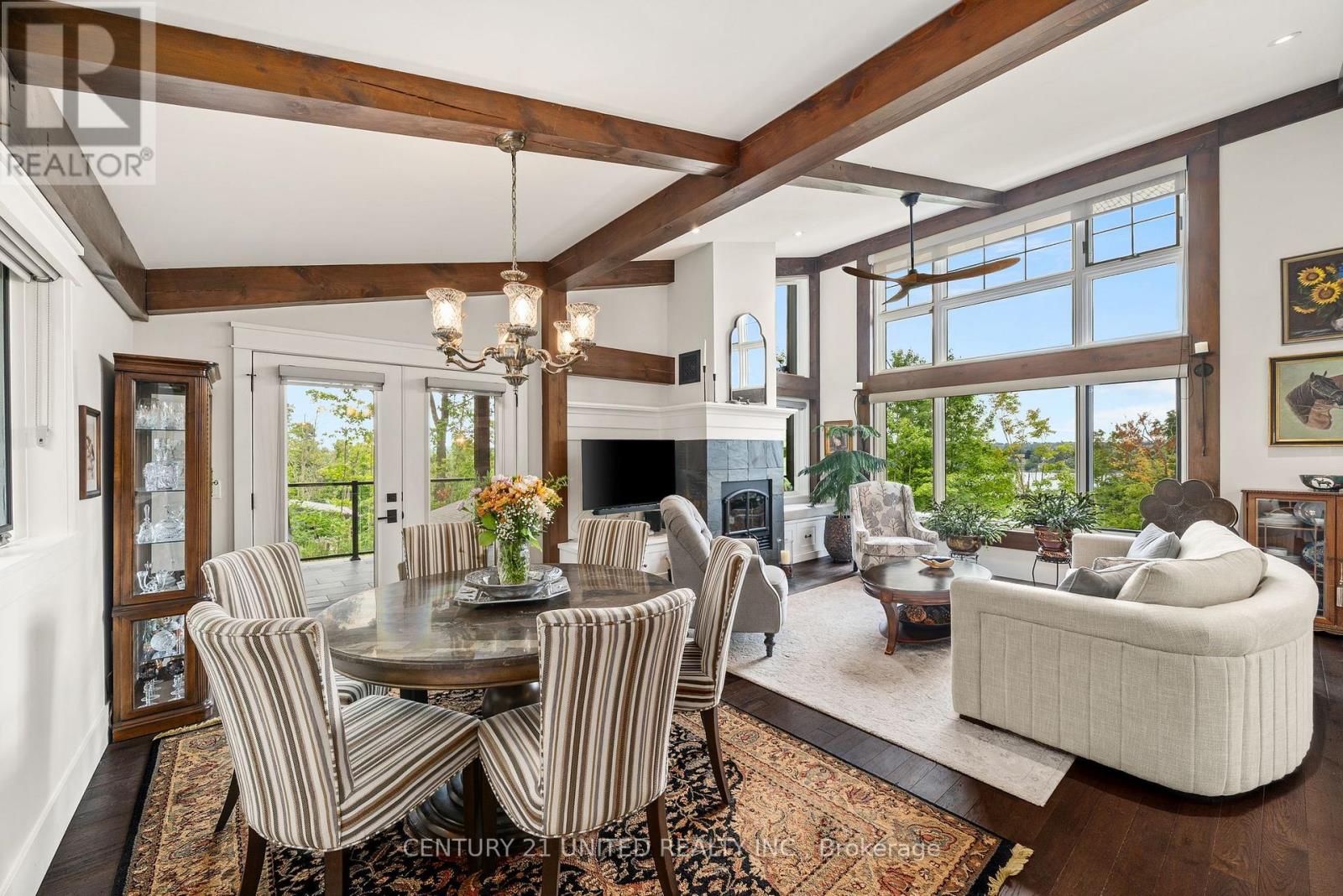 Architecturally intentional and expertly engineered, this 2020 Discovery Dream Home was designed for those who value privacy, elevation, and refined everyday living. Set high on a double lot with expansive lake views, the home includes deeded waterfront access with a private dock-offering a lakeside lifestyle without the maintenance of direct waterfront ownership. Inside, soaring 13-foot vaulted ceilings, exposed timber beams, and precision craftsmanship define the open, light-filled interior. The layout is intentionally designed for couples, professionals, or those downsizing without compromise-featuring two spacious bedrooms and a dedicated sauna and gym retreat with shower, easily converted to additional living space if desired. The primary suite offers a luxurious ensuite with soaker tub, while two additional powder rooms support both daily living and entertaining. An oversized screened-in deck with vaulted ceiling and integrated heating extends the main living space year-round, positioned to take in the surrounding lake and natural setting. Armour stone landscaping, established gardens, and a double heated garage complement the home's elevated setting-shared by neighbouring executive residences along the hillside. Additional features include a lifetime-warranty roof, Energy Star-rated windows and doors, and meticulous attention to long-term performance and comfort throughout. Located just 10 minutes to Peterborough and approximately one hour to the GTA, this is a rare opportunity for buyers seeking architectural beauty, privacy, and a home designed around lifestyle. (41088136)