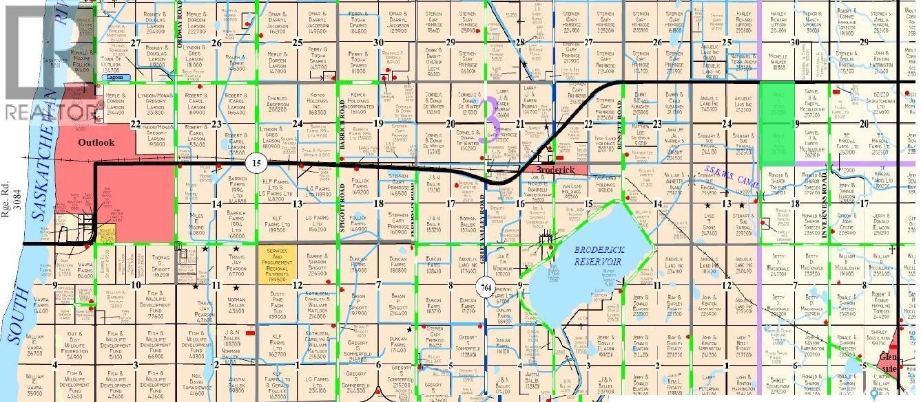 Half Section of farmland Irrigated from SSWES Canal via the Broderick Reservoir. Incredible irrigation expansion opportunity for POTATO and grain producers in the Broderick – Outlook area. This half section is located 3 miles east of Broderick and boasts approx. 266 irrigated acres. With natural drainage, an ideal irrigation soil profile, and no sloughs, this highly productive land is suitable for potato production and currently qualifies for BASF seed canola production. More irrigated land available to purchase in the area. This turnkey property is truly a rare opportunity! The property includes x2 Valley 7-Tower Centre Pivots, with the recent upgrades including: • 100hp variable frequency drive pump motors and computer pump panels, allowing the pivots to run independently or simultaneously. • Gear boxes and Nelson valves. • Tower boxes and collector rings. • Valley ICONX computer smart panel with AgSense satellite communication. Note: x4 hopper bottom grain bins are NOT included with the property. Farmland Summary 2 parcels 315 title acres (ISC) SAMA Information 315 total acres 315 cultivated acres $708,000 total 2025 assessed value (AV) $359,619 average assessment per 160 acres 61.4 soil final rating (weighted average) (28763193)