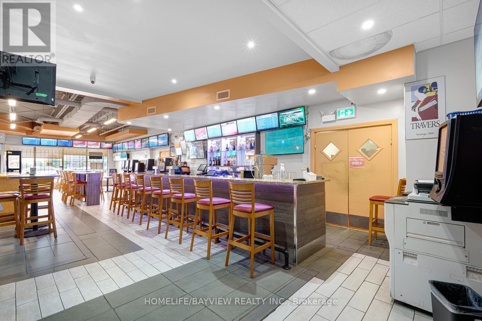 Bar with Champions off-track betting and restaurant for sale. 3 businesses in one: Online gaming, bar, & Thai restaurant. LLBO for 85 seats. Steady income: OLG online betting commission averages $12,000/month, Lotto machine commission $1,500/month, ATM commission $900/month, bar sales $25,000-$30,000/month, Thai restaurant sales $30,000/month. Easy operation with only 2 FT + 2 PT staff. Established for many years and in a prime plaza surrounded by high density residential area. Full kitchen could be converted to any type of cuisine. Rent $6900/month includes TMI & HST. Lease 3 years + 5 years option to renew. Don't miss this amazing opportunity. Please do not go direct without appointment. Do not talk to staff/customers. (41105120)