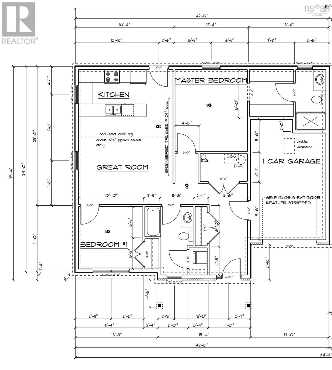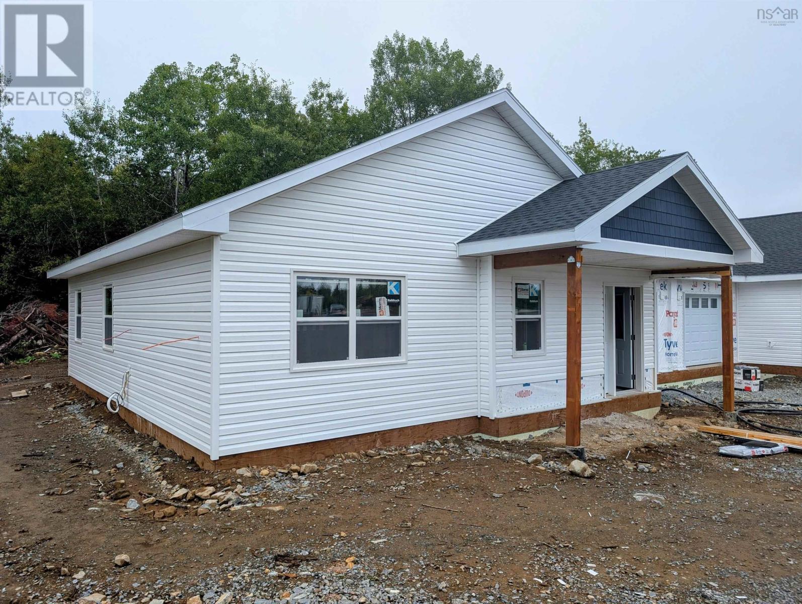 Welcome to Meadow Ridge Estates modern bungalow living at its finest!Just 20 minutes from downtown Halifax and 15 minutes from the airport, this thoughtfully designed homeoffers both convenience and comfort close to all essential amenities. Step inside to find a bright, openconcept main living area with vaulted ceilings and a spacious kitchen featuring abundant cabinetry. Theprimary suite includes a generous walk-through closet leading to a private ensuite with a 5 foot shower.A second full bathroom, guest bedroom, main floor laundry, and a large entryway add to the homespracticality. Enjoy outdoor living with a stamped concrete front porch and rear deck, perfect forrelaxing or entertaining. Additional highlights include a single-car garage and an energy-efficientductless heat pump. This home comes complete with HST included in the price and peace of mind provided byan 8-Year LUX Home Warranty. (231278545)