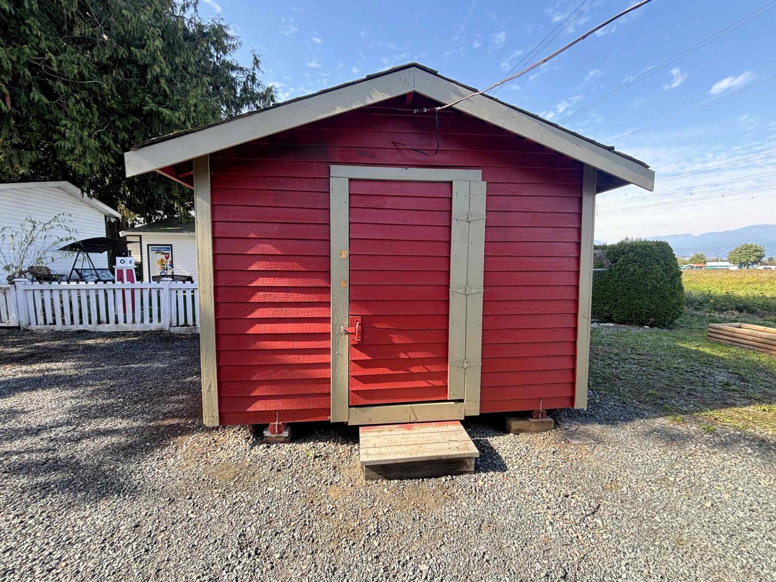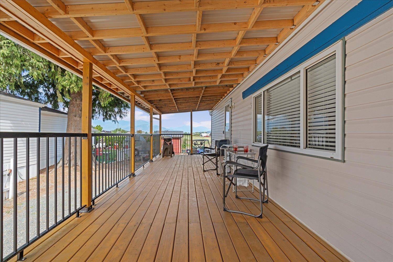 Maple Meadows is a wonderful, friendly community for those 45+ who love space, modern comforts and dogs. This is an almost 1000 sq ft, TWO bedroom and TWO FULL BATH home offering the conveniences of life. BONUS: a newer, wired barn with Jacob's ladder to loft for he/she shed enthusiasts, a side storage port, and a separate storage shed. A great spot to create things and unwind. You have field and mountain views from your backyard. The newer entertainment-sized covered deck has a full wheelchair / accessibility ramp plus stairs for ease of access. So much parking space in your area, for you and visitors alike. And being in preferred South Sardis neighbourhood gives you access to necessary amenities. ** QUICK POSSESSION ** (31804474)