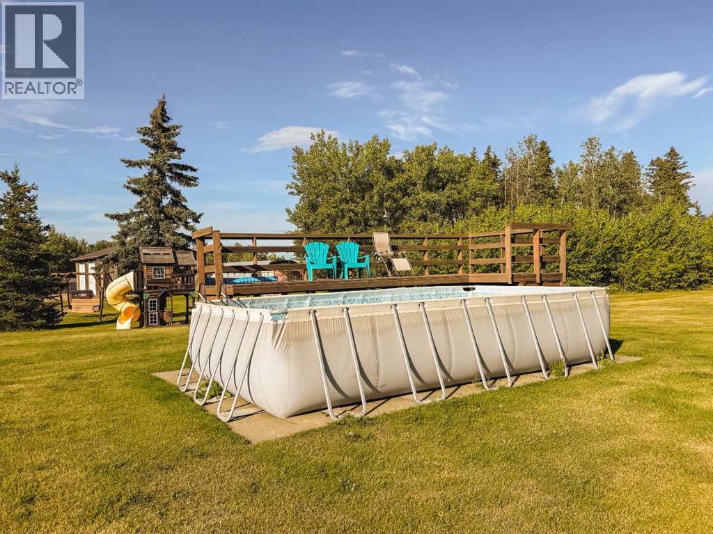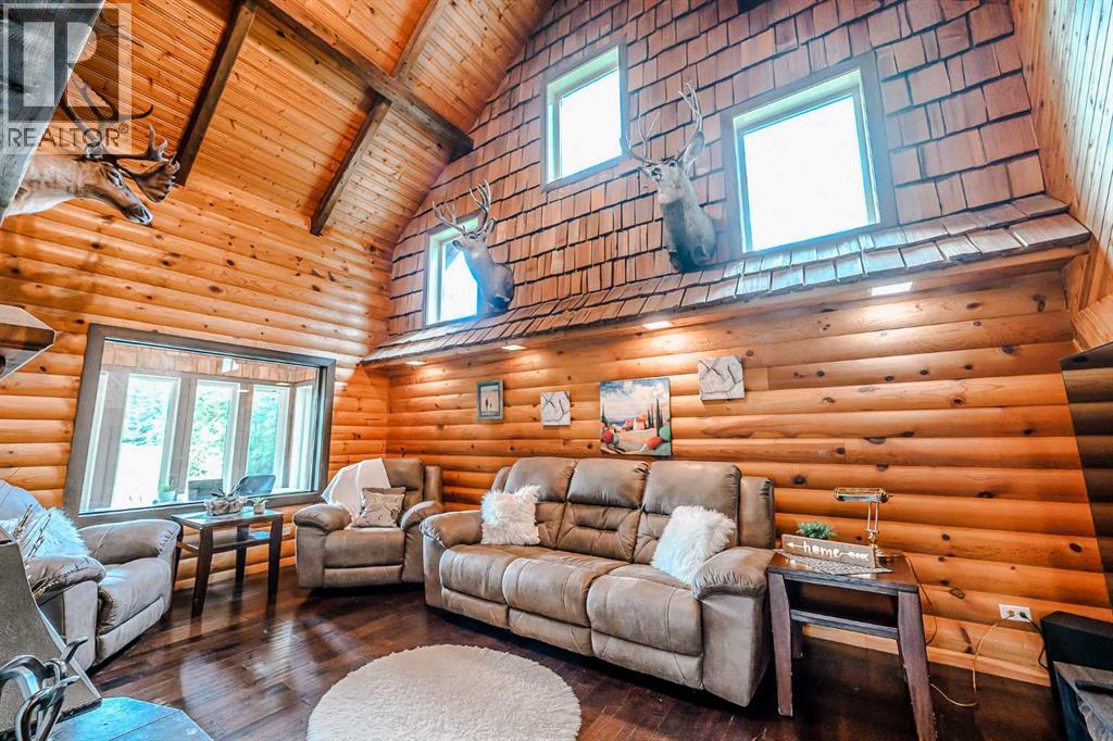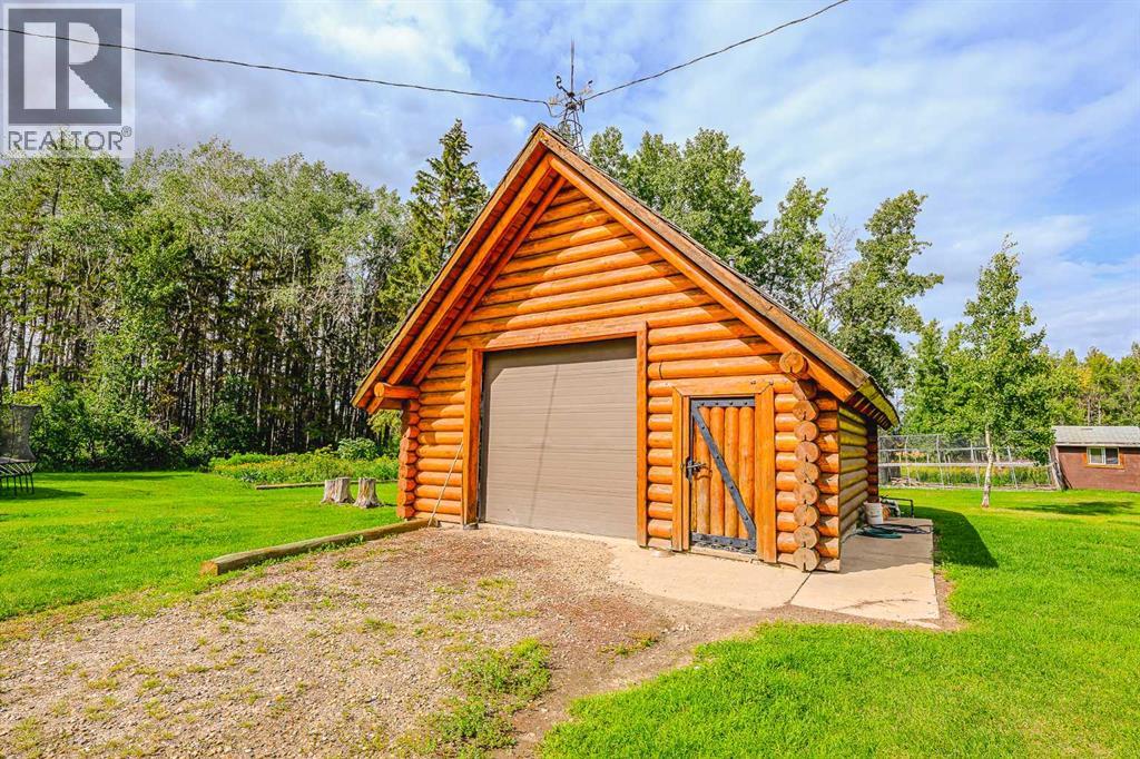 Nestled on 10.9 acres of pristine Peace Country landscape just minutes South West of Spirit River, this custom-crafted 1½-storey log home blends rustic elegance with modern comforts and boundless outdoor charm. Step inside to discover stunning vaulted ceilings and exposed beams, while pine and cedar tongue-and-groove walls add warmth and character. The living room harmonizes with nature through a soaring fireplace boasting a hearth and mantle that anchor the space. The kitchen and dining area are drenched in morning light, thanks to striking bay, floor-to-ceiling windows facing east—ideal for enjoying sunrise breakfasts beside the gas stove and custom pine cabinetry. The main floor also offers an office, a 3-piece bathroom with shower, and the convenience of main floor laundry with a chute. The fully developed basement extends inviting entertainment space, complete with two additional bedrooms, a den (currently being used as a bedroom), a cold room and utility room with on-demand hot water. The home’s comfort is amplified by efficient in-floor heating throughout, and its legacy is built to last on a cedar-shake roof. The property’s infrastructure is impressive: a massive 38ft x 58 ft heated shop (with its own bathroom, in-floor heat, and mezzanine office); lush perennial gardens, vegetable garden, fruit trees, a greenhouse and chicken coop for homesteading; and leisure options including a pool with deck, trampoline, fire pit, and generous outdoor deck spaces to suit gatherings of any size. A short drive into Spirit River grants access to everyday essentials and community facilities such as schools (Ste.Marie Catholic School and Spirit River Regional Academy), a library, museum, curling rink, arena, the Richardson Pioneer Central Peace Aquatic Centre, a community hall, and clinics including the Central Peace Health Centre and Hospital. The health centre includes physician, dentist, physiotherapist, acupuncture and massage services. Outdoor enthusiasts will appreciate being only ~27km from Moonshine Lake Provincial Park, offering beaches, playgrounds, hiking and biking trails, picnic and fire-pit areas, and summer and winter recreational activities including cross-country skiing. The town also supports active aging programs, community events, and family support services, ensuring a well-rounded rural lifestyle. This is truly peaceful, practical, and picturesque living—a move-in ready property that delivers a perfect marriage of rural lifestyle and creature comforts. Don’t miss this rare chance to own your piece of the Peace Country. (31017902)
