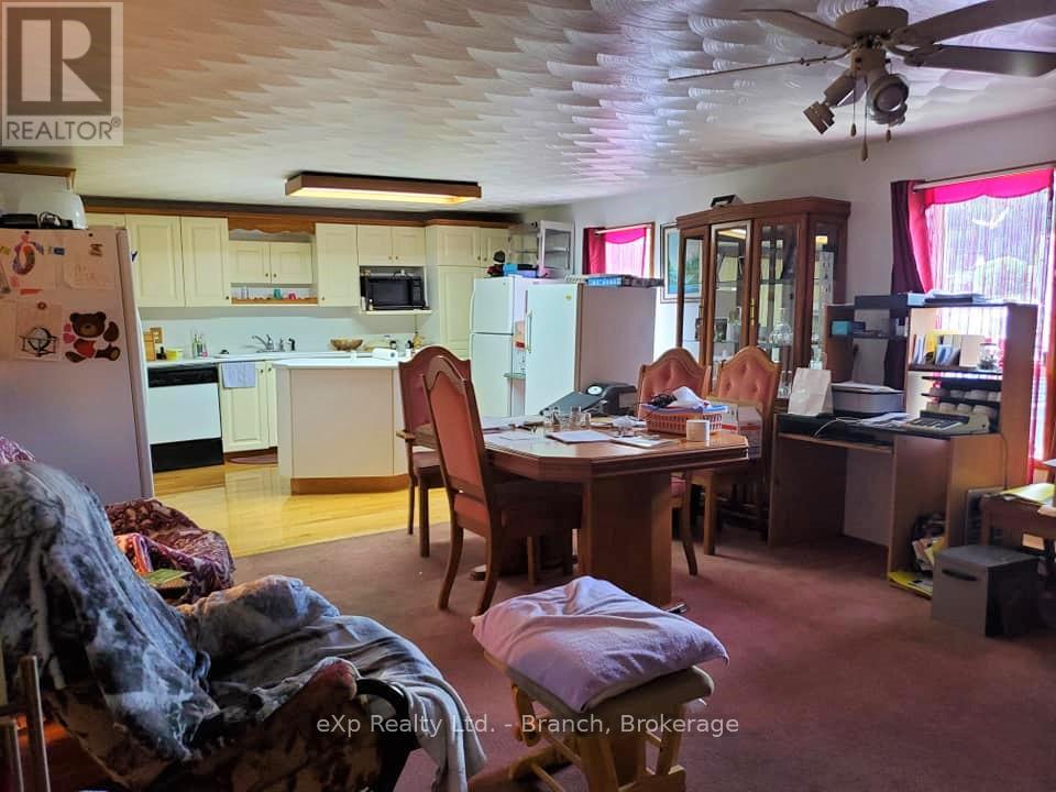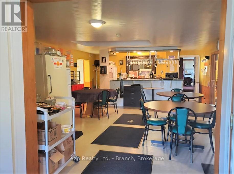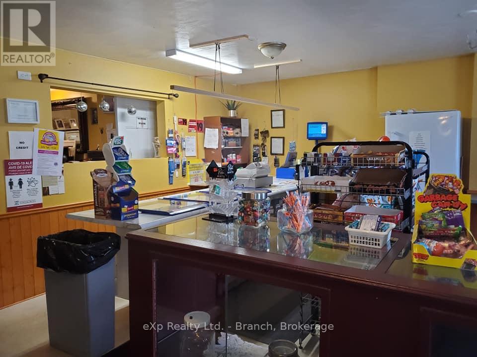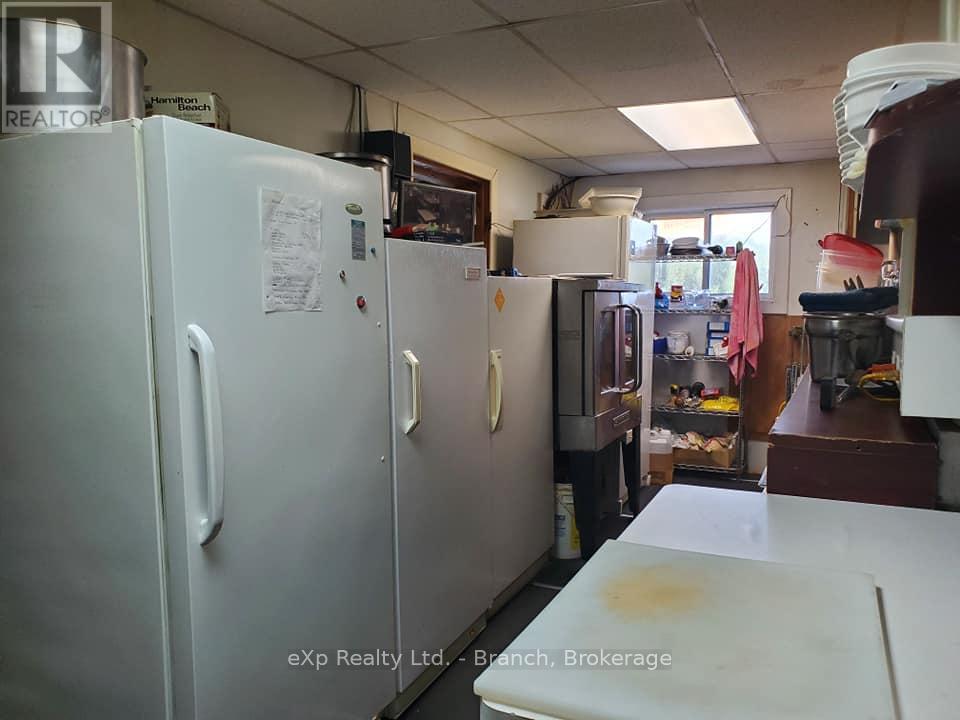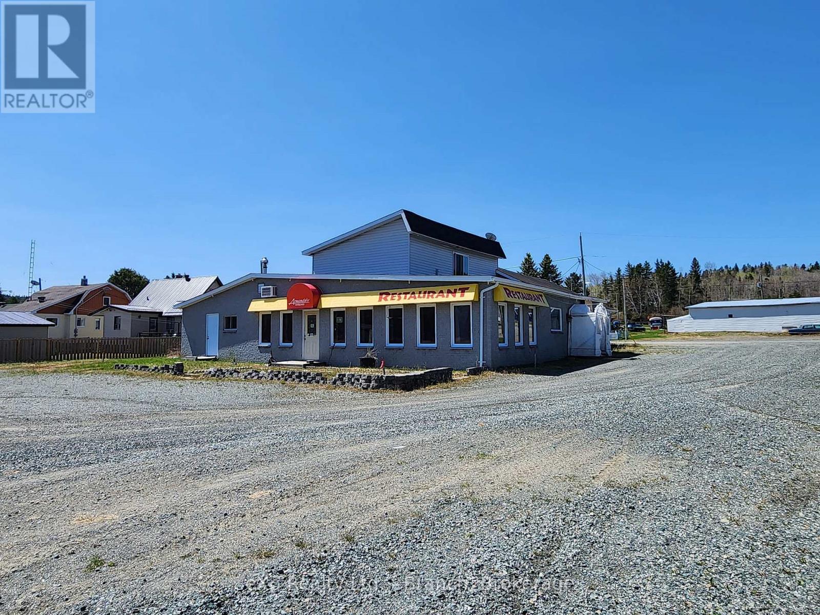 Renovate to your liking! Surrounded by lakes and trails, on a just under 19 acres of land, and backing to the tail end of Larder Lake sits this property with a perfectly located business opportunity. The building features 4900 sq ft of dining space, bar area, a fully equipped kitchen,convenience store, and living space. The restaurant features a dining area with a cozy fireplace and allows a seating capacity of 120, and his/hers washrooms. The living area boasts an extra large master bedroom on the upper level with a loft area, 2 main floor bedrooms, dining/living room, eat-in kitchen, laundry room, jacuzzi room and large 5 piece bathroom. Start a business, and build on your own acreage. All kitchen equipment/supplies/appliances and dining furniture included with sale! (41128502)