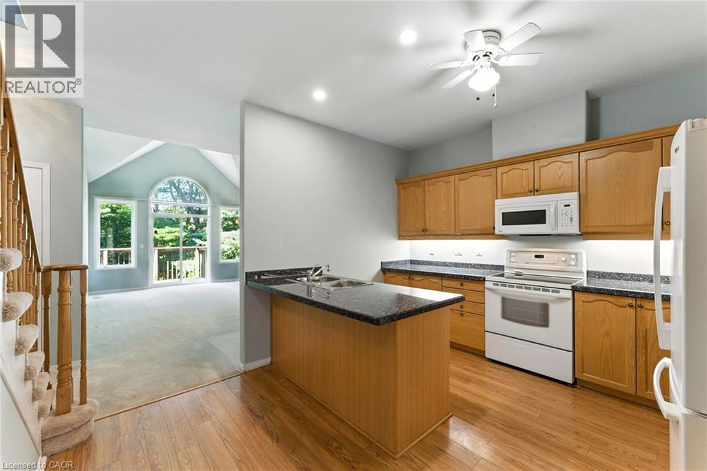 Experience refined living in this beautifully designed bungaloft condominium located in the exclusive Castle Ridge enclave of Ancaster. Boasting 1,893 sq ft above grade, this spacious 3-bedroom, 3-bathroom home offers the perfect blend of comfort, elegance, and low-maintenance living. Step inside to soaring vaulted ceilings in the living room that create a bright, open atmosphere, and enjoy the convenience of main floor laundry. The kitchen features granite countertops, with ample cabinetry, the 2nd mnflr bdrm could be used as a separate dining room. The 2nd floor features an open loft space overlooking the mfr living room, a 3rd bedroom w/sitting area & additional 4 pc bathroom, perfect for overnight guests. Retreat to an exceptionally large primary bedroom with generous closet space & 4pc ensuite bath, while the walk-out basement offers excellent potential with a 3-piece rough-in and the finished rec room walks out to a private patio overlooking a tranquil ravine the perfect setting for morning coffee or quiet evenings. Additional highlights include: Single-car garage with private driveway. Plenty of storage throughout. Maintenance-free living in a desirable condo community. Located close to top-rated schools, shopping, parks, conservation areas, and with easy access to major highways, this home is ideal for professionals, downsizers, or anyone seeking peaceful luxury in a sought-after location. Don't miss this rare opportunity to own in one of Ancasters most desirable communities. (69541155)