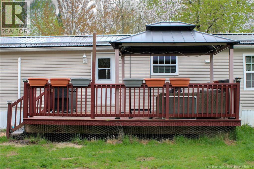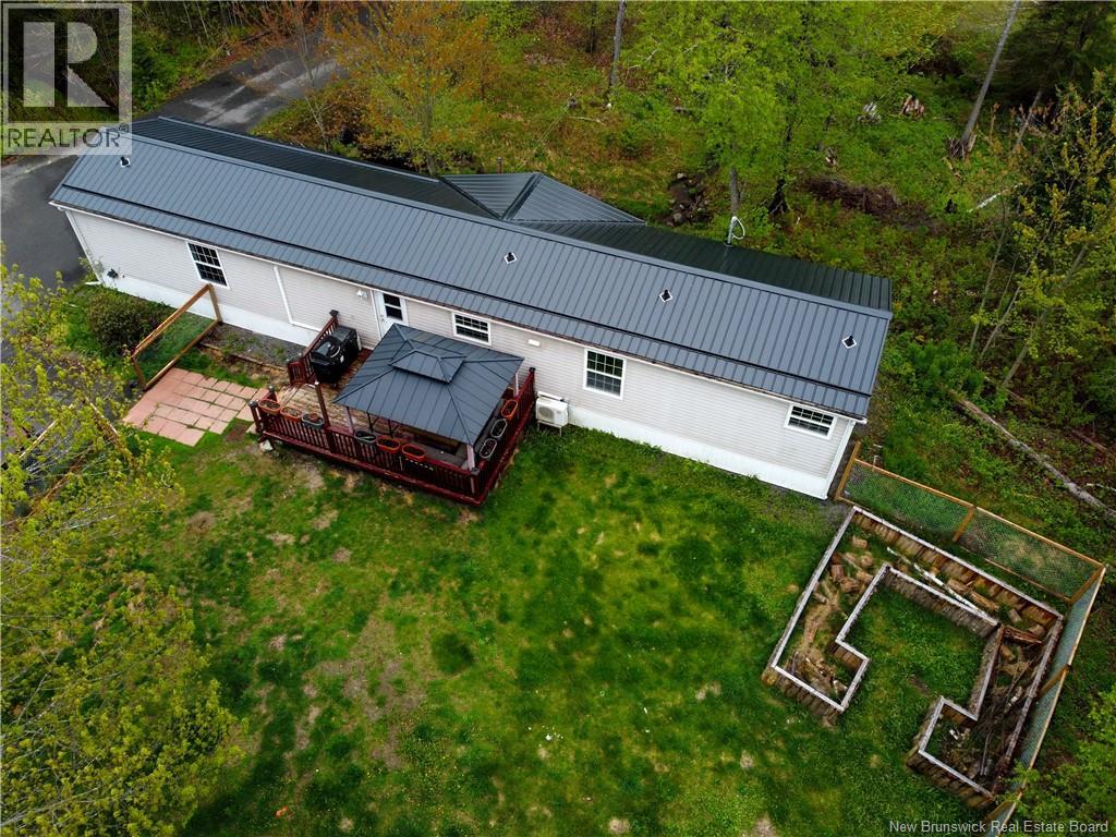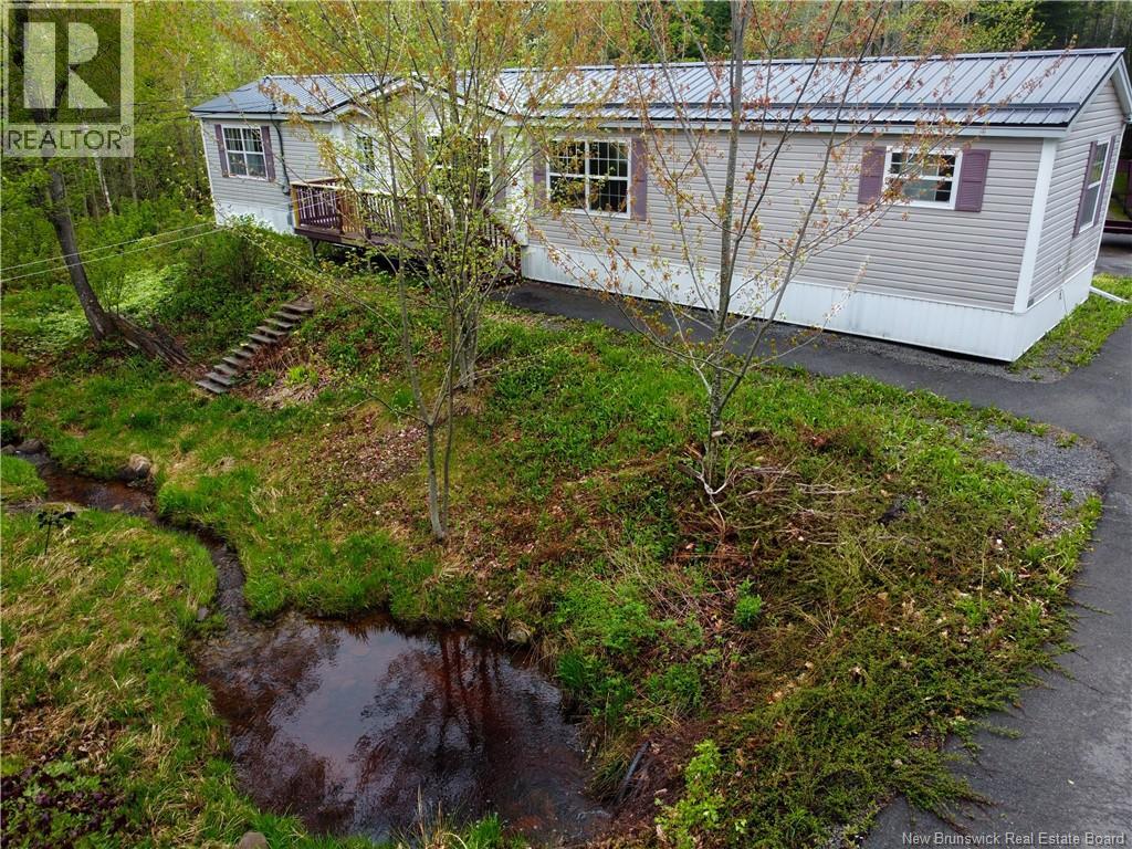 Freshly painted throughout! Beautiful country setting! This home is nestled away beyond the trees with a babbling brook that makes is way along the front of the property. This home offers privacy and an abundance of outdoor space to explore, garden and enjoy! Spacious 4 bedroom / 2 bathroom Maple Leaf home has been well cared for and has a great floor plan with the primary bedroom with 3 pc ensuite bath, bedroom and laundry area. The other end of the home has the main bath and two generous size bedrooms. The living room and Kitchen are both a great size with great natural light. The kitchen has built in appliances, island with seating for two and beautiful Maple cabinetry with great counter space. To complete this great package the home has a fenced in back yard great for the kiddos / fur babies to run and play. New lifetime metal roof was installed in April 2025. Enjoy the comforts of country living within a short drive of Fredericton, Oromocto & CFB Gagetown. (28911493)