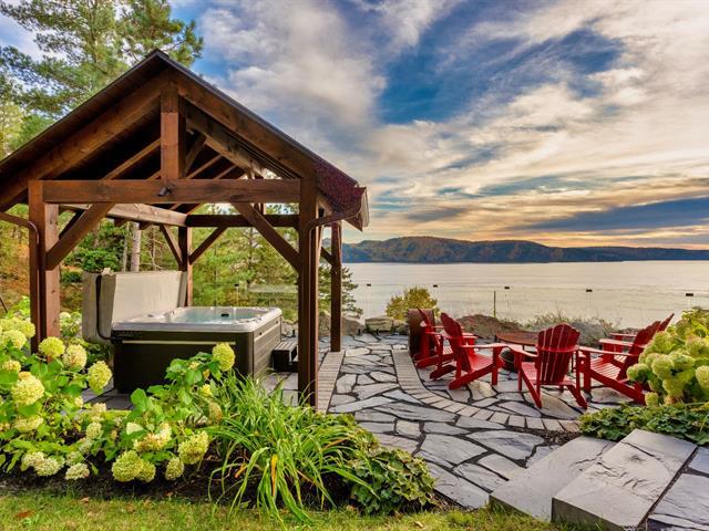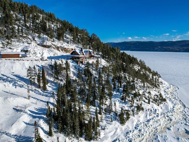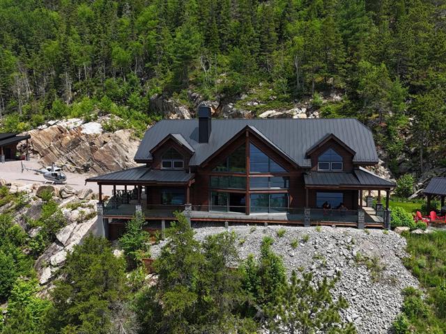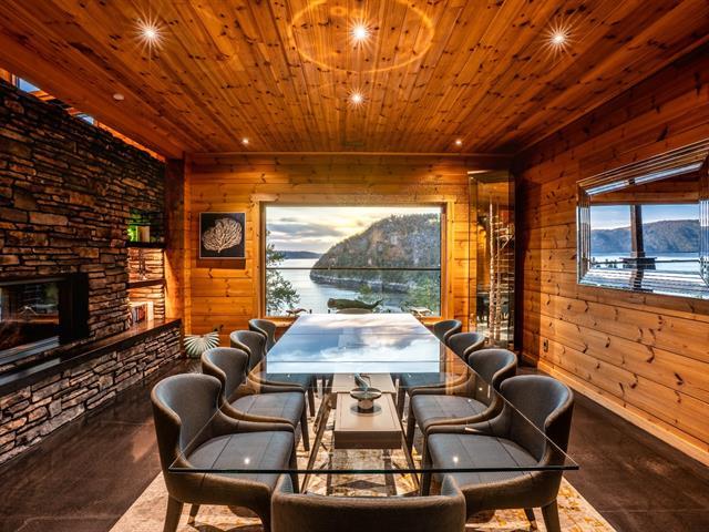 Nestled on a 13-hectare private estate, this exceptional residence overlooks the Saguenay Fjord and embodies the perfect combination of luxury, nature, and modern comfort. Designed in Finland and assembled in Quebec by manufacturer Honka, it combines Scandinavian solid wood, sleek design, and cutting-edge technology. It features five bedrooms, a breathtaking cathedral-style living room, a custom-built kitchen, a spa with panoramic views, a private beach, a heated garage, advanced security systems, complete energy self-sufficiency, and a Starlink connection. A rare property, sold fully furnished and equipped. (49502462)
