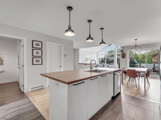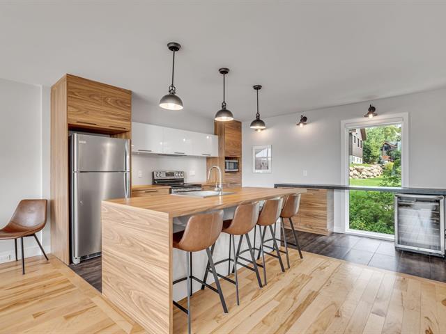 Elegance, Space, and Spectacular Views This stunning semi-detached property stands out with its 5 bedrooms, 2 full bathrooms, and a powder room, combining comfort and functionality. The open-concept living area, bathed in natural light, soars beneath cathedral ceilings, featuring a cozy gas fireplace and breathtaking views of Mont-Sainte-Anne. The kitchen, designed for both style and practicality, offers a central island, a walk-in pantry, and a convenient entry vestibule. The spacious basement includes a large family room that can easily be converted into a dorm-style space to accommodate family and friends. Terrasse and winter ski shuttle. (45436984)