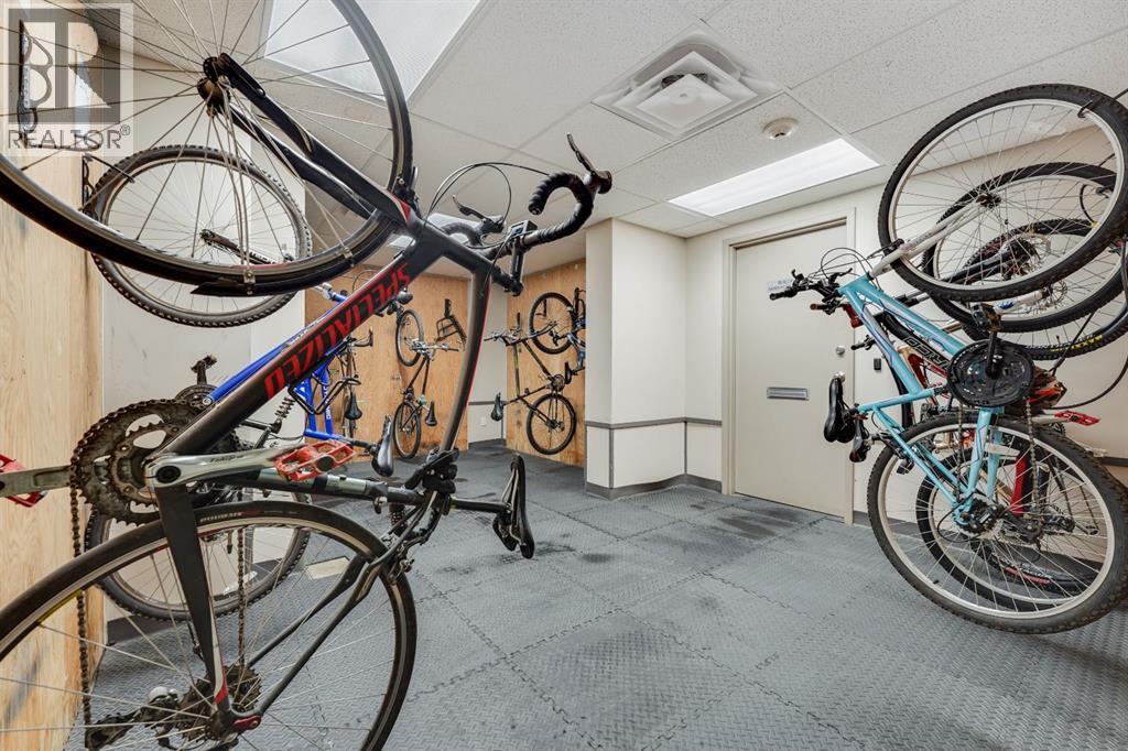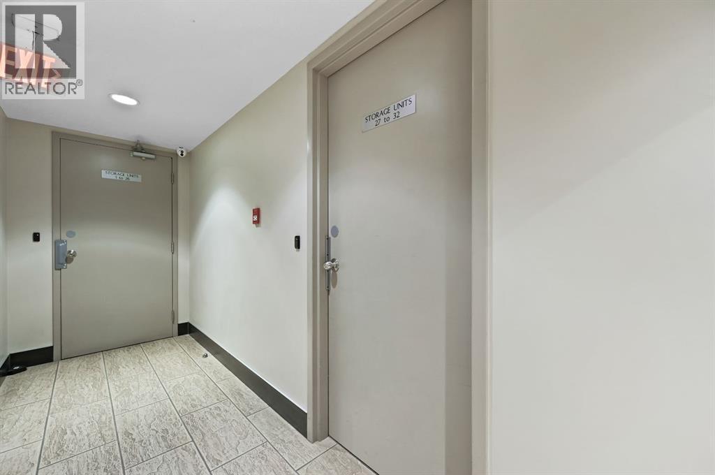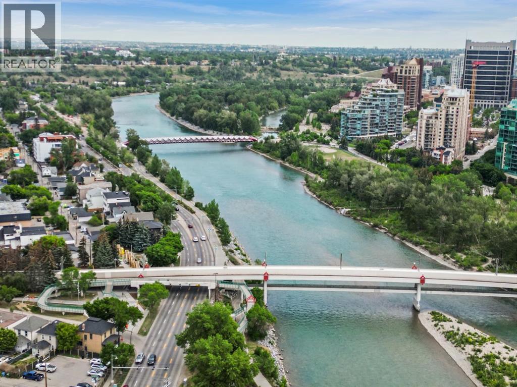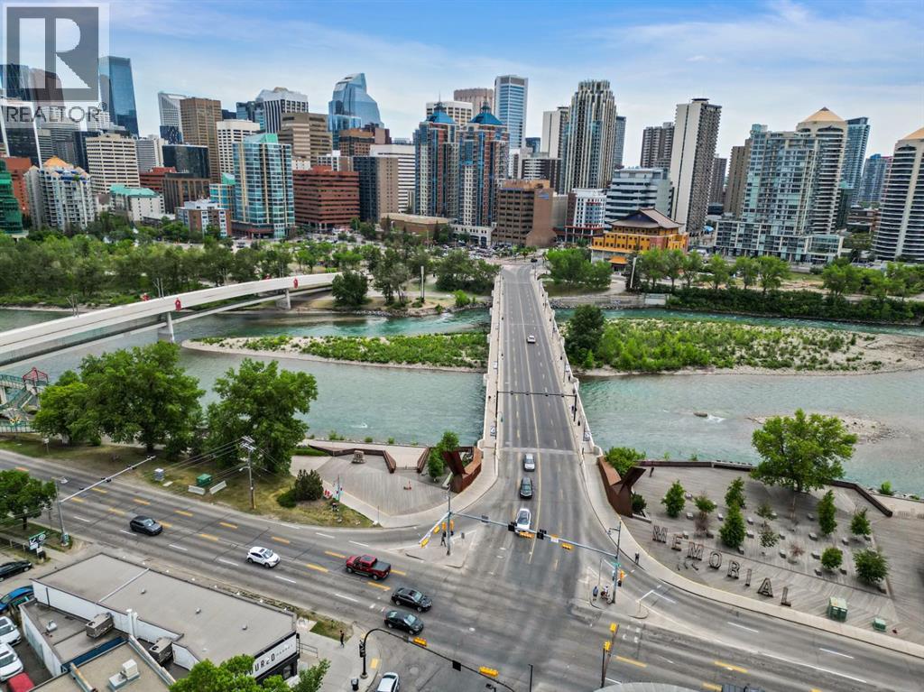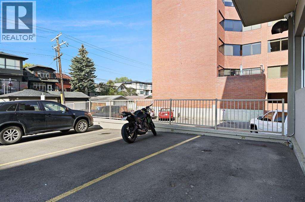This corner END unit showcases fantastic CITY SKYLINE VIEWS and must be seen. Very close to the downtown core in the heart of Hillhurst, and walking distance to the pubs, restaurants, and shops of Kensington. Stroll to the walking paths along the Bow River, beautiful Riley Park, and the Sunnyside LRT station and even up the hill to SAIT! In a concrete building, this 1-bedroom condo features a kitchen perfect for entertaining with eating bar, stainless steel appliances, granite countertops, mosaic tile backsplash, and darker stained cabinetry, a 5-piece bath with jetted tub and granite counters, cozy living room, IN-SUITE laundry, parking stall (#31) and separate private storage area (#31). The bedroom is separated from the living room and eating area for privacy and quiet. The Vue building offers a fully equipped exercise room with newer equipment and bike storage! The very low condo fee ($436/month) includes heat and water and sewer. Experience the great location, style and convenience of this condo and the Kensington area. Priced to sell. (31086947)