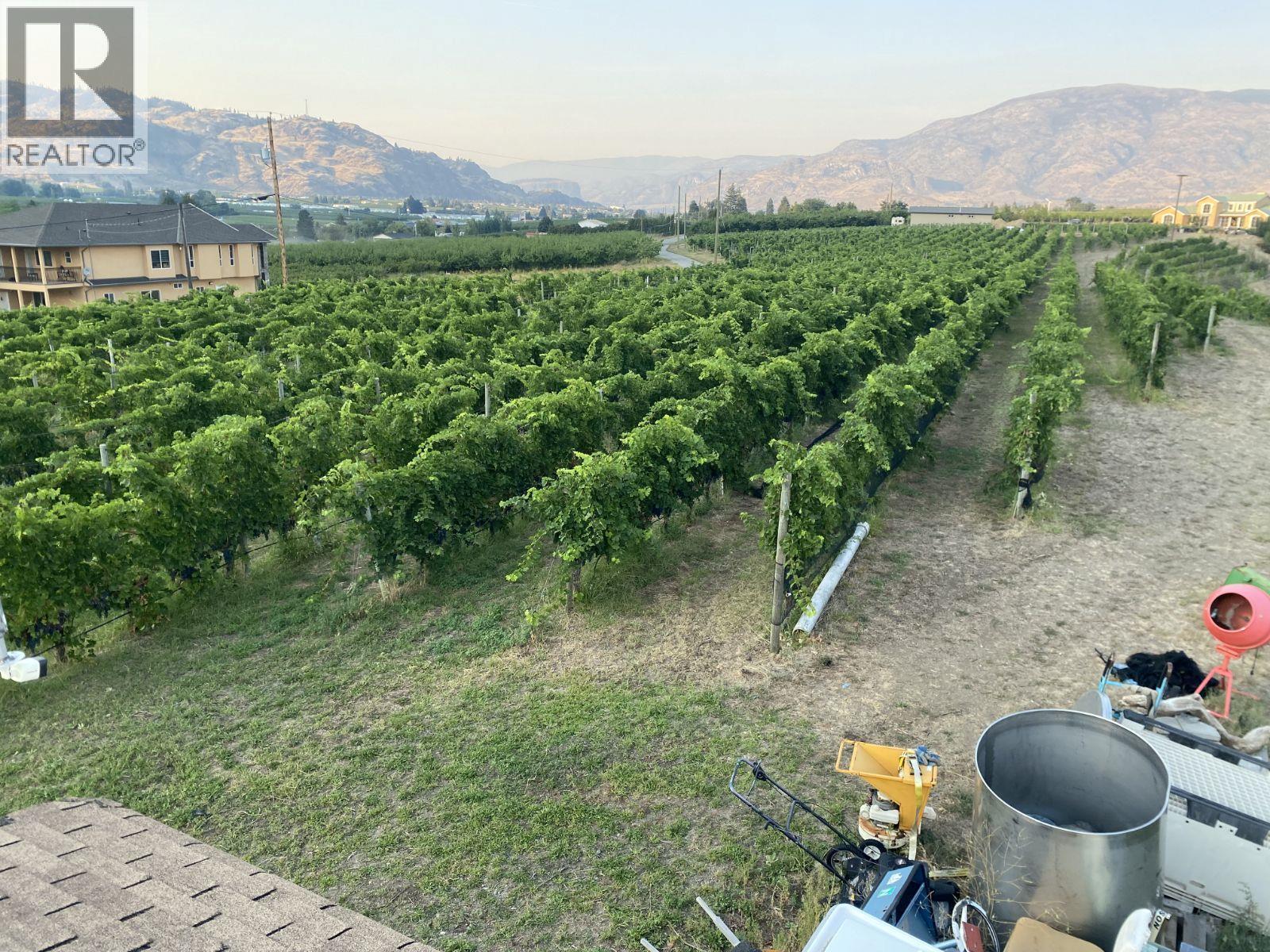 Click brochure link for more details** This picture perfect 7.6 acre property has it all. Set on a hill in the center of the Okanagon Valley in a low frost area, This property is surrounded by astonishing views of the valley and has all-day sun for entertaining and vineyard growth. A spacious 6-bedorom ranch-style home leads out to a 42’ x 12’ infinity pool, hot tub and a large picturesque patio, all having had recent infrastructure upgrades such as stucco and hardy board siding, all are very well-maintained. The established turnkey vineyard has about 4.5 acres of Merlot and Malbec, including award-winning grapes, perfect for those wanting to start a winery with room for more plantings. The detached garage/shop with carport is heated, insulated with power, and has a great canning kitchen and 3-piece bathroom on a separate septic field Behind the garage there is additional RV parking with 2 hook-ups for 30 amp RV power and sani-dump hookup. A lovely paved driveway accesses the property, which is a 3 minute drive to Oliver. The completely private manicured yard with underground sprinklers flatters this oasis. (39198698)