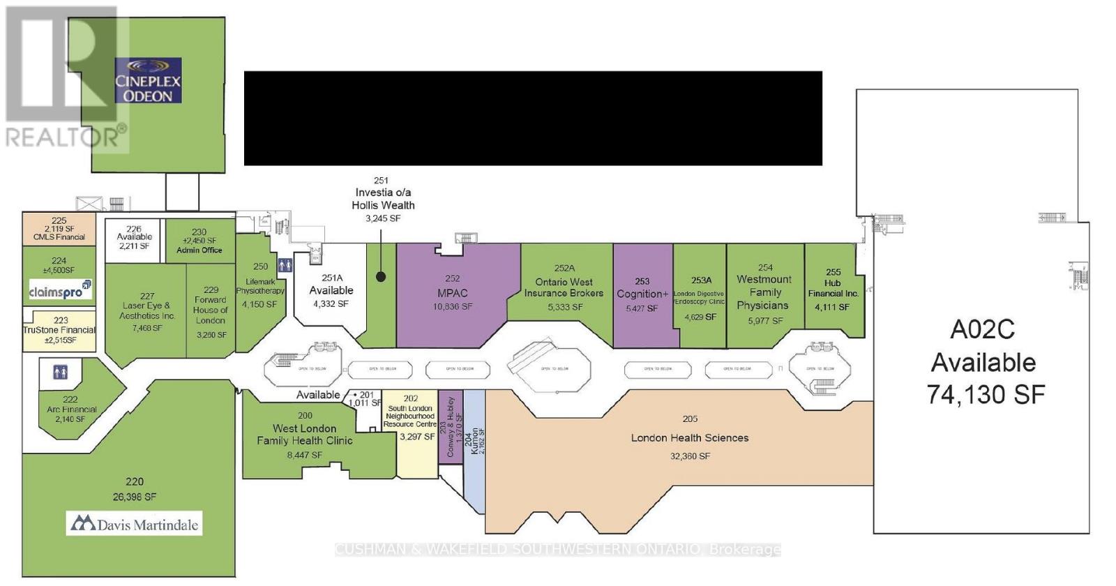 Prime Commercial / Retail / Professional Office / Medical space available For Lease in southwest London. Major London area commercial Mall & Professional Commercial Corporate Campus. Located directly on Wonderland Road South at Viscount Road, just south of Commissioners Road and just north of Southdale Rd. Available Commercial Spaces. Various size units available For Lease: Unit B09-B11: 7,329 SF - Asking $13.00 PSF Net. Unit B10: 2,191 SF - Asking $15.00 PSF Net. Unit C03: 789 SF - Asking $15.00 PSF Net. Unit C11: 888 SF - Asking $22.00 PSF Net. Unit C17-C18: 1,700 SF - Asking $39.00 PSF Net. Unit E03: 511 SF - Asking $30.00 PSF Net. Unit E04: 455 SF - Asking $30.00 PSF Net. Unit E06: 2,077 SF - Asking $21.00 PSF. Unit J09: 1,573 SF - Asking $21.00 PSF Net. Unit J07: 711 SF - Asking $26.00 PSF Net. Unit J12A: 2,903 SF - Asking $29.00 PSF Net. Unit J14: 2,082 SF - Asking $19.95 PSF Net. Unit J15: 1,864 SF - Asking $18.00 PSF Net. Unit J16: 5,816 SF - Asking $15.00 PSF Net. (J15 & J16 can be combined for a total of 7,680 SF). Additional Rent (Cam & Taxes): Estimated at $14.20 PSF. Additional Rent (Cam & Taxes): Main Floor - Retail - Estimated at $13.96 PSF. Tenant pays for the Utility cost. Plenty of on-site free parking. Available immediately. Excellent signage and exposure. Plenty of windows and natural light. Zoning: R9-7(48)*H36 and R8-4(90)/RSA2(3) - Permits a wide range of uses. (41240256)