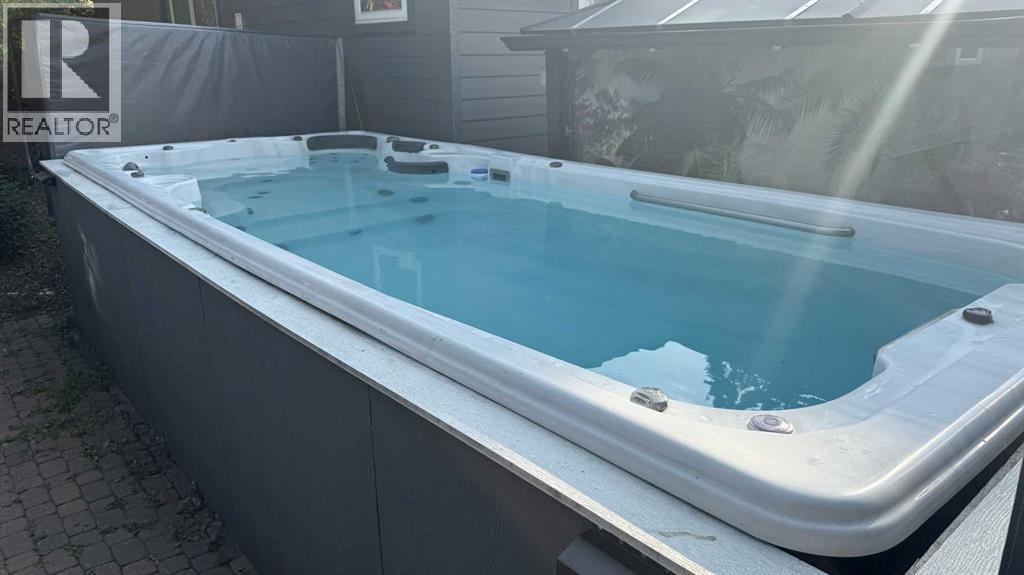 Experience comfortable small-town living just minutes from downtown in this fully renovated bungalow, situated on a spacious pie-shaped lot within a quiet cul-de-sac lined with Elm trees in Mayland Heights. This residence has been meticulously updated, to ensure warmth during winter and coolness in summer. Luxurious amenities include heated floors throughout the main level with individual room controls for consistent temperature, a well-appointed kitchen equipped with high-end appliances, gas fireplace and large new windows providing ample natural light. For summer comfort, the home is fitted with air conditioning.Smart lighting systems allow easy control of all fixtures, while the primary bathroom offers a spa-like atmosphere with a dual shower, jetted tub, heated towel warmer, dual sinks, and generous storage. The upstairs laundry provides access to a heated 19x7 swim spa, complete with a heated step for winter safety. The basement features stretch ceilings for an open feel, spray foam insulation for thermal efficiency, a golf simulator area with 10-foot ceilings, theatre space with atmospheric galaxy lighting, and a gym area with laundry hookups. Additional upgrades include an on-demand hot water tank, new windows, furnace, central vacuum, and extensive storage options. Outdoors, the property includes an island and Viking BBQ with searing station for grill lovers, a heated pergola, heated sidewalks for comfortable outdoor entertainment, irrigation system, RV parking pad with electrical outlet, and a heated double car garage. The substantial lot provides opportunities for future redevelopment. (31113120)