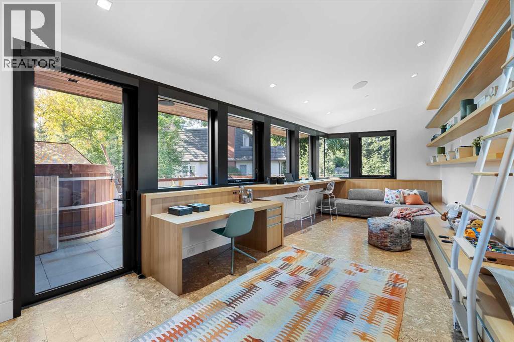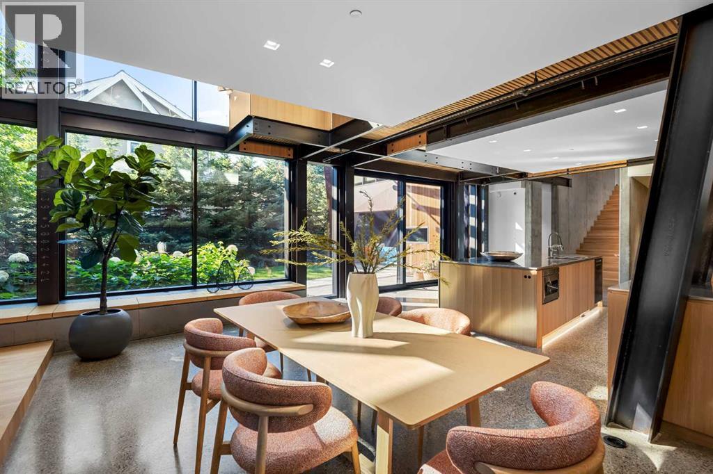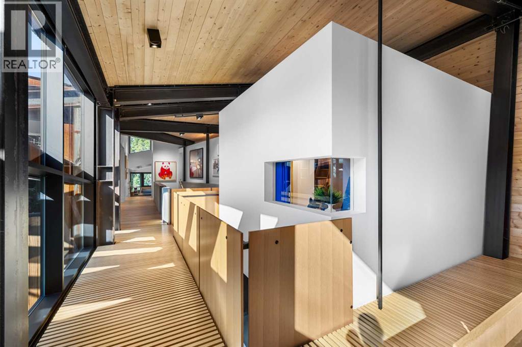 Welcome to Montreal House, an award-winning landmark residence in Calgary’s historic Mount Royal, designed by renowned architect Jeremy Sturgess. This home isn’t just built — it’s imagined for connection, light, and lasting impact. Tucked away on a quiet, tree-lined street, this 5-bedroom residence spans 4,000 sq. ft. above grade, with over 5,700 sq. ft. of total living space and a triple garage, combining bold design with livable family comfort.From the street, its sleek linear form opens to a private west-facing yard framed by mature trees. Inside, soaring double-height ceilings and open living spaces create a natural flow for gathering, while east-facing bedrooms greet the morning sun.The exterior blends Corten steel and Kayu Batu wood, materials chosen to weather and evolve beautifully over time. A 25-foot sculptural steel fireplace bridges indoors and out, while 18 cantilevered glulam beams shade the glass walls and frame the western garden.Upstairs, the cantilevered primary suite floats into the treetops, complete with a roof terrace overlooking the city skyline. Every angle has been designed with purpose — balancing privacy, sunlight, and seamless transitions from indoors to outdoors.The lower level offers a glassed-in wine cellar, guest suite, wet bar, and custom storage for an art collection.Internationally recognized, Montreal House has been a finalist at the World Architecture Festival and honoured with national design awards. It’s more than a home; it’s a place where art, architecture, nature, and everyday living come together. (31114272)