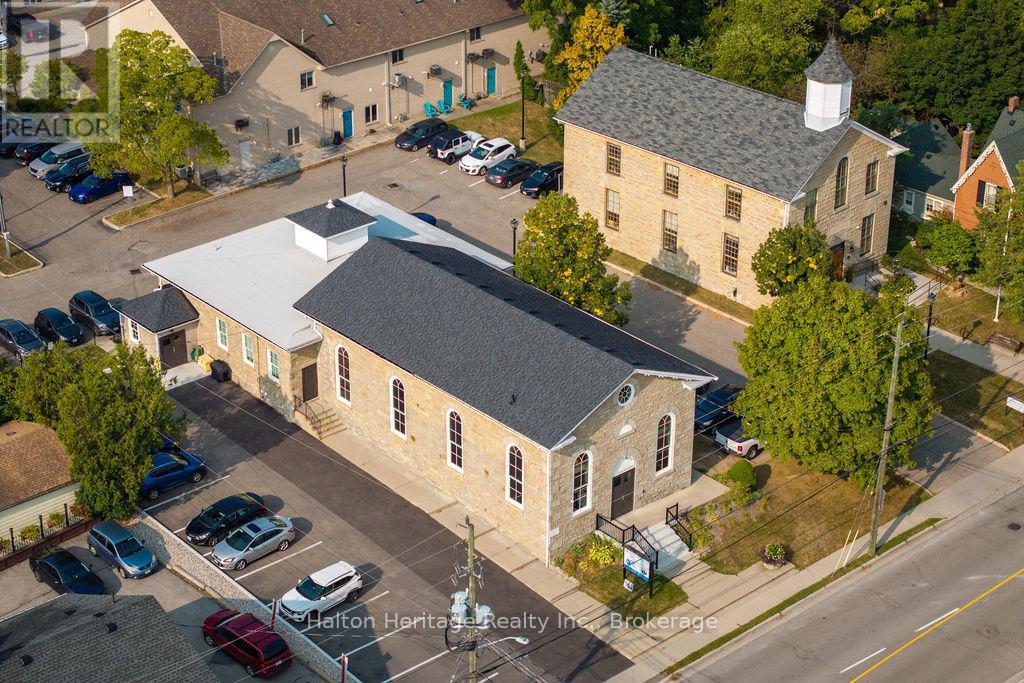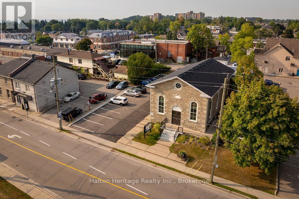 Step into a truly unique commercial opportunity with this 2,541 sq. ft. space located in the front of a beautifully converted stone church circa 1865. Featuring soaring ceilings and a choir loft, this one-of-a-kind property blends historic charm with modern functionality. Zoned C5a, it allows for a wide range of permitted uses including retail, service, commercial, entertainment and more, making it ideal for businesses seeking character, flexibility and visibility. The unit includes 8 dedicated parking spaces, and is situated just steps from bustling local businesses and within walking distance to established residential neighborhoods. Enjoy unbeatable connectivity with easy access to Hwy 403, 407, Hwy 5, and GO/public transit options nearby. Heat and water are included in rent, with tenant responsible for hydro. Don't miss this rare chance to set your business apart in one of the areas most distinctive commercial spaces. Please (41270674)
