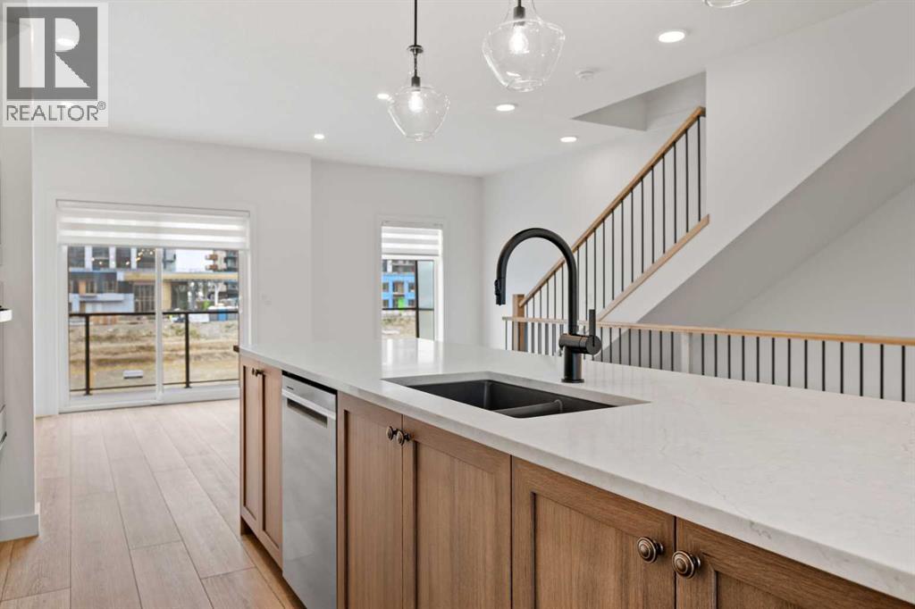 ***Open House Saturday 12:30 to 4:30pm, stop by Showhome 821 81 St SW*** Photos are from a similar, completed unit - finishing may vary* Welcome to this beautifully upgraded 4-bedroom, 3.5-bathroom BRAND NEW townhome in the highly desirable community of West Springs. This home has been carefully designed to balance modern style with everyday functionality—perfect for today’s busy lifestyle.Upon entry, you’re greeted by a bright and versatile foyer space and a bedroom with an ensuite - the perfect space for a home office or studio. This level also provides direct access to the double attached garage, offering ample room for parking and storage.The second floor features an open-concept layout. The kitchen is beautifully appointed with quartz countertops, a tile backsplash, abundant cabinetry, and brand-new premium appliances. A large island provides additional prep space, making the kitchen ideal for cooking and entertaining. Sliding glass doors lead to a private OVERSIZED balcony with glass privacy panels—a great spot to relax outdoors. A stylish 2-piece bathroom completes this level.Upstairs, two secondary bedrooms are located at the back of the home—well suited for children, guests, or a quiet workspace. A 3-piece bathroom with under-sink storage adds both convenience and thoughtful design. The primary bedroom creates a relaxing retreat with a large window, oversized walk-in closet with built-in organizers, and a spacious 4-piece ensuite featuring double sinks with quartz countertops, generous cabinet storage, and tiled flooring.Set in one of Calgary’s most family-friendly neighborhoods, West Springs provides easy access to shopping, dining, schools, and green spaces. A designated high school is just minutes away, and quick connections to Stoney Trail and Sarcee Trail make commuting downtown simple. For outdoor enthusiasts, Canada Olympic Park is a short drive away, offering year-round recreation.Don’t miss the opportunity to own a stylish, well-appointe d home in one of Calgary’s most sought-after communities. Please visit the showhome at 823 821 Street SW for more details! (31132559)