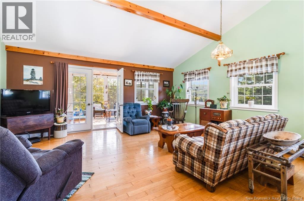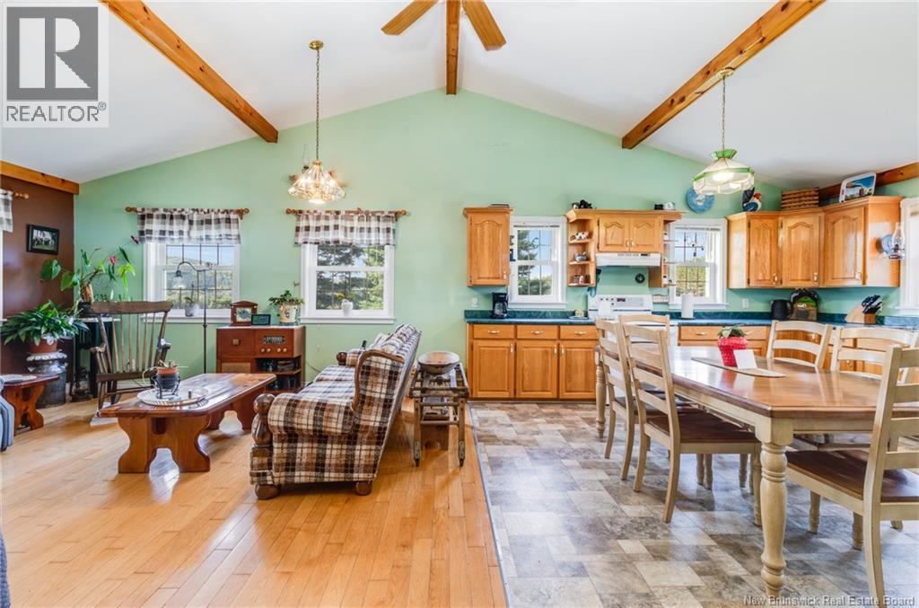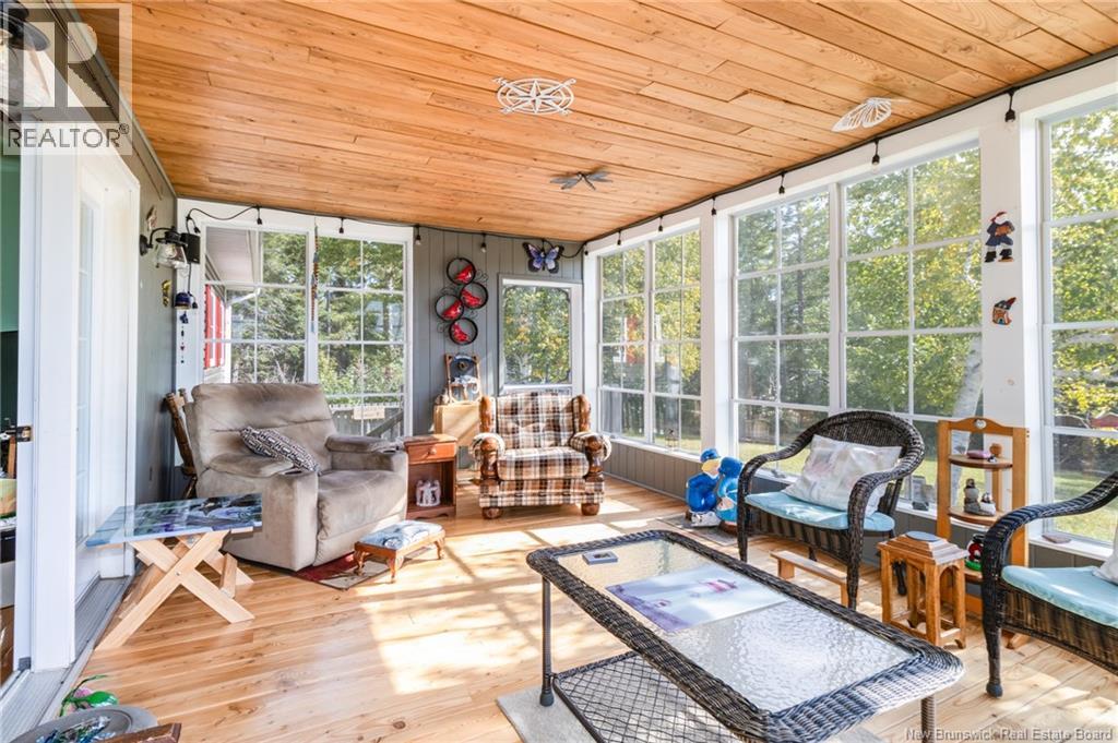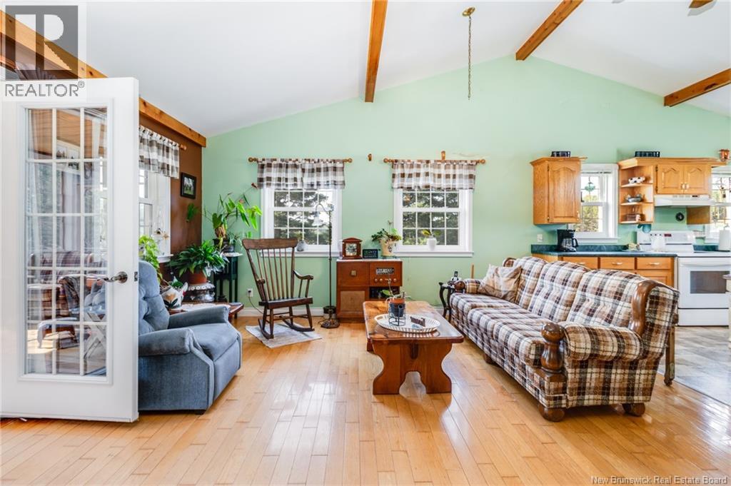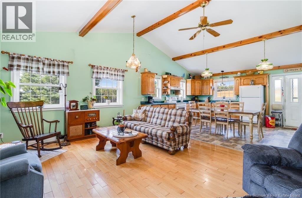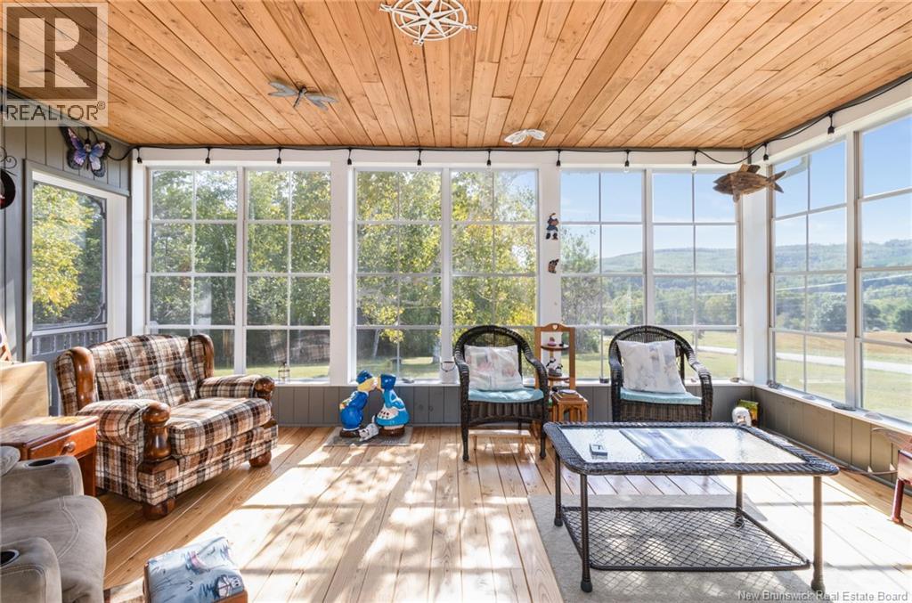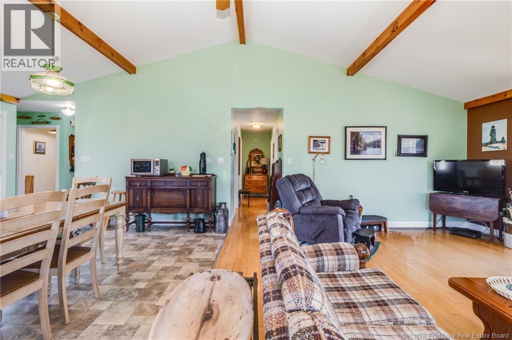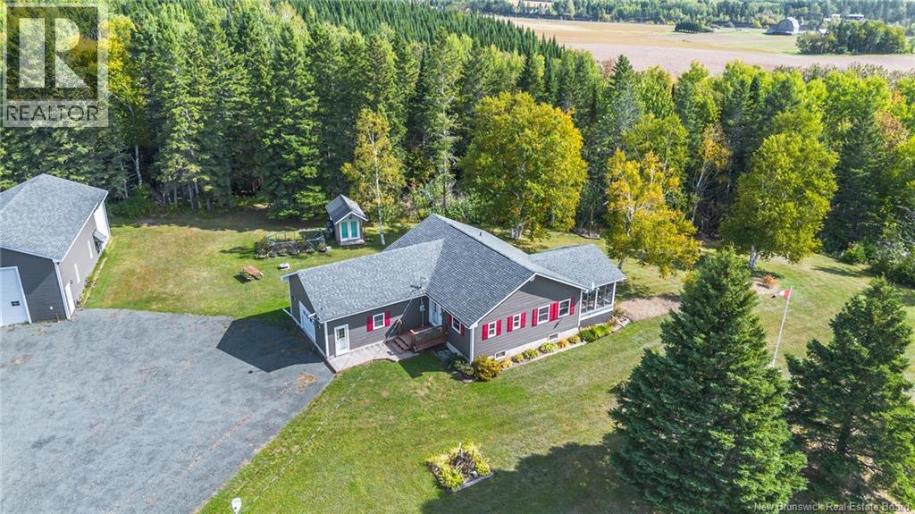 Dreaming of country living with space to grow? This 3-bedroom, 2-bathroom bungalow sits on 4.9 acres just minutes from Perth-Andover, surrounded by beautifully landscaped grounds and endless lifestyle potential. The main level features an open-concept kitchen and living area with cathedral ceilings, wood beam accents, natural light, and patio doors leading to a 3-season sunroom overlooking the gorgeous scenery. A separate laundry room adds convenience, while the primary bath offers a large soaker tub and separate shower. Downstairs, youll find a spacious rec room, third bedroom, second full bathroom, and an oversized storage room. The home is equipped with a ducted heat pump for efficient heating and cooling. Theres also an attached garage plus a detached heated garage with its own heat pump, perfect for mechanics, hobbies, or easily converted into a barn for animals. With space for horses, cows, and chickens, this property is a hobby farm dream. The Tobique River is nearby for boating, with ATV and snowmobile trails close at hand, all while keeping you just minutes from town amenities. Attached garage (21 x 21) is insulated. Detached garage measures 28 x 40 with a 16 door and includes a 4 x 8 warm room. At the back, youll find a heated workshop measuring 28 x 14. As a bonus, the garage is wired for a 40 amp welder and a 30 amp RV outlet. (29008533)