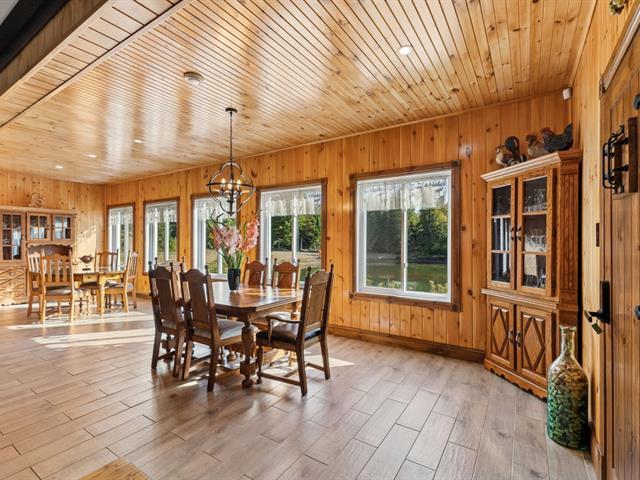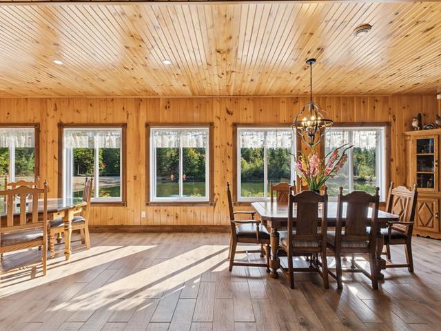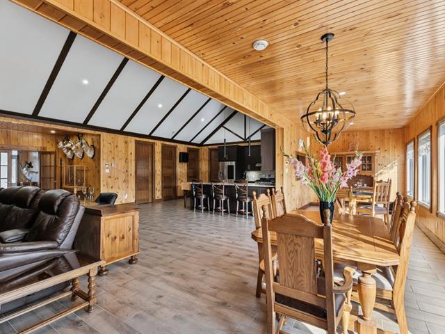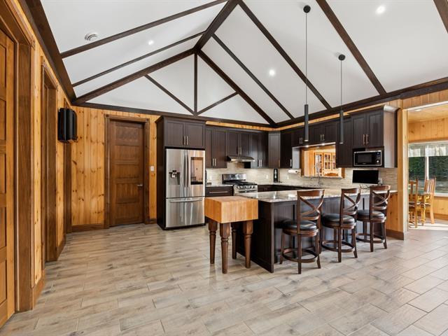 Prestigious intergenerational residence of 5,160 sq.ft. set on an exclusive 104-acre estate! Featuring open-concept living spaces with cathedral ceilings bathed in natural light, 2 contemporary kitchens, and high-end finishes. This rare property combines modern comfort and complete privacy in a stunning natural setting. Private stocked lake, several km of trails, and 4 garages totaling 3,580 sq.ft. Nearby: SEPAQ / Papineau-Labelle and golf (5 min), the prestigious Lac-Simon, beach and marina (10 min). Only 55 min from Gatineau/Ottawa and Tremblant. Truly turnkey--see full list of features and inclusions. (39096623)