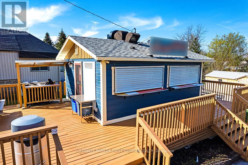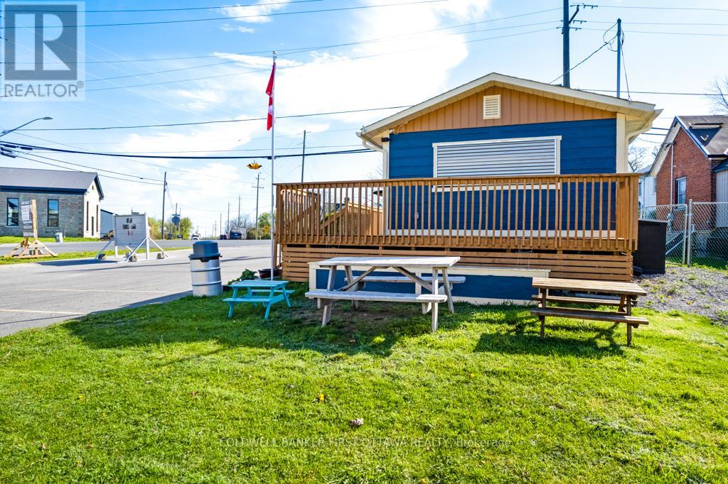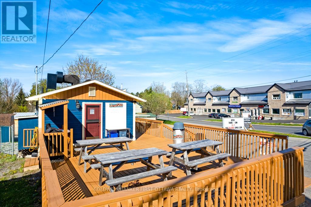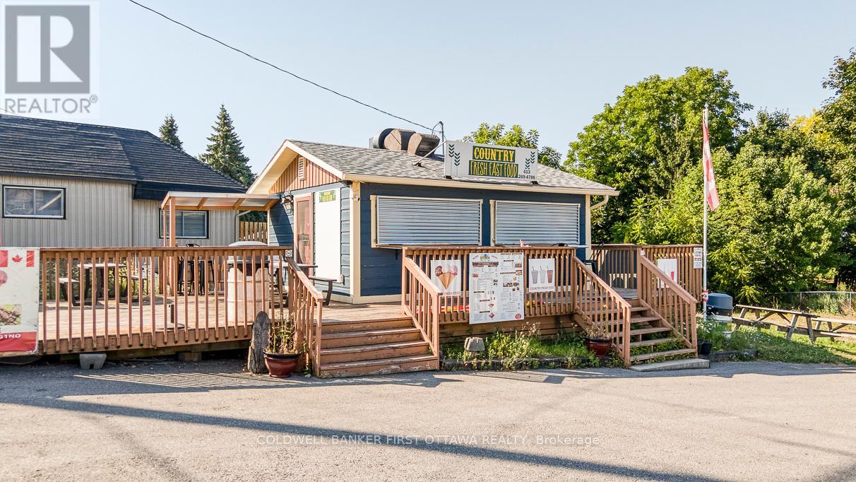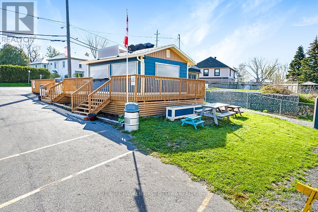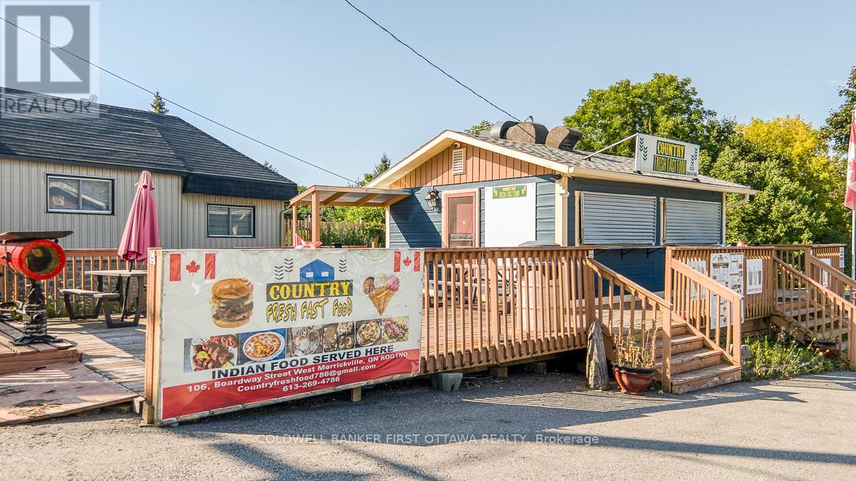 Established turnkey fast food business includes 0.8 acre town lot. Located in high-traffic and tourist area of historical Merrickville that's known for its local artisans and picturesque Rideau Canal Locks. Attractive and welcoming take-out building was all renovated in 2006 from top to bottom in 2006. Then in 2022, $80,000 updates completed in kitchen. Steady stream of customers pass by the busy corner, that is one block from the Rideau River. You have plenty of on-site parking plus large deck for outdoor dining sets and lawn for picnic tables. Significant customer base with loyal local patrons and visitors who are always happy to enjoy the savory delights. Business has growth potential plus lucrative and rewarding investment for the entrepreneur who shares the same love for quality food and excellent customer service. High-quality equipment ensures smooth operations to offer efficient customer service. Everything set up for you and ready to go. Whether you're an experienced restaurateur looking to expand locations or a foodie looking for a fresh new venture, this is the perfect place to step into a thriving business. Municipal water service. Septic system. Electric service is 200 amp. High speed internet available and excellent cell service. (41310568)