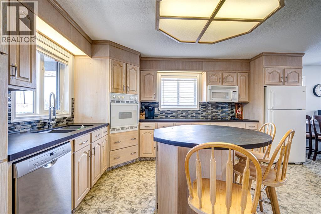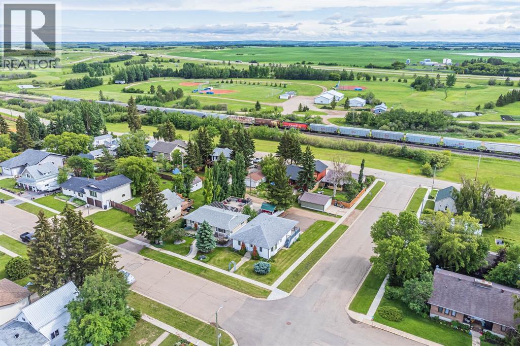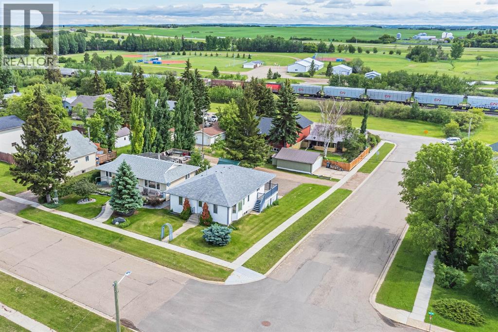 A custom built bungalow in the small town community of Kitscoty, Alberta. The main floor hosts 1,150 SF of like-new condition space. This home is in amazing condition and shows exceptionally well. Upstairs is two big bedrooms, main floor laundry, full bath and open concept living to dining and kitchen areas. The kitchen is spacious and beautifully done with real wood finishes. A great eat up island adds a lot of extra counter space and storage. Enjoy the large wrap around covered balcony, this is where you are going to spend a lot of your time enjoying the views to the south. An oversized double car garage is just the thing for all the autos and toys! Basement and garage are in-floor heat. Many updates have been done to to keep this property in such great condition. Some of the recent upgrades include countertops, hot water tank, central A/C, reverse osmosis system, new furnace blower fan, laminate flooring and decking all refinished., This could be the home you have been looking for! (31157969)