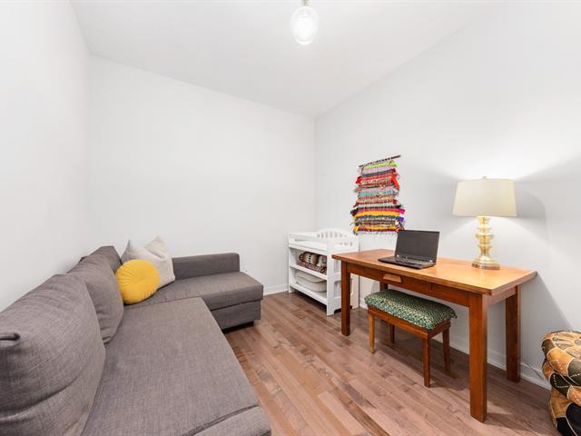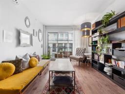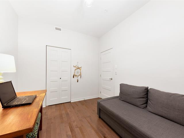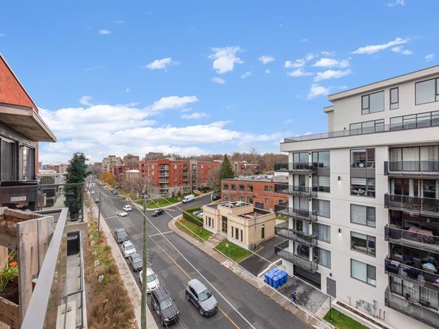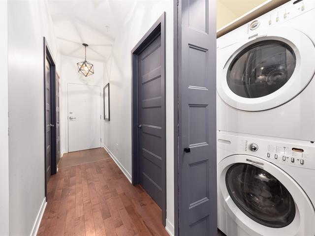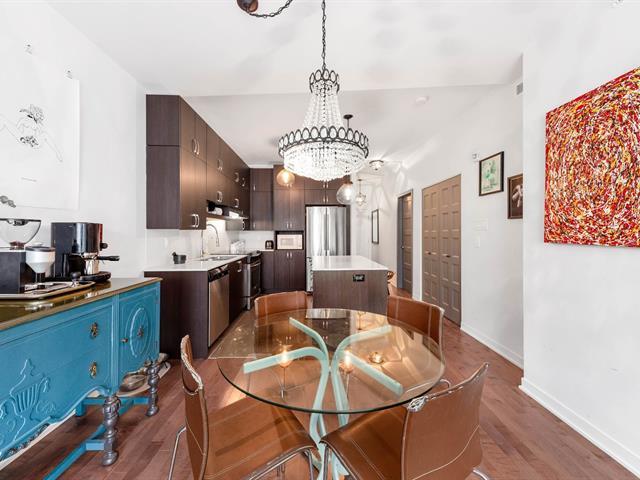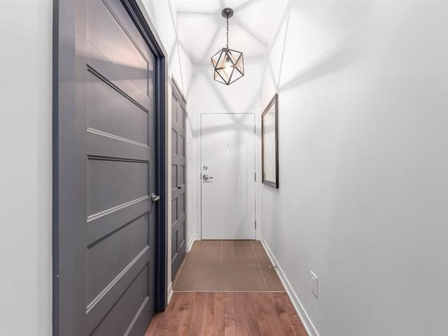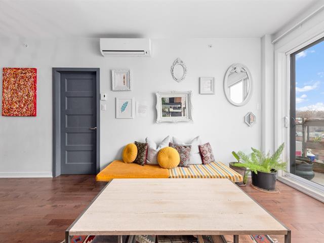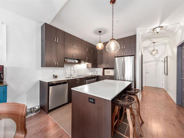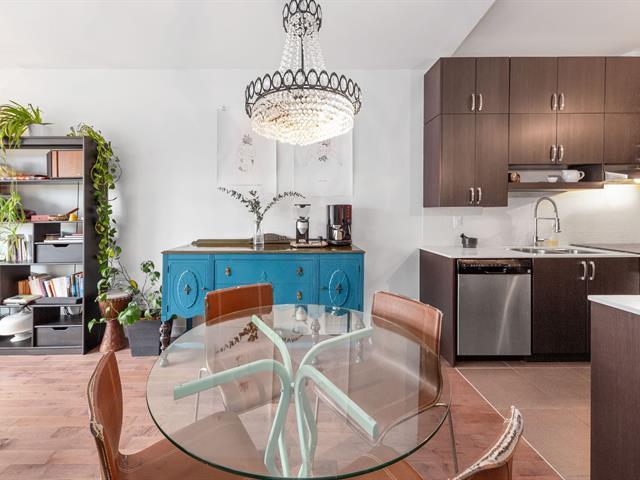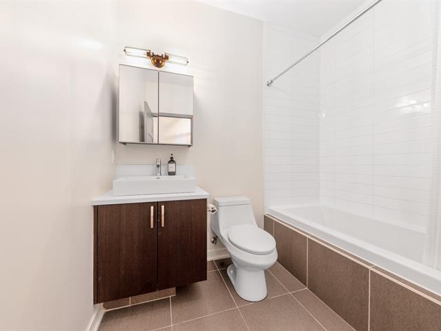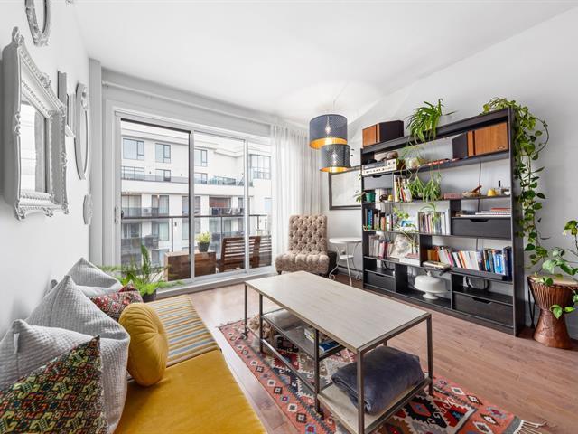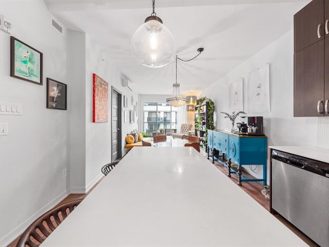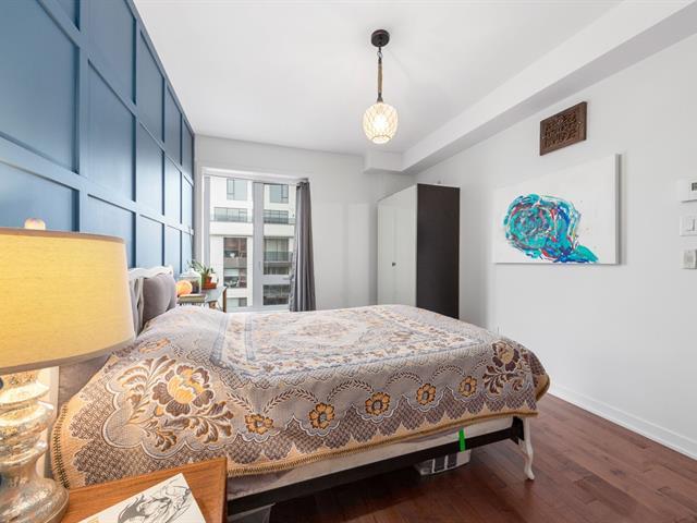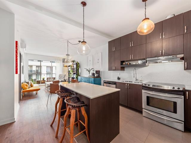 Elegant 5th-floor condo featuring a spacious open-concept layout, two bedrooms including a master suite with walk-in closet and ensuite bathroom, and a balcony perfect for enjoying the outdoors. Garage parking space and storage included. Recent construction with a modern design. Just steps from the REM, the metro, and Campus MIL, this condo combines comfort, urban living, and tranquility in a highly sought-after neighborhood! (52047834)