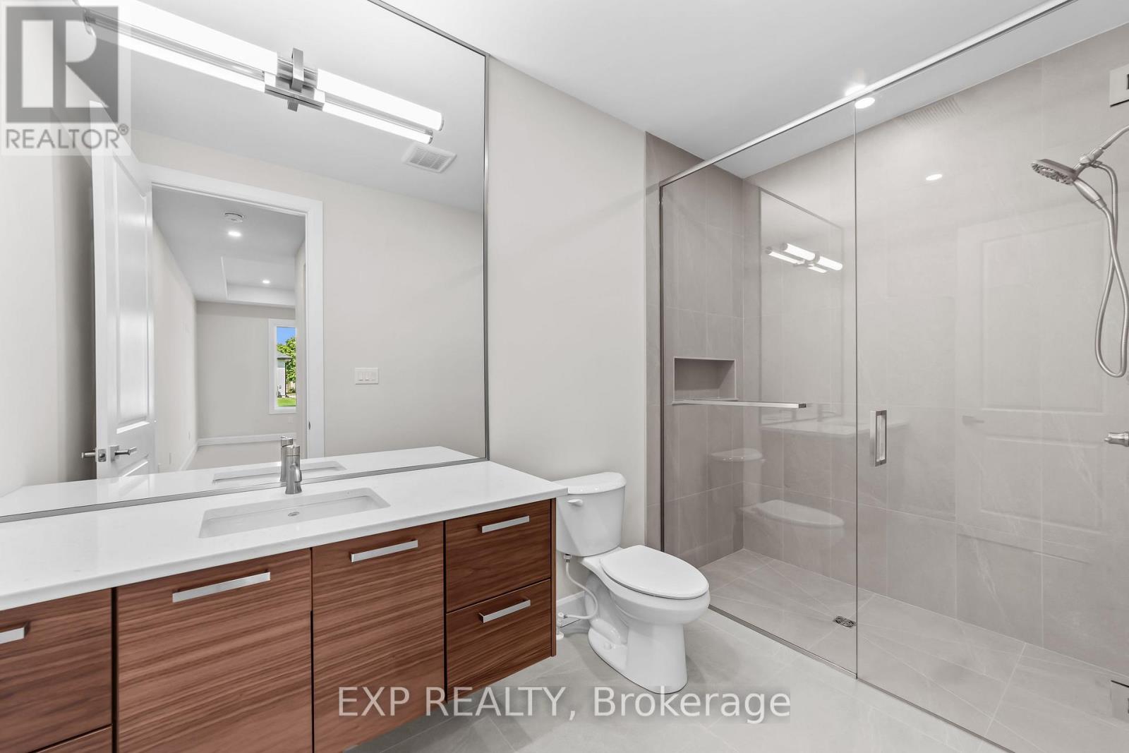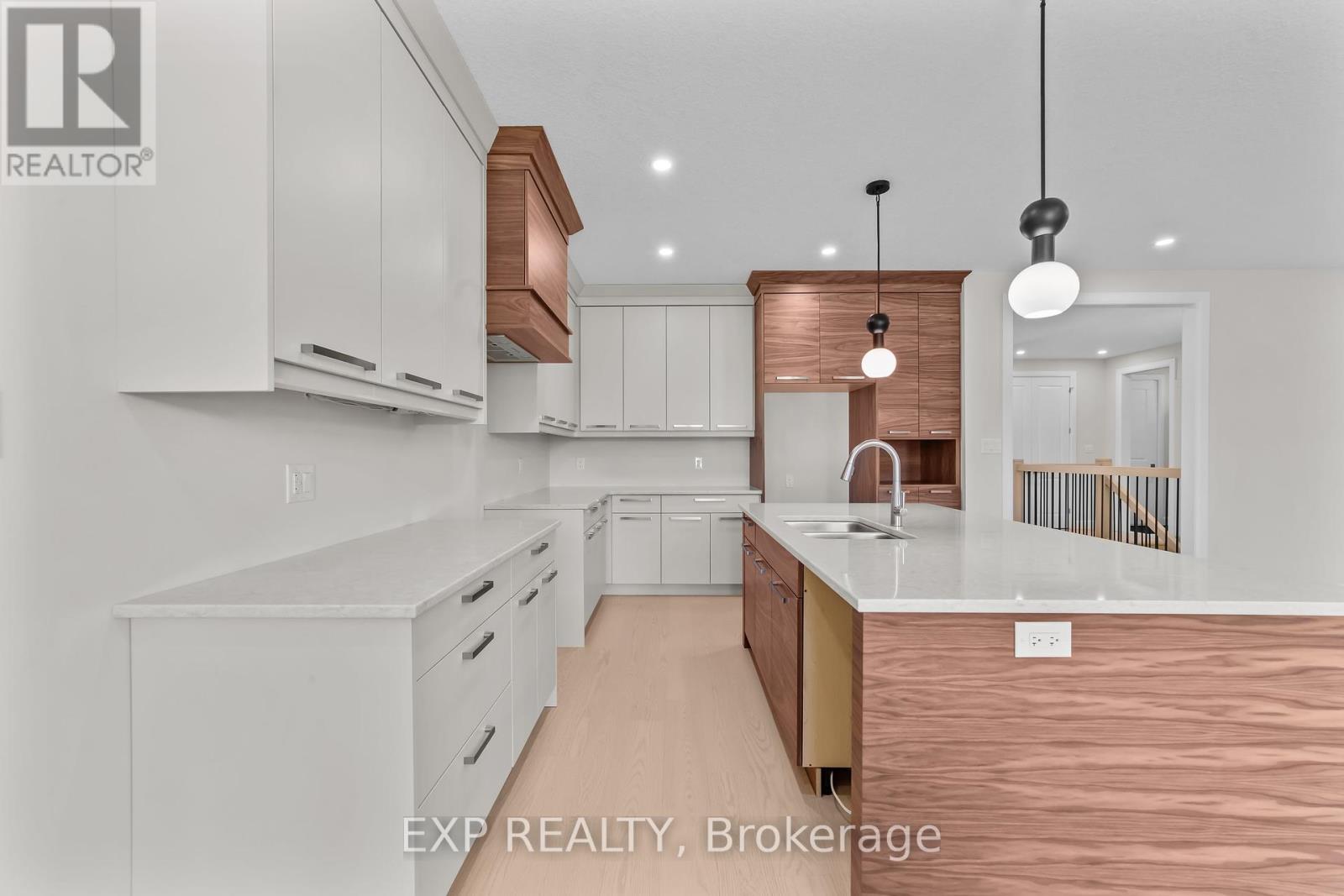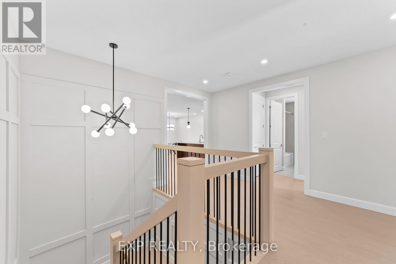 Welcome to this beautifully crafted 2-bed, 2-bath bungalow where elegant details and smart design meet. From the inviting covered front porch, step into a grand foyer with 9-foot ceilings and a striking wainscoted accent wall along the staircase a hint of the quality that flows throughout. At the front of the home, the secondary bedroom enjoys natural light and a private 4-piece bath complete with a built-in niche and its own linen closet. Tucked quietly at the back, the primary suite is a true retreat featuring a tray ceiling, a custom walk-in closet with wood shelving, and a spa-inspired 3-piece ensuite. Here you'll find a zero-entry shower, custom glass door and panel with brushed-nickel trim, built-in niches, and matching brushed-nickel framed mirrors. The heart of the home is an open-concept living space with engineered hardwood floors, 9-foot ceilings, and 8-foot doors for an airy feel. A gas fireplace anchors the living room, while the upgraded lighting and pot lights add warmth and style. The kitchen and dining area flow seamlessly to a covered back deck, perfect for relaxing or entertaining. Practical touches abound: a mudroom off the garage offers built-in cabinetry, a stainless-steel clothes rod, a bench with hooks, and a full laundry set-up with tile flooring. Bathrooms and the laundry room are finished with elegant tile for durability and easy care. The double car garage is insulated including the garage doors themselves, keeping you cool in the summer and warm in the winter. This new build by Branch Homes blends craftsmanship and comfort, ready to welcome you home. Schedule a private viewing today and experience bungalow living at its finest. (41320451)