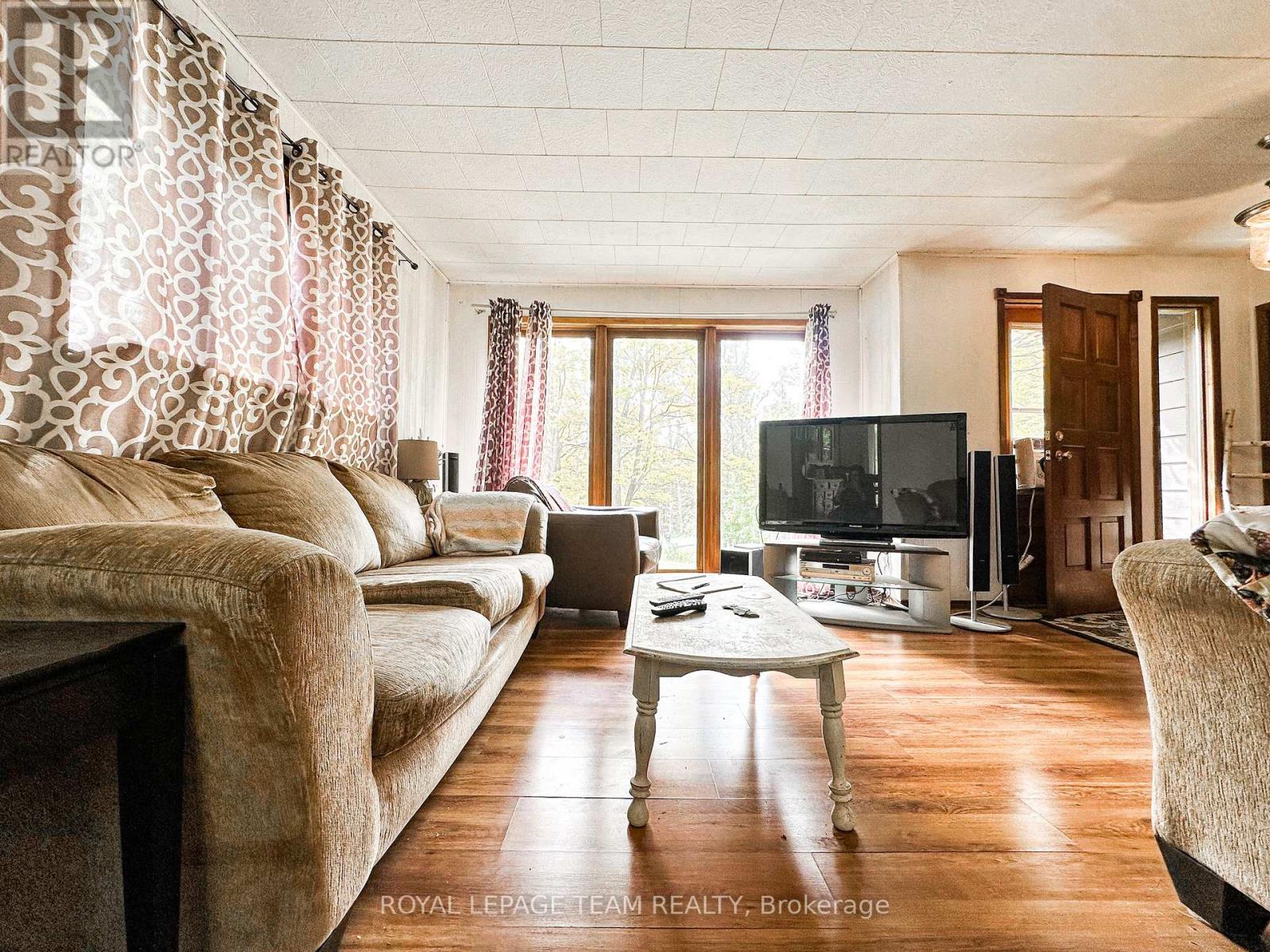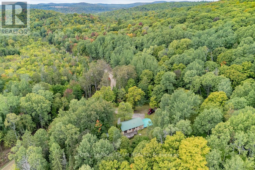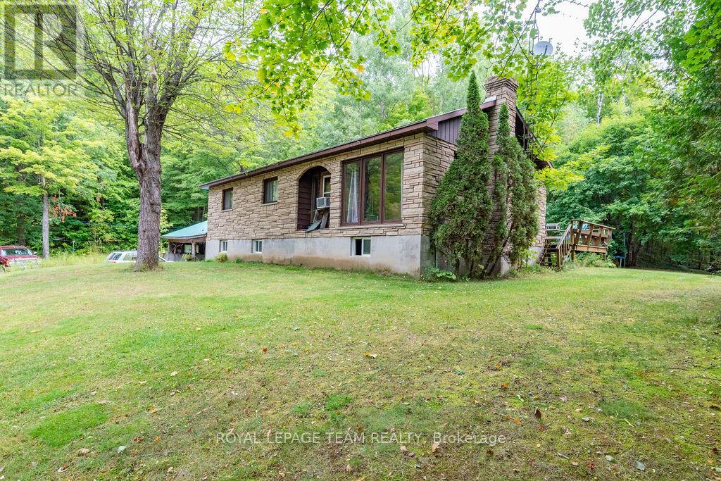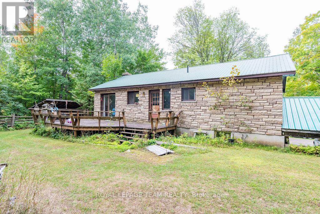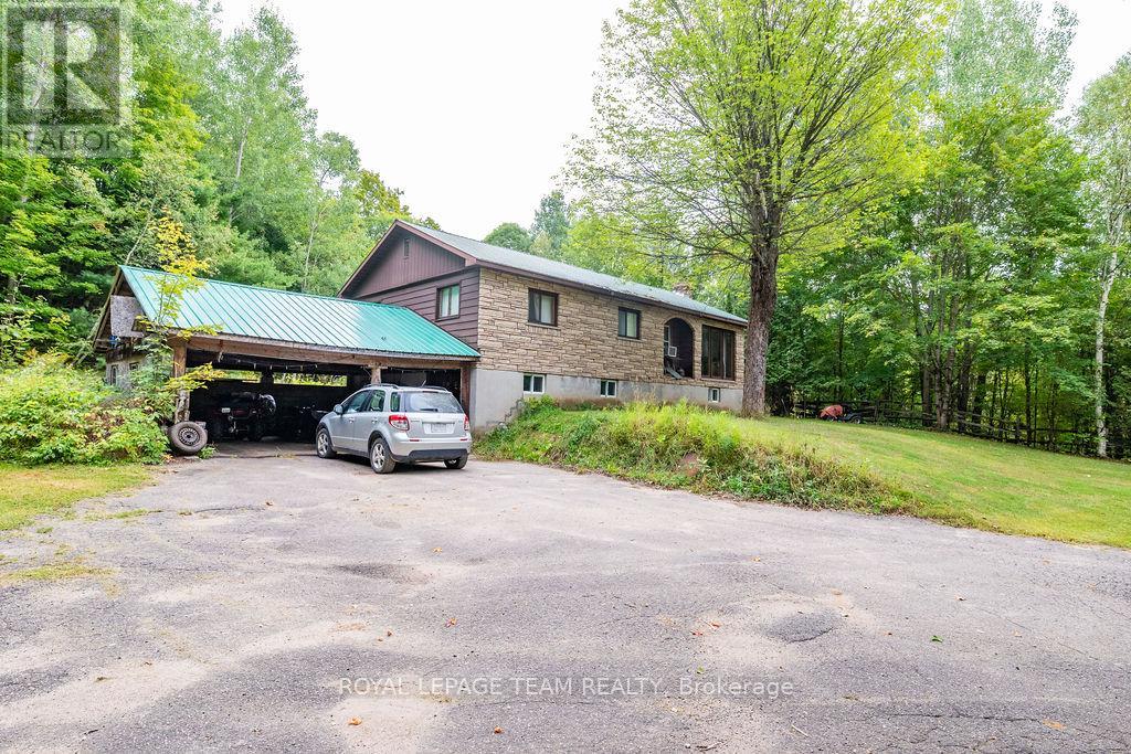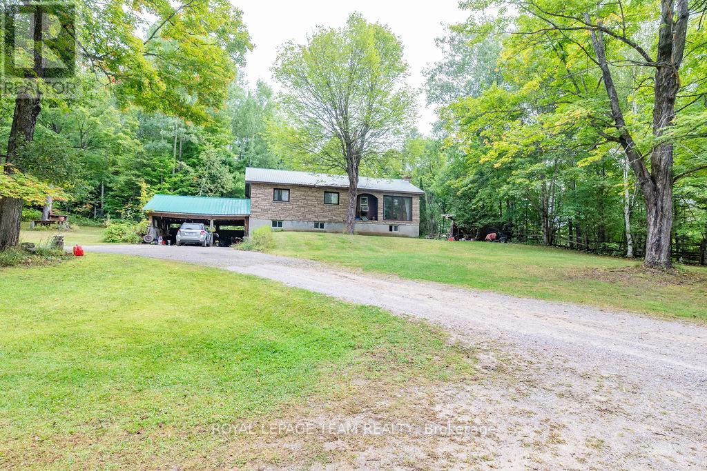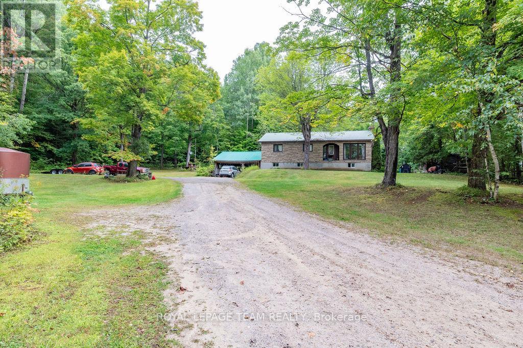 Charming 3-Bedroom Bungalow with Walkout Basement in a Forested Setting. This high ranch style home sits on a quiet, newly paved road and offers the perfect mix of comfort, space, and outdoor adventure. Surrounded by mature trees and backing directly onto public land, its an ideal choice for buyers seeking privacy and a peaceful lifestyle just 30 minutes from both Barrys Bay and Bancroft.The main level features a bright and functional layout with a spacious eat-in kitchen for family meals, a generous living room for relaxing or entertaining, three well-sized bedrooms, and a full bath. Each room is practical yet versatile, ready for your personal style and finishing touches.The walkout lower level provides even more potential. Currently unfinished, it includes laundry and plenty of open spacea blank canvas for a rec room, home office, gym, or hobby area. With direct access to the backyard, this level is convenient for families, pets, or anyone who loves the outdoors.Outside, enjoy a large back deck framed by forest views, offering a private space for morning coffee, summer barbecues, or simply taking in the quiet. With trails, freshwater lakes, and four-season recreation all close by, and public land at your back door, this property connects you directly to the best of outdoor living.Practical in design and exceptional in setting, this 3-bedroom bungalow provides the rare combination of rural privacy with proximity to amenities including hospitals, schools, and shopping. Whether youre starting out, upsizing, or looking for room to grow, this property offers a lifestyle worth embracing.Showings by appointment onlycome and explore the possibilities today. (41324545)