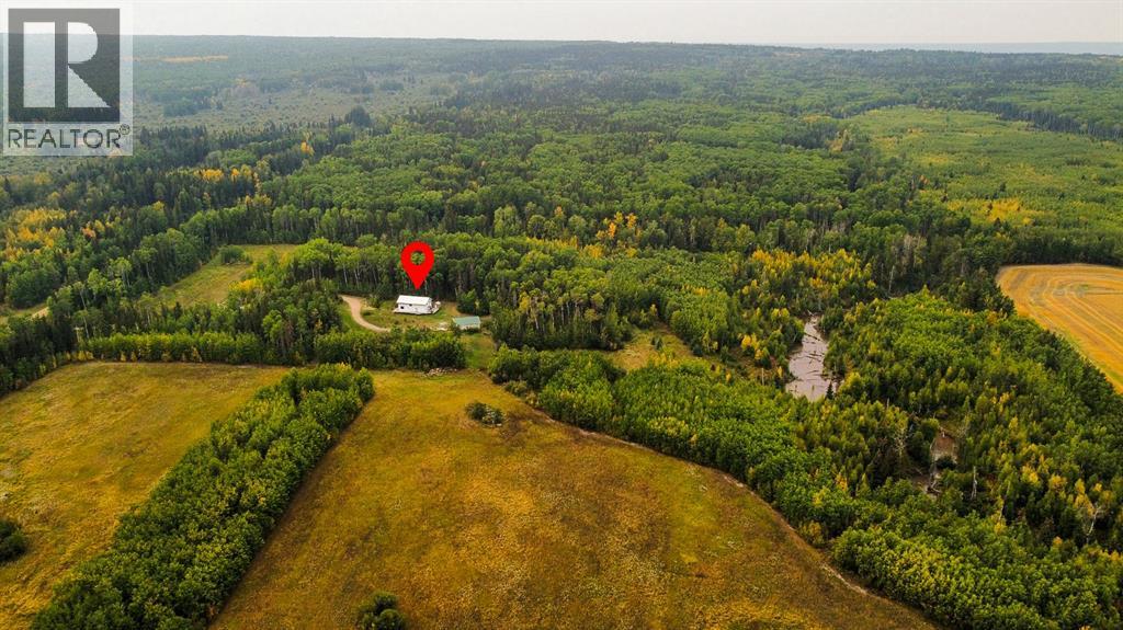 This charming property offers the perfect balance of modern comfort and tranquil country living. Set on 16.79 acres, it provides the ideal retreat with privacy, space, and convenience. Step inside and be welcomed by an abundance of natural light pouring through expansive windows, showcasing the home’s open layout and warm natural wood finishes. The bright and inviting living and dining areas create a serene atmosphere, ideal for both everyday living and entertaining. The kitchen is a chef’s dream, featuring oak cabinetry, generous counter space, a gas stove, and a spacious walk-in pantry. The primary suite is a private haven, complete with a walk-in closet, deck access, and a three-piece ensuite with a soaker tub and main-floor laundry. A four-piece guest bathroom completes the main level. Upstairs, you’ll find two additional bedrooms, a convenient two-piece bathroom, and a large loft. A versatile space perfect for a family room, home office, or hobby area. Outside, a heated double-car garage offers both parking and storage, while the surrounding landscape is adorned with mature trees and established perennials, creating your own peaceful country oasis. This property is a dream for outdoor enthusiasts, offering endless opportunities for gardening, quadding, and evenings around the firepit. Whether you’re seeking solitude, recreation, or a slower pace, this home truly has it all. Despite its serene setting, the property is just 30 minutes from Valleyview, giving you the best of both worlds, privacy and accessibility. Don’t miss your chance to call this stunning property home. Schedule your showing today and experience country living at its finest. (31160739)