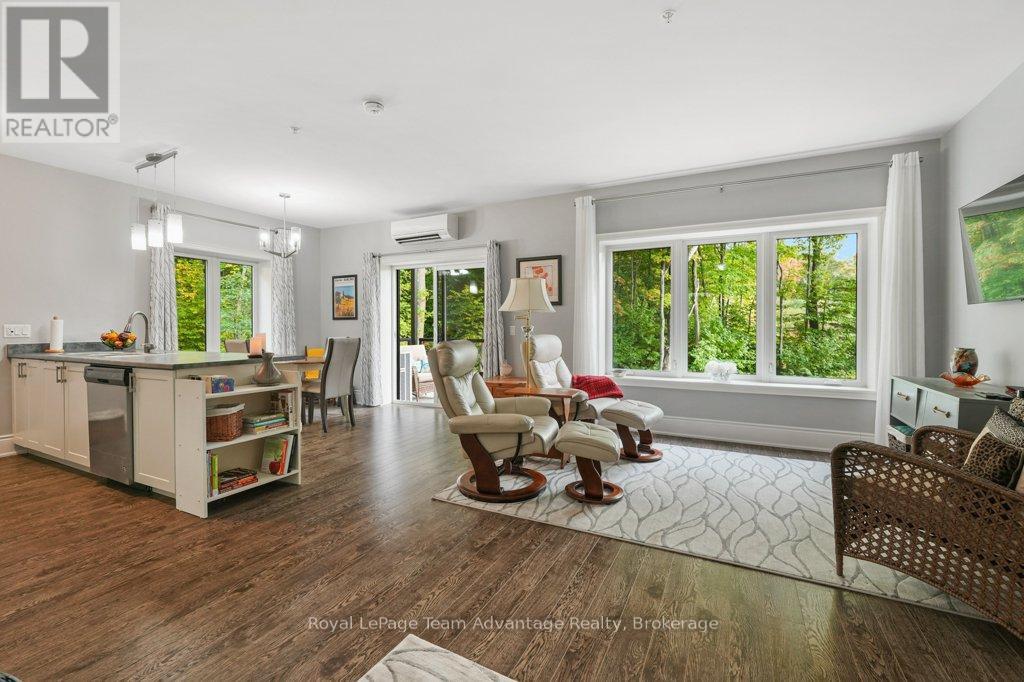 Welcome to condo life 11B - Granite Harbour Parry Sound- where comfort meets nature in the heart of Parry Sound. This bright 2 bedroom, 2 bathroom condo is thoughtfully designed with wheelchair accessibility and the ease of single-level living. Step out onto your private deck and take in the calming view of trees, a gentle stream, the rear gardens and even a glimpse of Georgian Bay. It's the perfect spot to enjoy your morning coffee or unwind at the end of the day. Inside you'll find a modern layout built in 2019 paired with the convenience of an indoor parking and locker space. Everything here is set up for practical, low-maintenance living without sacrificing comfort. Just outside your door explore walking trails, the waterfront and all that Parry Sound has to offer. Close to town yet surrounded by nature, this home is an easy fit for anyone looking for a place that's simple to live in and lovely to come home to. (in-floor radiant heat, ductless split A/C) (41329561)