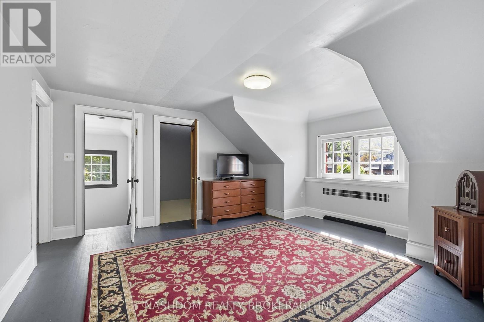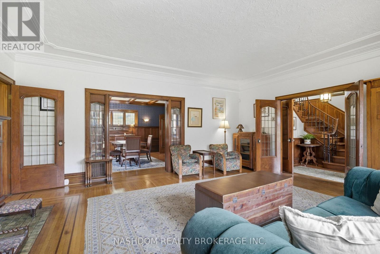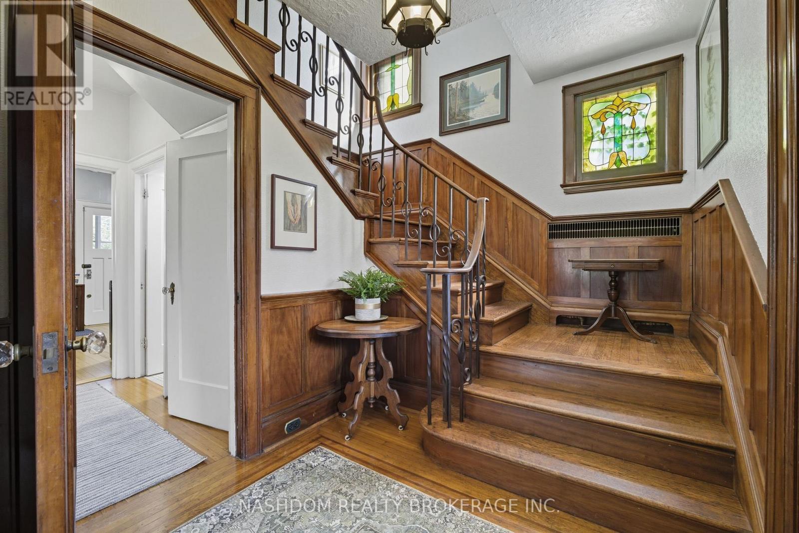 Set among tree-lined streets this standout classic is more than a house its a century home in one of Hamiltons most prestigious neighbourhoods, where original character and thoughtful preservation create a living piece of history. Built to last in 1931, this home retains its original charm and character, down to the original laundry chute! Step back in time into charming grand foyer that sets the tone for the heritage-rich home. Sweeping wood staircase with elegant wrought iron spindles & stained glass windows make striking first impression. Enter formal living room with tons of natural light from the original leaded glass bay windows and be impressed with timeless marble wood burning fireplace, flowing through French double doors into a spacious dining room with original beamed ceiling & beautiful chestnut wainscoting. Kitchen opens into cozy sitting nook, while a charming solarium off the dining room adds to the homes character. Thoughtfully placed main floor bath sits off the foyer. Walk up the grand staircase & take in the original wood trim and craftsmanship that carries through to a generous second-floor landing, spacious enough to feel like a room of its own. From here, access a full washroom & four large bedrooms, including one with private balcony overlooking the backyard oasis. Crowning the home is a full-height third-floor attic, an expansive, light-filled space that once acted as a self-contained retreat. Below, the fully finished basement offers exceptional ceiling height & a separate entrance, ideal for extended family or future income potential. Home is set on a large, private lot, the beautifully landscaped grounds feature mature chestnut trees, peaceful pond, & long driveway with plenty of parking. Double garage, complements the homes timeless quality. With 54 original windows flooding the interiors with light & stunning escarpment views to enjoy, this exceptional property offers rare charm, scale & lasting appeal. (41334331)