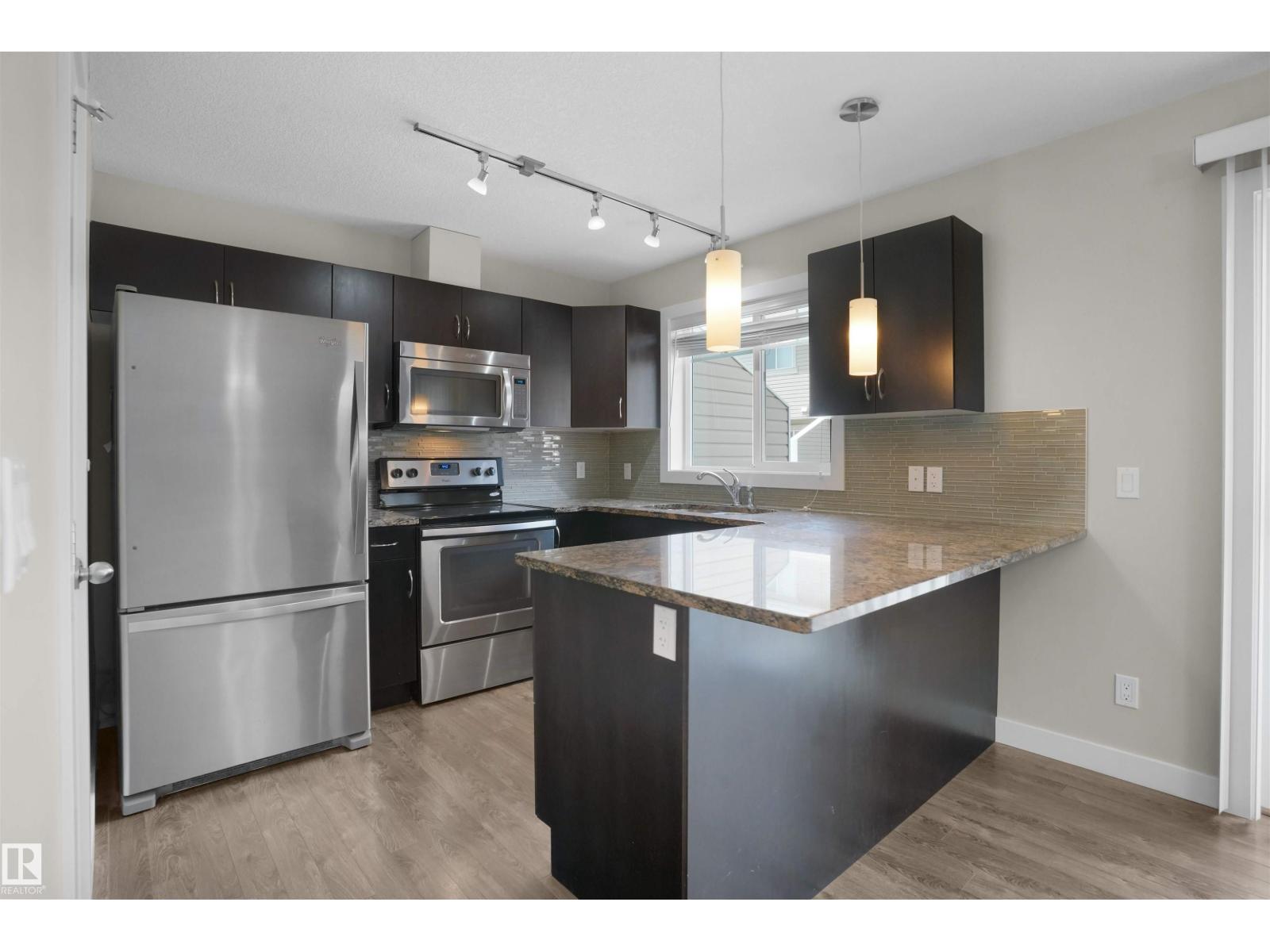 Welcome to this beautifully upgraded 3-bedroom, 2.5-bath townhouse with a finished basement, offering nearly 1,500 sq. ft. of total living space! Located in the highly sought-after community of Secord, this stylish 2 storey home features a double attached heated garage and an open-concept layout that’s perfect for modern living. The main floor boasts a spacious living room, a kitchen with espresso-finished cabinetry, granite countertops, stainless steel appliances, a pantry, and a bright dining area that opens to a generously sized balcony. Elegant upgrades throughout include laminate flooring, pot lights, tiled bathrooms, nickel hardware, and central A/C. Upstairs, you’ll find a large primary bedroom with a 3-piece ensuite and walk-in closet, along with two additional well-sized bedrooms. New hot water tank installed in 2023—just move in and enjoy (33371467)