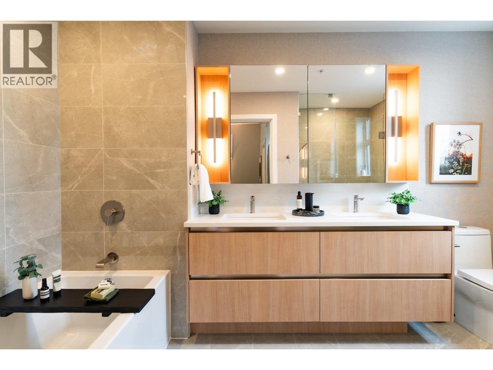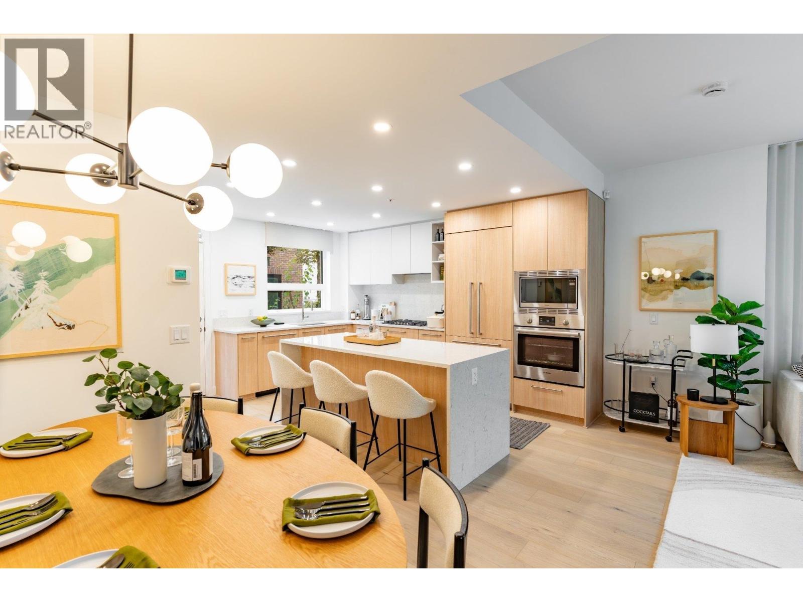 Plan D2, an expansive 4-bedroom, 2.5-bath townhome, offers over 1700 sq. ft. of interior living space over looking the Capilano River and North Shore mountains. Features include direct access to two parking stalls and storage. The main floor offers an open-concept kitchen, living, and dining area. The kitchen includes a premium Bosch appliance package, polished quartz countertops, and sleek cabinetry. Upstairs, the bedrooms provide privacy and comfort, including a spacious primary suite with walk-in closet and spa-like ensuite. Enjoy panoramic views off your private roof deck and bask in the tranquil sounds of the river. Open House . Every Sat/Sun 12-4PM #116 -2050 Glenaire Drive,NV. Ph for priv appt. Join us for our Holiday Event Sat Dec 6th & 13th from 1-3PM! Treats and Prizes. (31970511)
