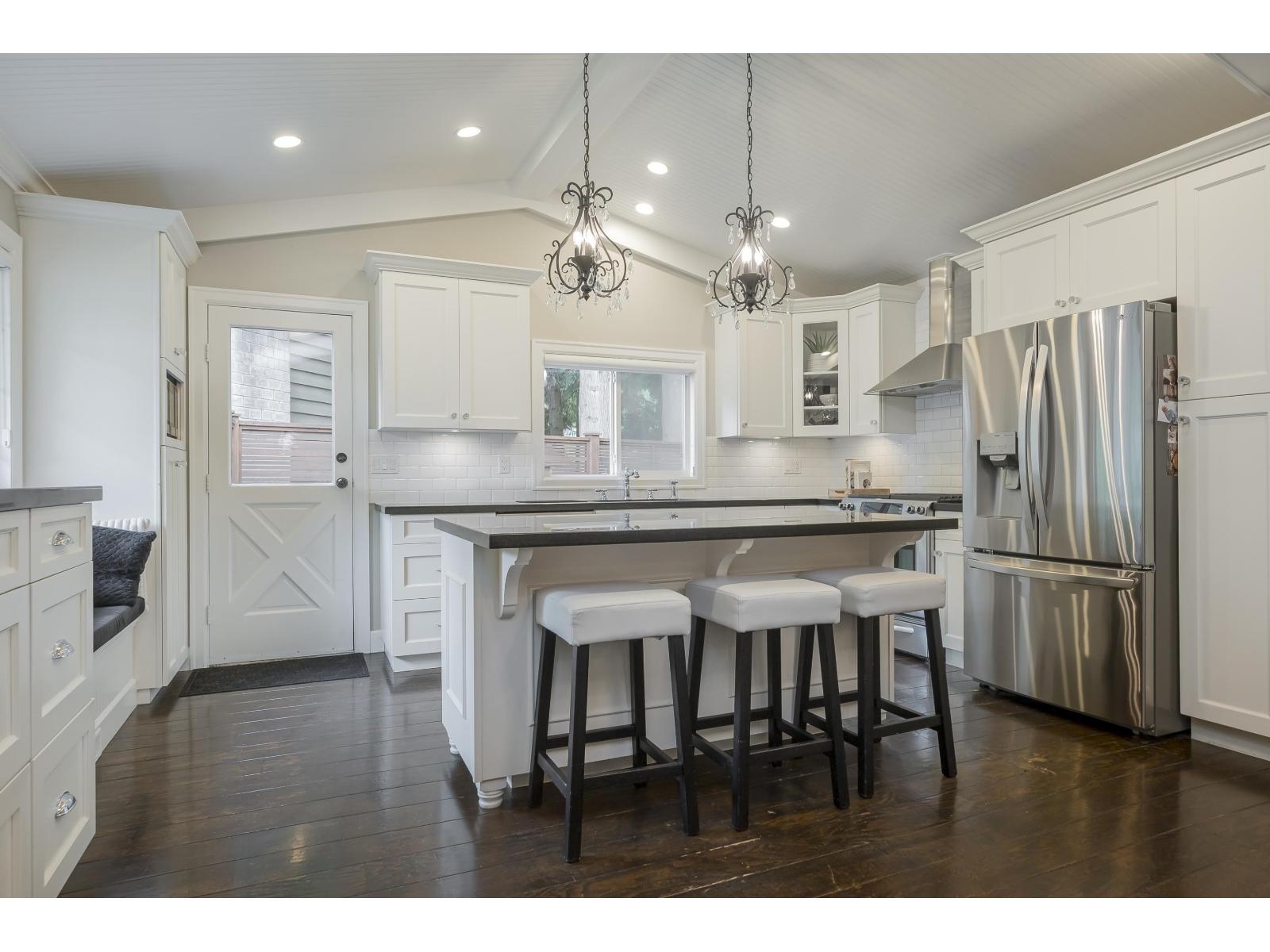 This is not a drive-by-this home is a hidden family gem that truly shows a 10+! Offering over 2,937 sq.ft. of living space, the unique floor plan is larger than it looks and designed for everyday living and entertaining. The main floor features a gorgeous white kitchen with a massive island, an entertainer's dining room with built-in bar, soaring vaulted ceilings, and gleaming hardwood floors overlooking the cozy sunken family room. Upstairs you'll find 3 bright bedrooms, including a spacious primary with walk-in closet and a beautifully updated 5-piece ensuite with glass shower and double soaker tub. Step right from the kitchen to your private backyard oasis with a huge sundeck, outdoor kitchen/BBQ, water feature, and refurbished children's playground-perfect for family fun! All on an 8,185 sq.ft. lot with NEW roof (2025), new cedar fencing, custom cabinetry throughout, and a side-suite option possible. (31973139)
