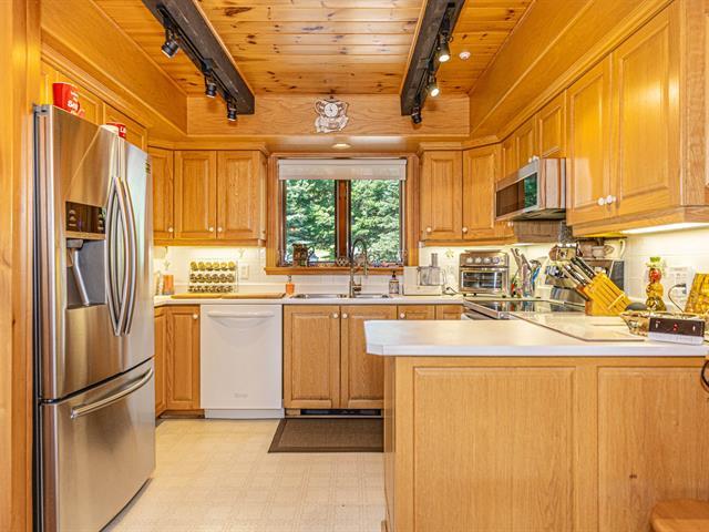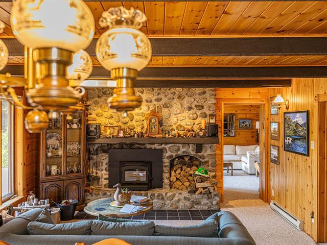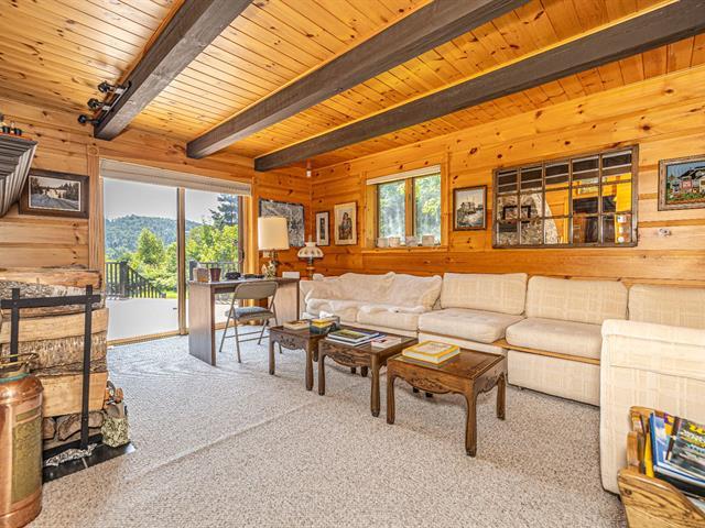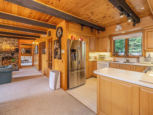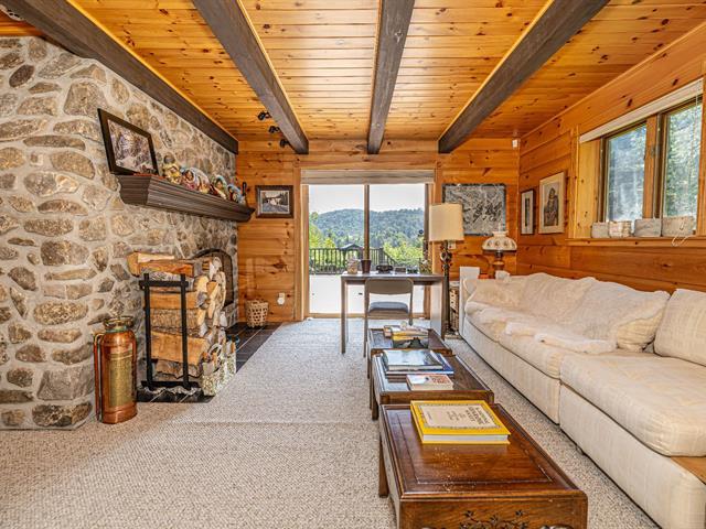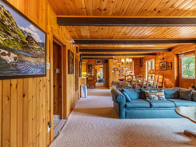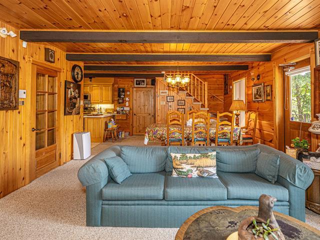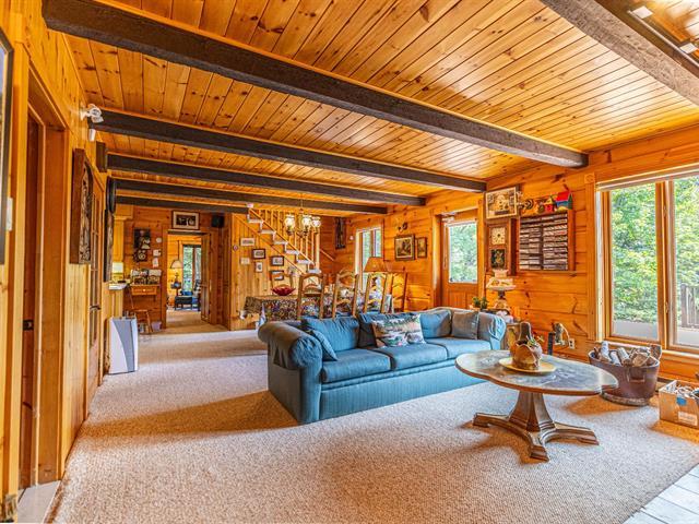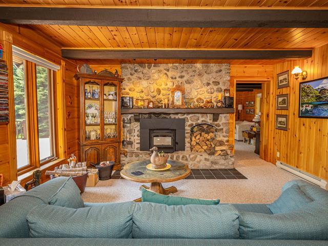 Bordering the prestigious Lake Manitou, this elegant handcrafted timber home sits on a 40,757 sq. ft. wooded lot. It offers remarkable views of the lake and surrounding mountains, direct and privileged access to the water, and exceptional privacy in one of the Laurentians' most sought-after locations. With its refined woodwork and carefully selected materials, the residence exudes warmth and authenticity. Ideally located just 20 minutes from Tremblant and 10 minutes from Ste-Agathe and services. The property is sold as is, offering turnkey living and quick occupancy. (39519294)
