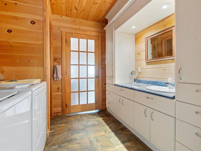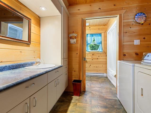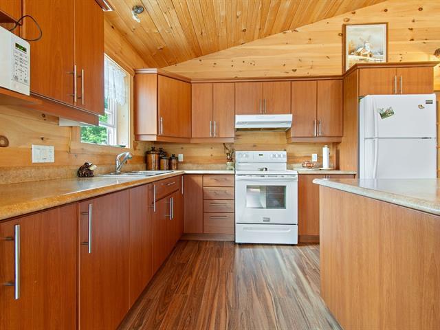 One of a kind the market, the only house built after 1980 currently available in Maniwaki! Built in 2012, with poured concrete foundations. The warm interior is distinguished by its wooden walls and cathedral ceilings, offering a unique character. You will find a vast open space combining the living room, dining room, and kitchen, ideal for entertaining. The master bedroom is spacious, the partially finished basement includes rough-in plumbing for a future bathroom, with the possibility of adding two additional bedrooms. Located just two minutes from downtown Maniwaki. (54239192)