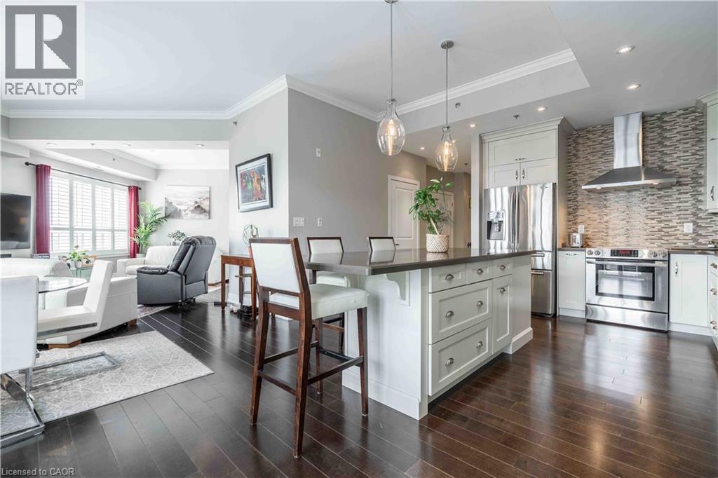 Experience true penthouse luxury at the Haven building in Burlington's coveted Orchard community! This Spectacular 1-bedroom plus den, 2-bathroom suite redefines condo living with 1,209 sq ft of sun-drenched space soaring 10-foot ceilings that must be seen to be appreciated. Originally a two-bedroom plan, this unit has been brilliantly redesigned to create a massive, open-concept living room perfect for entertaining or enjoying the airy, light-filled ambiance. The updated chef's kitchen is the heart of the home, featuring gleaming quartz countertops, a large island, and premium stainless steel appliances. Unwind in your private primary retreat with a large walk-in closet and a spa-like ensuite bath. The versatile den makes an ideal home office or guest space. Enjoy morning coffee on your private balcony and the incredible convenience of a storage locker located on the same floor. The Haven offers an unbeatable lifestyle. Head up to the spectacular rooftop terrace with BBQs, a putting green, and panoramic views of the escarpment. The building also includes a gym, a party room, and an energy-efficient geothermal heating and cooling system for low-cost, year-round comfort. (69698226)