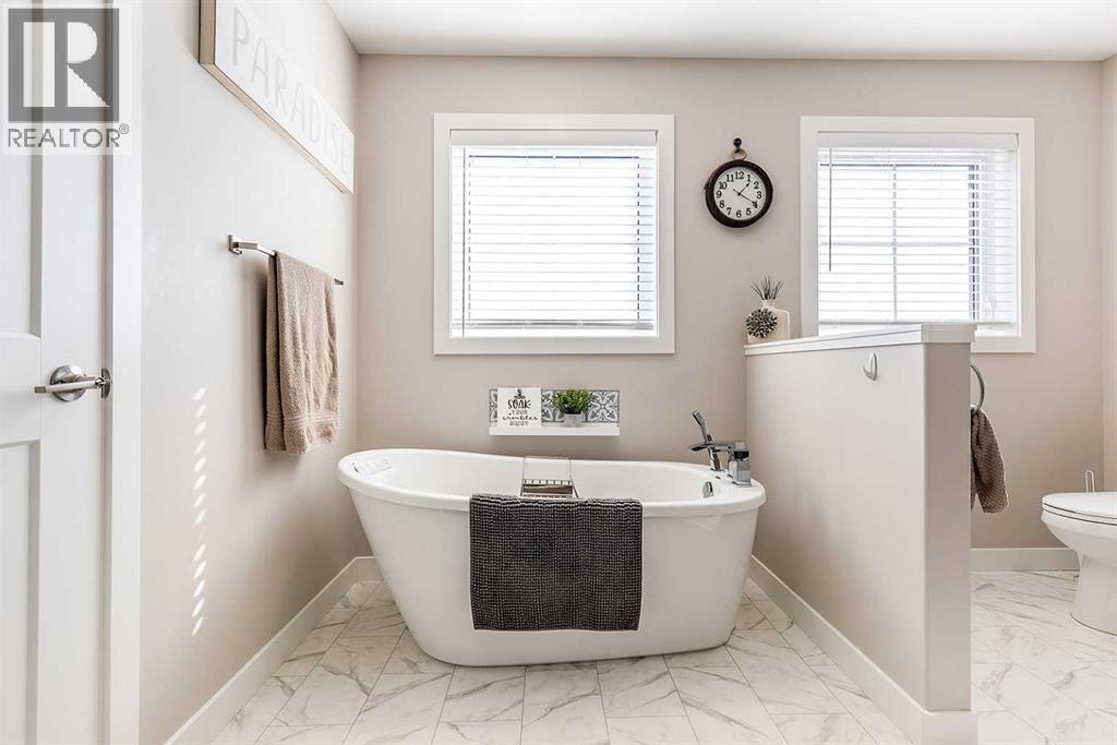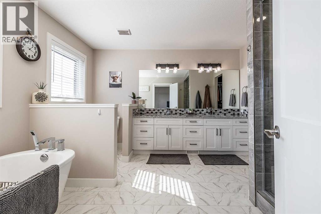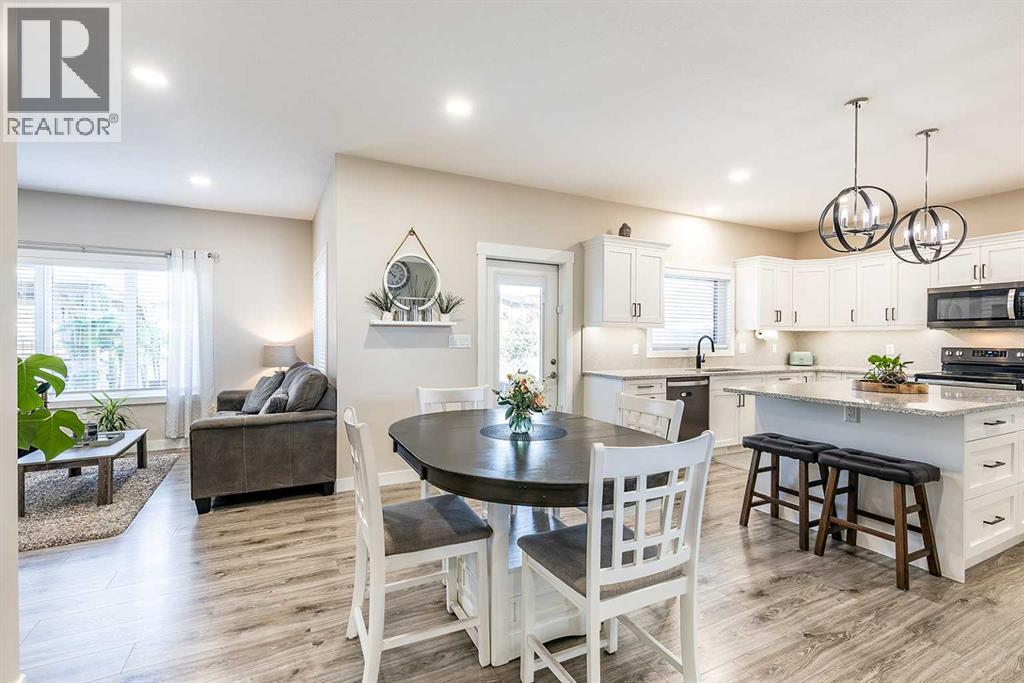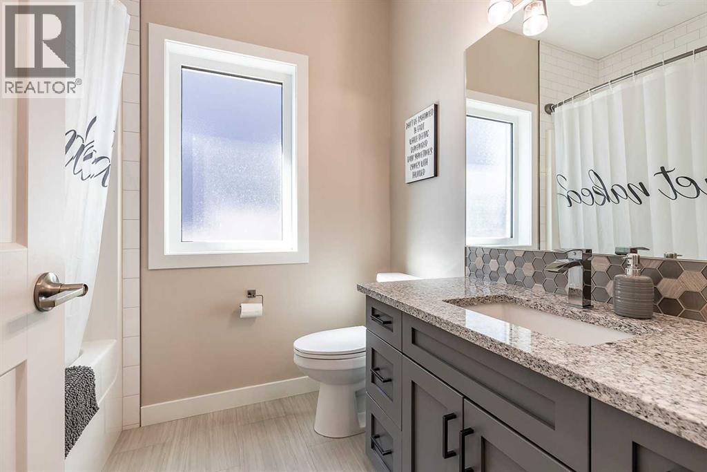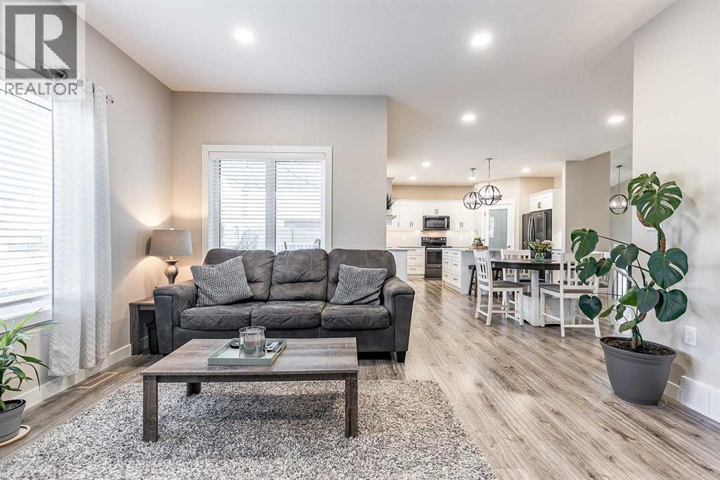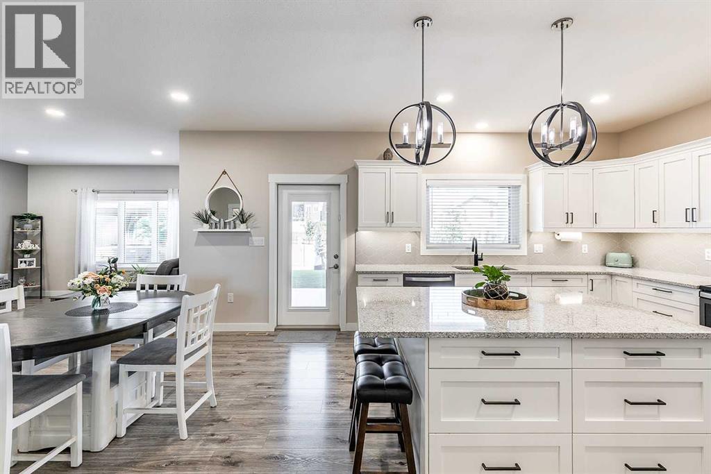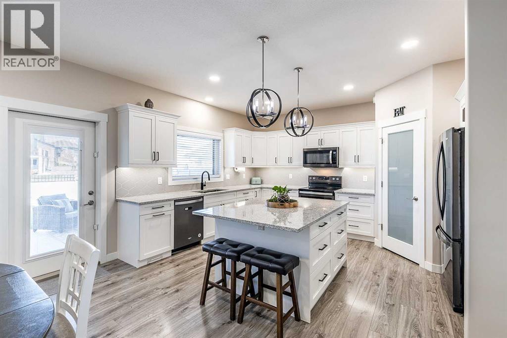 Welcome to 258 Ranchview Crescent NE – a stunning modified bi-level with undeniable curb appeal in the highly sought-after Ranchlands community. Backing onto a large green space and walking path, this home offers both privacy and a beautiful natural setting. Inside, you’ll find 4 bedrooms, 3 full bathrooms, and a thoughtfully designed open-concept main floor. The kitchen is a showstopper with white cabinetry, quartz countertops, a large centre island, tile backsplash, and a corner pantry. It flows seamlessly into the spacious dining area and cozy living room complete with a gas fireplace. A versatile main floor bedroom can serve as a guest room, office, gym, or playroom, and there’s also a full 4-piece bathroom and convenient main floor laundry. The private primary suite, located above the garage, is a true retreat. It features a spa-like 5-piece ensuite with double sinks, a standalone tub, and a walk-in shower, plus a large walk-in closet with custom built-ins. The fully developed basement offers even more living space with a large family room, two additional bedrooms, and another 4-piece bathroom.Step outside to enjoy the beautifully finished backyard with a large, covered patio, realistic artificial lawn, gazebo, and hot tub—plus direct access to the greenspace and walking path behind. The triple attached garage adds even more appeal, perfect for families and hobbyists alike. This property combines modern style, functionality, and an unbeatable location—truly a must-see! (31187620)