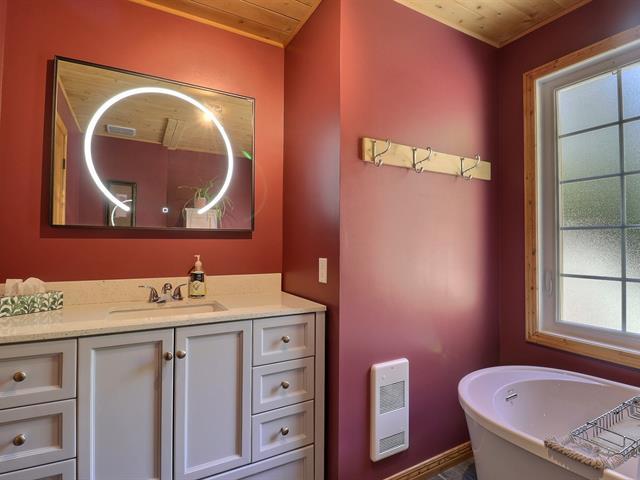 Implantée sur un terrain boisé et bénéficiant d'une bande naturelle de 20 pieds d'arbres avec les voisins, cette propriété offre un parfait équilibre entre intimité, confort et nature. La salle à manger, parfaitement orientée plein sud vers le lac, bénéficie d'un toit cathédrale et de la fenestration abondante en triple vitrage, offrant luminosité et efficacité énergétique. La maison comprend 3 chambres à coucher ainsi qu'une grande salle familiale au sous-sol, agrémentée d'un poêle à bois. Un garage 22 x 23 pieds complète l'espace pratique. À l'extérieur, un abri moustiquaire vous permettra de profiter de moments paisibles en nature. (55898274)