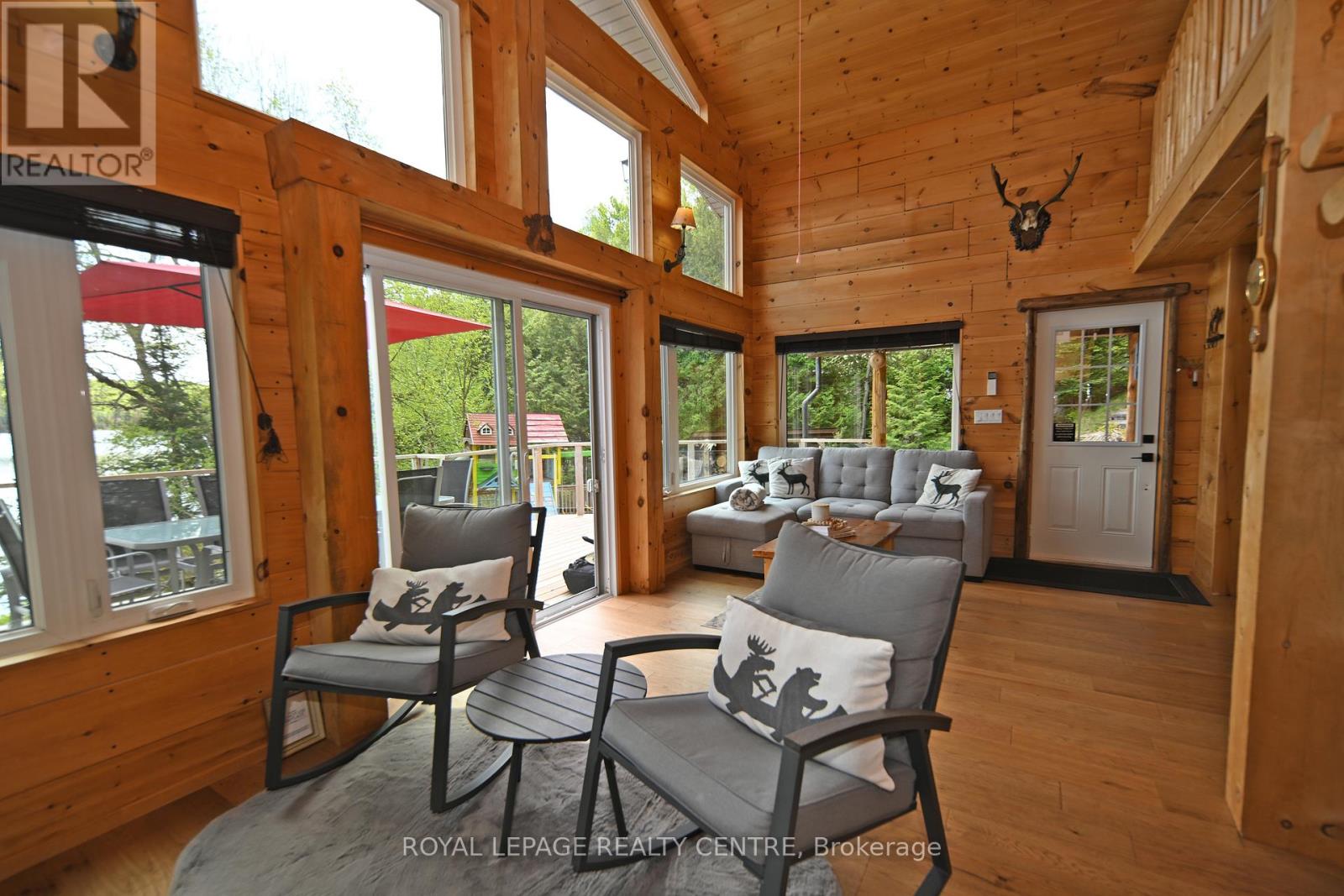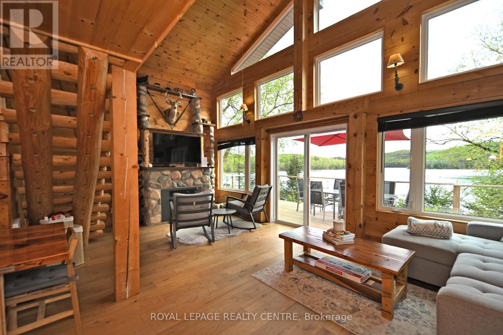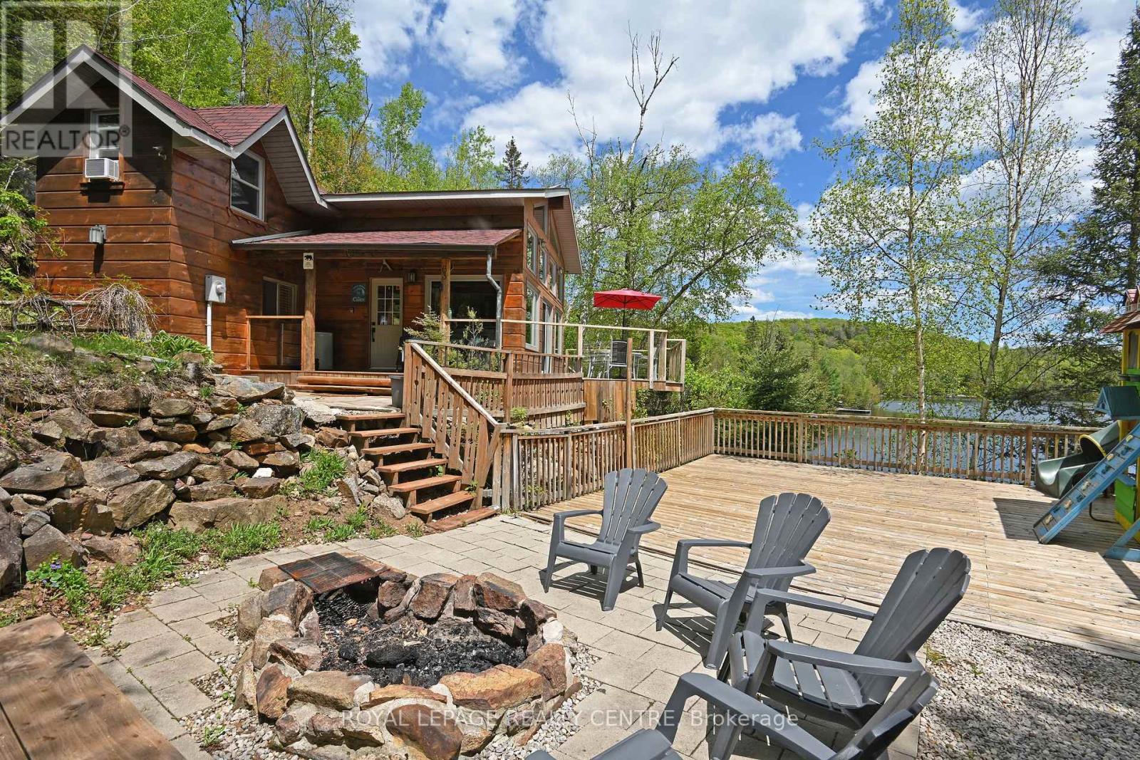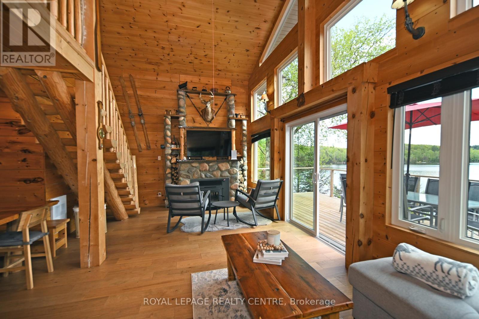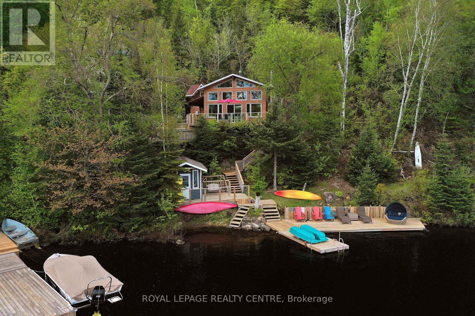Sausage Lake Waterfront, Fully Furnished Cottage With 183 Ft Shoreline Access, Spectacular 3-Tier Decks, Boat Docks And Marina!!! You Can Truly Have It All In One Property With The Absolutely Epic, Multidirectional Panoramic View Of The Breathtaking Sausage Lake Sunsets...Picture This; A 1500 Sqft Custom Built Home, Hooked Up To The Bedrock, With A Rustic Vibe, Huge Windows, High & Cathedral Ceilings And Cozy Stone Fireplace. Fully Winterized, Heated And Cooled All Year Round. This Cottage Is A Place Where Lasting Memories Are Made. Stop By And You Will See Where Summer Season Can Truly Be Enjoyed! This Bright Open Concept 4 Bedroom, 1 Loft, 1 Bath Cottage Is Full Of Charm. Enjoy A Morning Coffee On The Front Porch Or Waterfront Deck Overlooking Multicoloured Lake Water And A Small Sandy Beach Area. Have A Pleasant Afternoon And Enjoy A BBQ On The Patio With Covered Kitchenette. In The Evenings, Prepare And Serve Your Meals In The Generous, Custom-Made From The Old Barn Wood, Kitchen That Opens To The Dining Area And A Family Room. Enjoy A Magnificent Sunrise Or Sunset View As A Dessert! Main Floor Area Ends With A Unique Bedroom Featuring A Separate Entrance And A Bathroom With Laundry Section. Upstairs, There Are 2 Bedrooms And 1 Loft Overlooking The Family Room-Just Perfect For Company Or Kids. As A Great Addition To The Cottage, Oversized Double Garage Offers 220V Power Station And A Huge Space Above That Can Be Converted Into A Guest Room. Please Be Assured, Trout Creek Neighbourhood Area Offers Year-Round Activities. Whether It Is Boating, Fishing And Swimming In The Summer Or Snowshoeing, Cross-Country Skiing And Snowmobiling In The Winter, There Is Always An Opportunity To Keep Active And Enjoy The Beauty Of Nature. (41369493)
