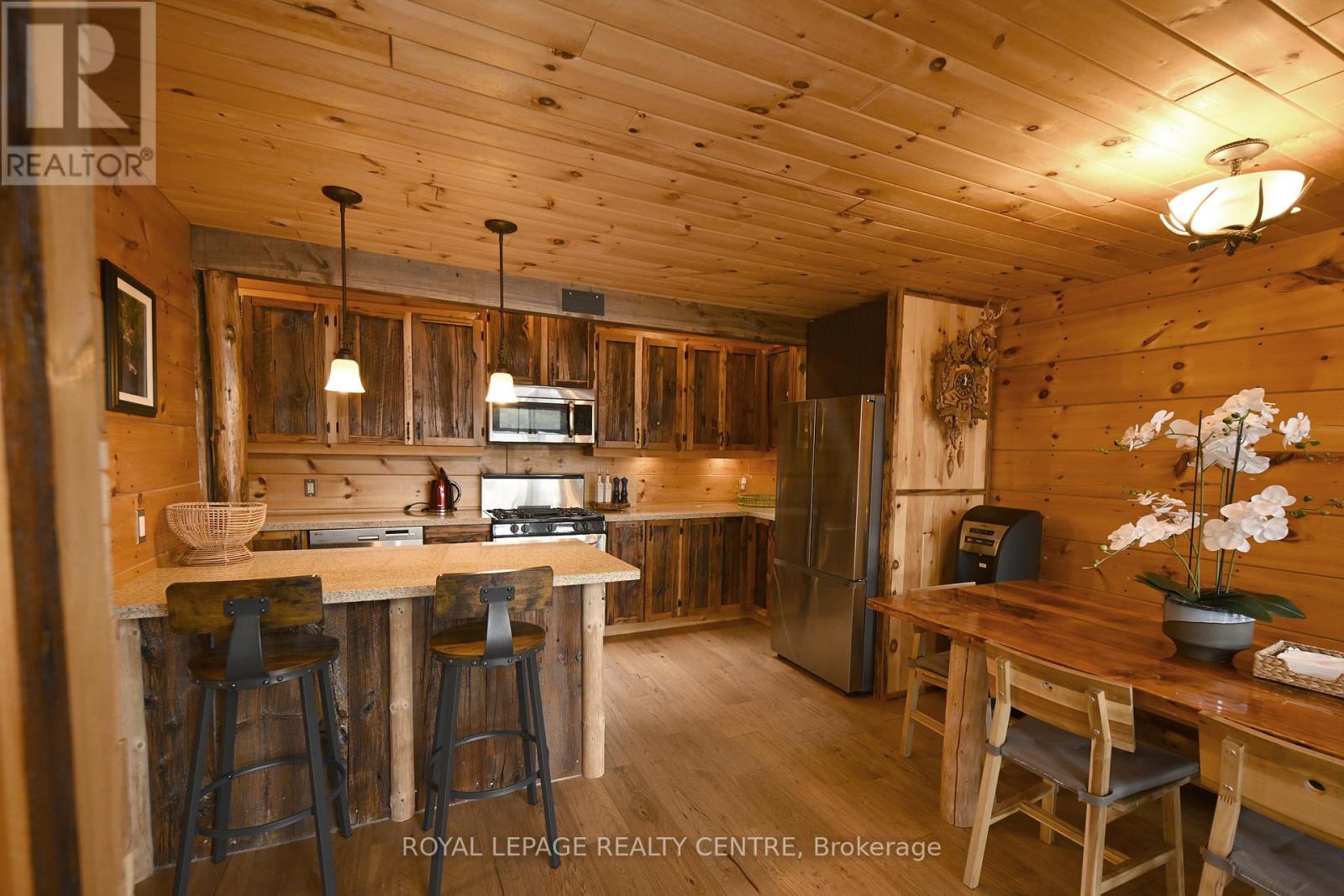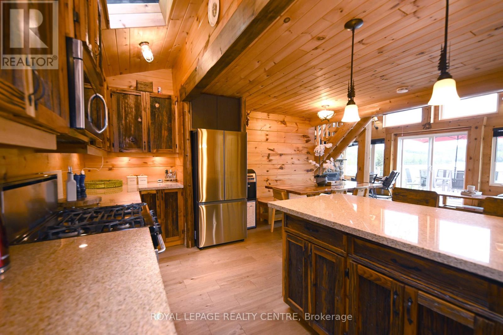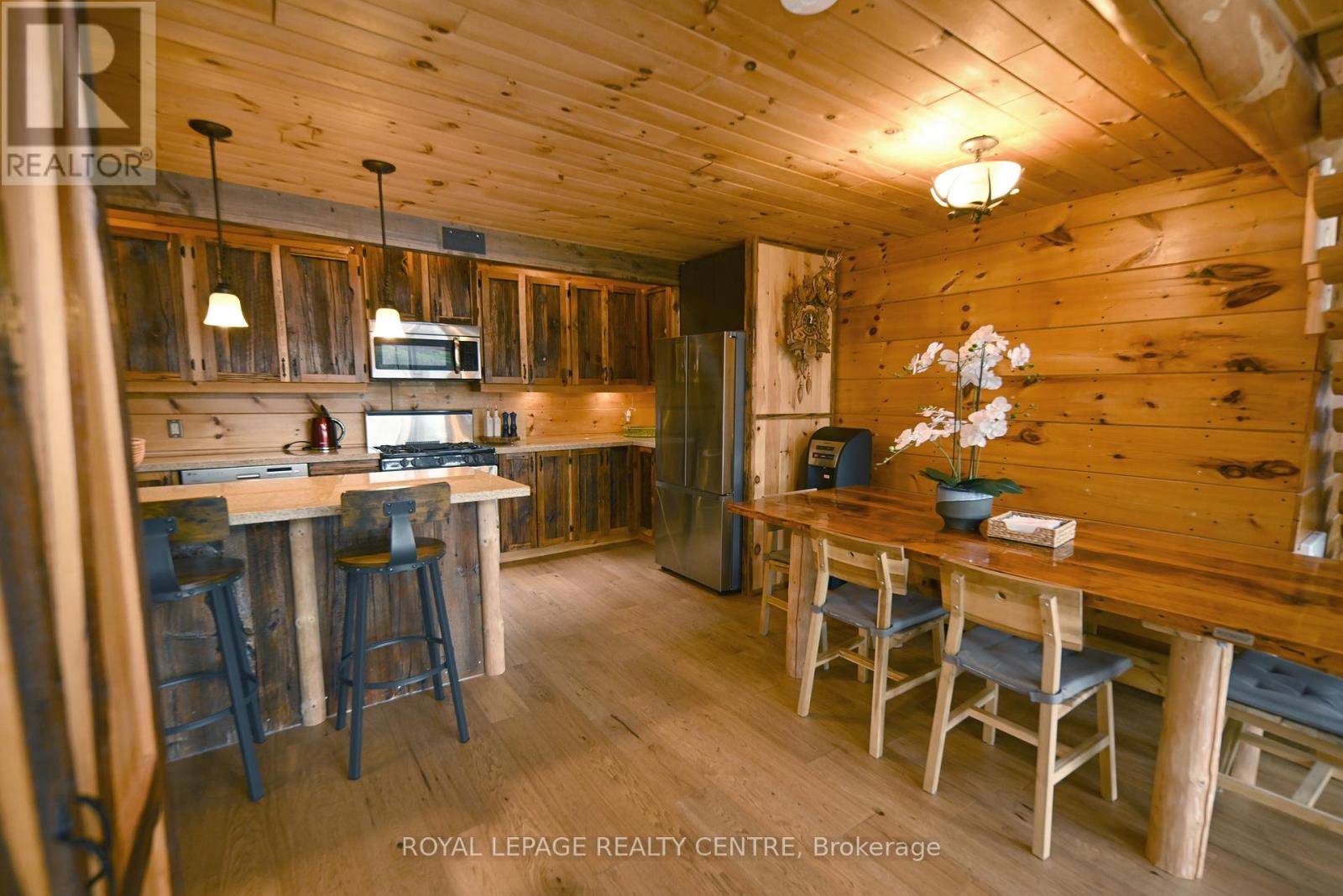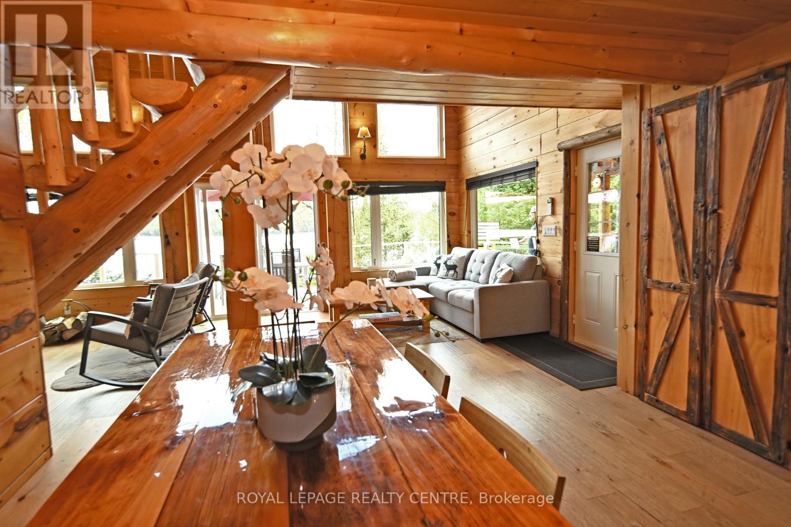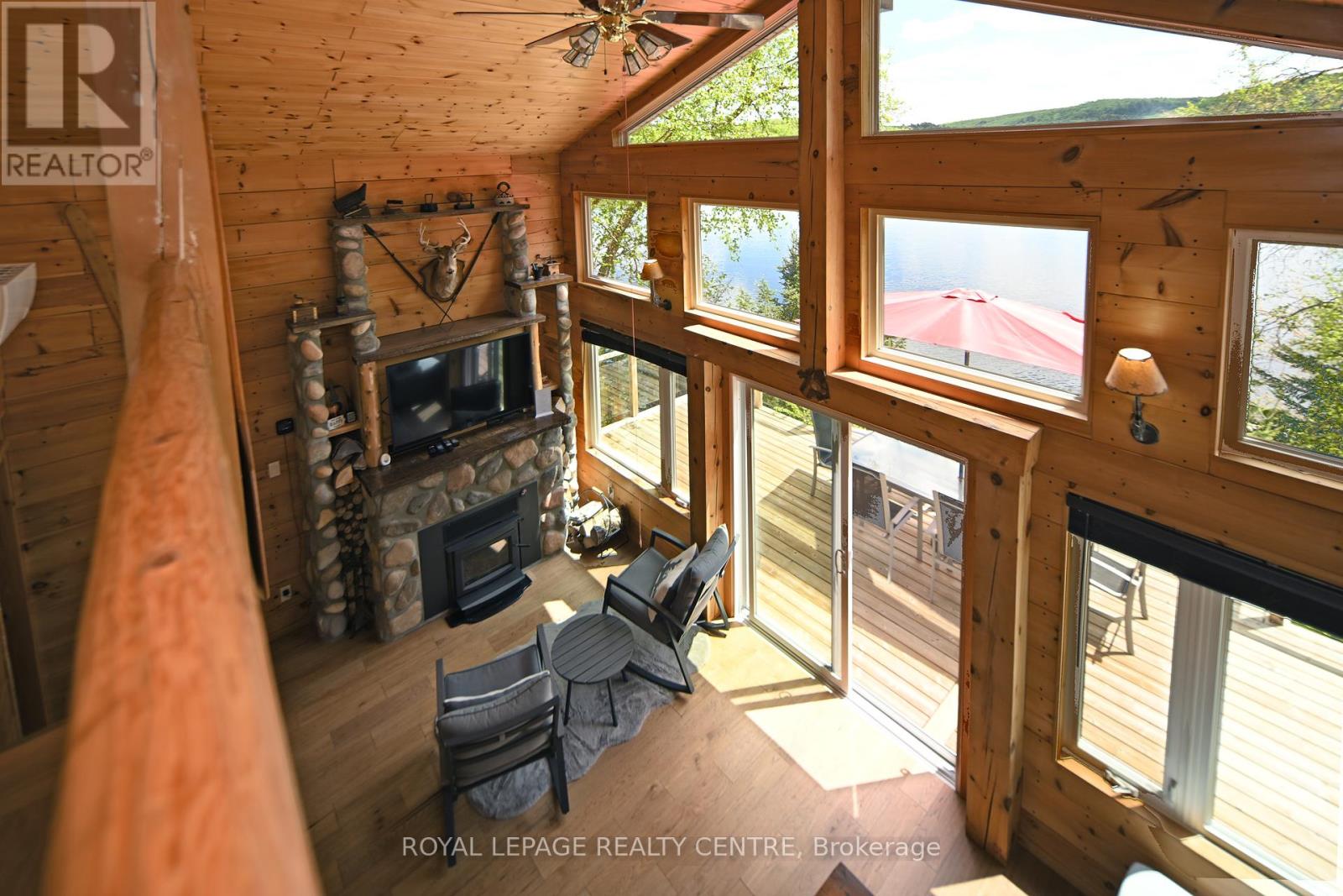 Sausage Lake Waterfront, Fully Furnished Cottage With 183 Ft Shoreline Access, Spectacular 3-Tier Decks, Boat Docks And Marina!!! You Can Truly Have It All In One Property With The Absolutely Epic, Multidirectional Panoramic View Of The Breathtaking Sausage Lake Sunsets...Picture This; A 1500 Sqft Custom Built Home, Hooked Up To The Bedrock, With A Rustic Vibe, Huge Windows, High & Cathedral Ceilings And Cozy Stone Fireplace. Fully Winterized, Heated And Cooled All Year Round. This Cottage Is A Place Where Lasting Memories Are Made. Stop By And You Will See Where Summer Season Can Truly Be Enjoyed! This Bright Open Concept 4 Bedroom, 1 Loft, 1 Bath Cottage Is Full Of Charm. Enjoy A Morning Coffee On The Front Porch Or Waterfront Deck Overlooking Multicoloured Lake Water And A Small Sandy Beach Area. Have A Pleasant Afternoon And Enjoy A BBQ On The Patio With Covered Kitchenette. In The Evenings, Prepare And Serve Your Meals In The Generous, Custom-Made From The Old Barn Wood, Kitchen That Opens To The Dining Area And A Family Room. Enjoy A Magnificent Sunrise Or Sunset View As A Dessert! Main Floor Area Ends With A Unique Bedroom Featuring A Separate Entrance And A Bathroom With Laundry Section. Upstairs, There Are 2 Bedrooms And 1 Loft Overlooking The Family Room-Just Perfect For Company Or Kids. As A Great Addition To The Cottage, Oversized Double Garage Offers 220V Power Station And A Huge Space Above That Can Be Converted Into A Guest Room. Please Be Assured, Trout Creek Neighbourhood Area Offers Year-Round Activities. Whether It Is Boating, Fishing And Swimming In The Summer Or Snowshoeing, Cross-Country Skiing And Snowmobiling In The Winter, There Is Always An Opportunity To Keep Active And Enjoy The Beauty Of Nature. (41369493)