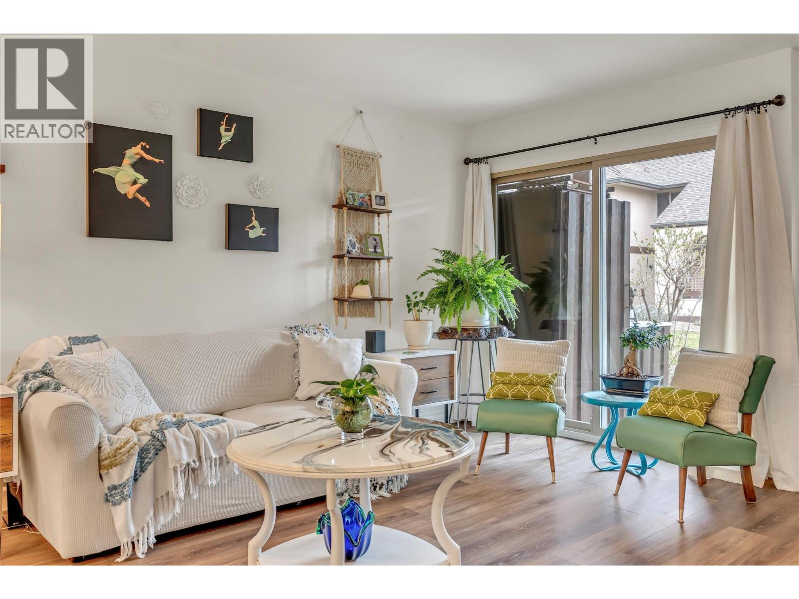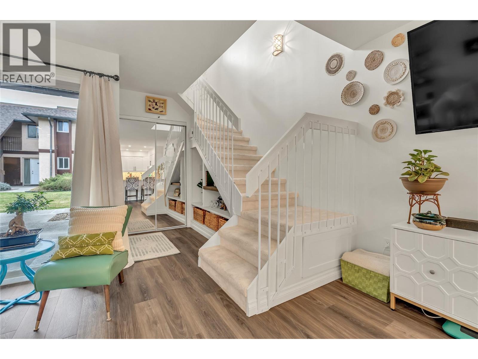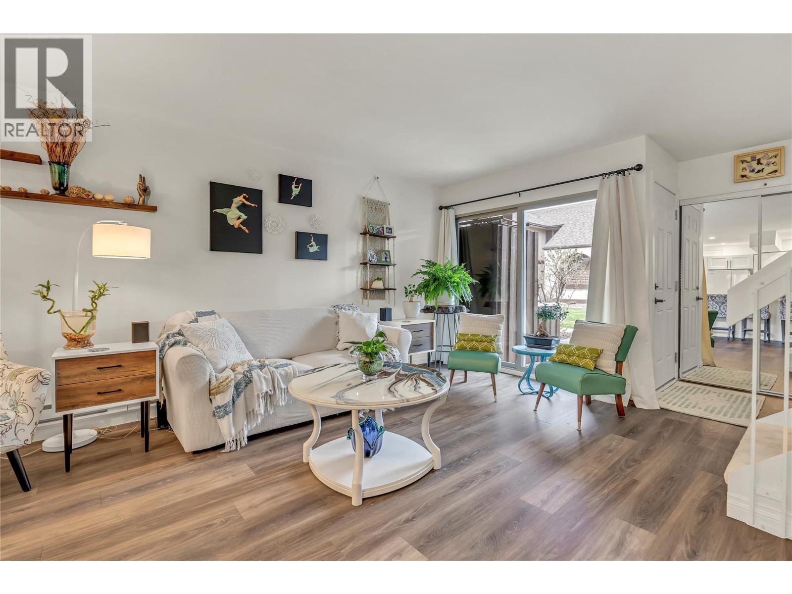 OPEN HOUSE SATURDAY DECEMBER 13 10-11 AM. Thoughtfully renovated 1 Bed 1 Bath condo in Tiffany Gardens. The renovated kitchen has been opened up from the original closed-off layout, with new epoxy countertops complimented with updated white cabinets and a matching extended pantry storage unit. The new vinyl flooring up and down tastefully complements the light and bright space by bringing in some colour dynamics. Under the stairs has been smartly renovated to include a built-in shelving unit with a second accessible storage. The loft space has been closed off, adding extra usable square footage to the bedroom, and also adding a layer of privacy to the home. Additionally, the bathroom has been completely renovated with a tasteful white appearance. There is plenty of storage inside the laundry room. The unit has 2 outdoor spaces to be enjoyed, additionally the bottom patio has a custom storage unit. On a quiet street, within walking distance to Skaha Beach, shops, parks, and school, this location is Penticton perfection. (39303209)