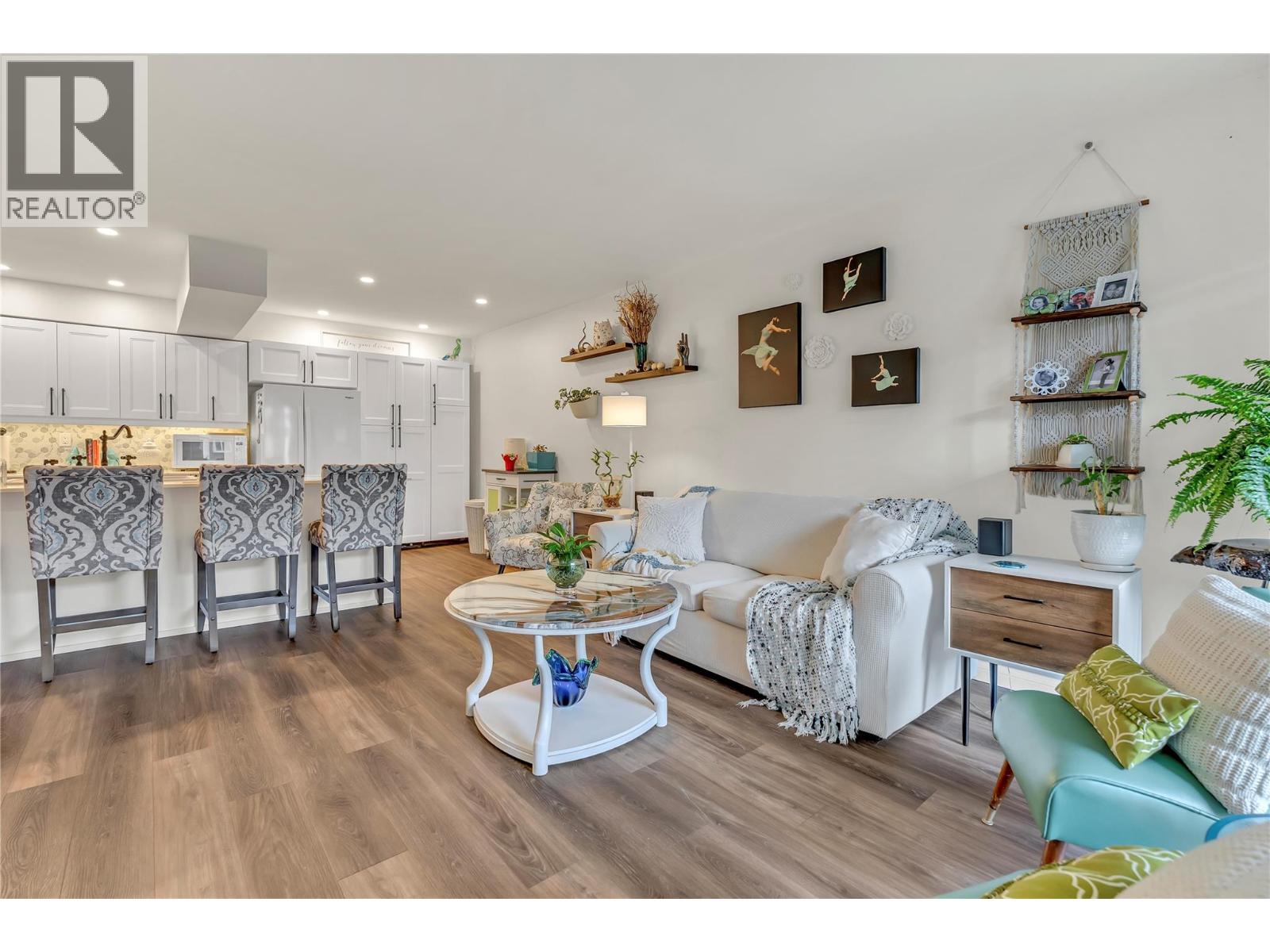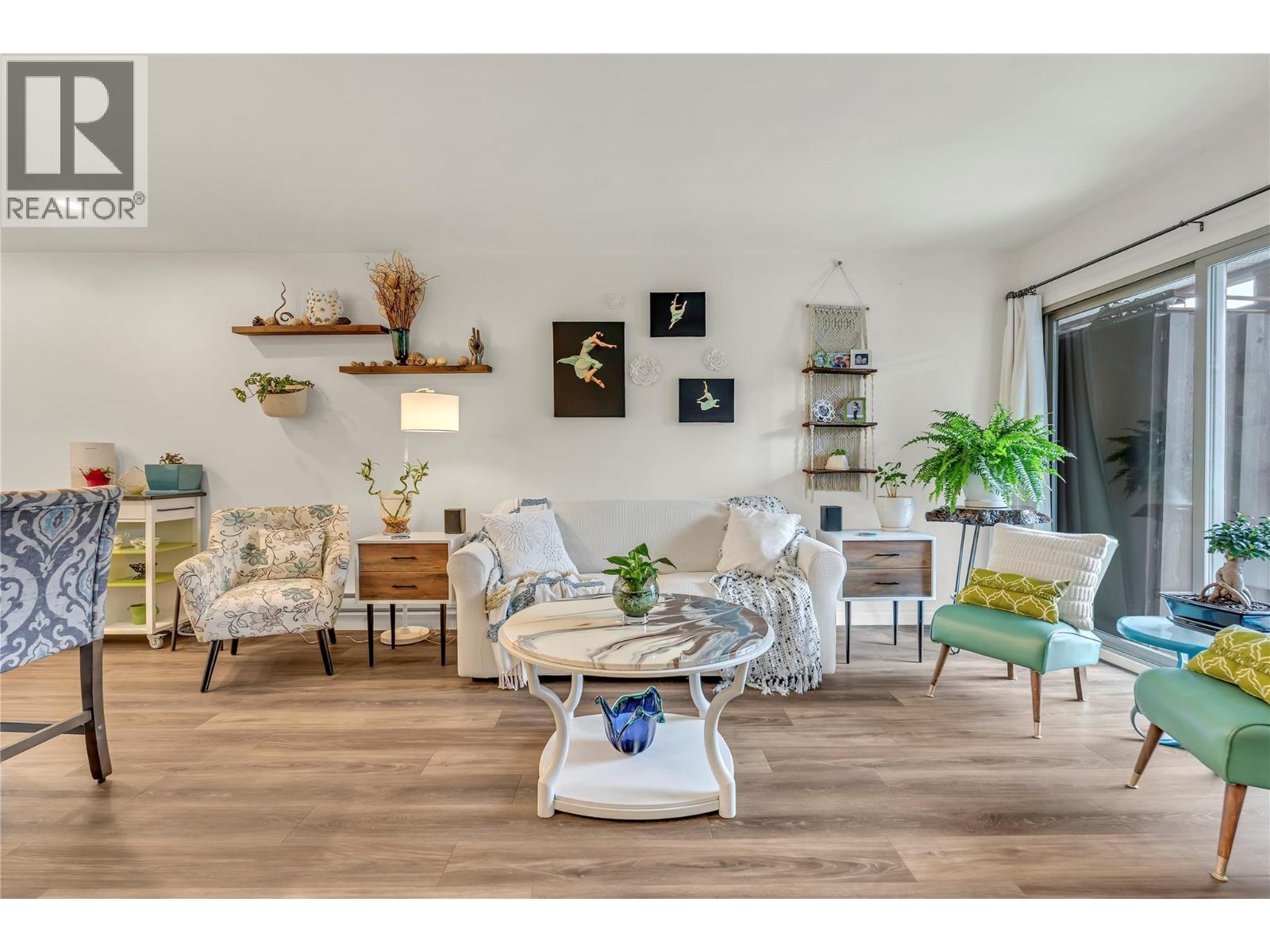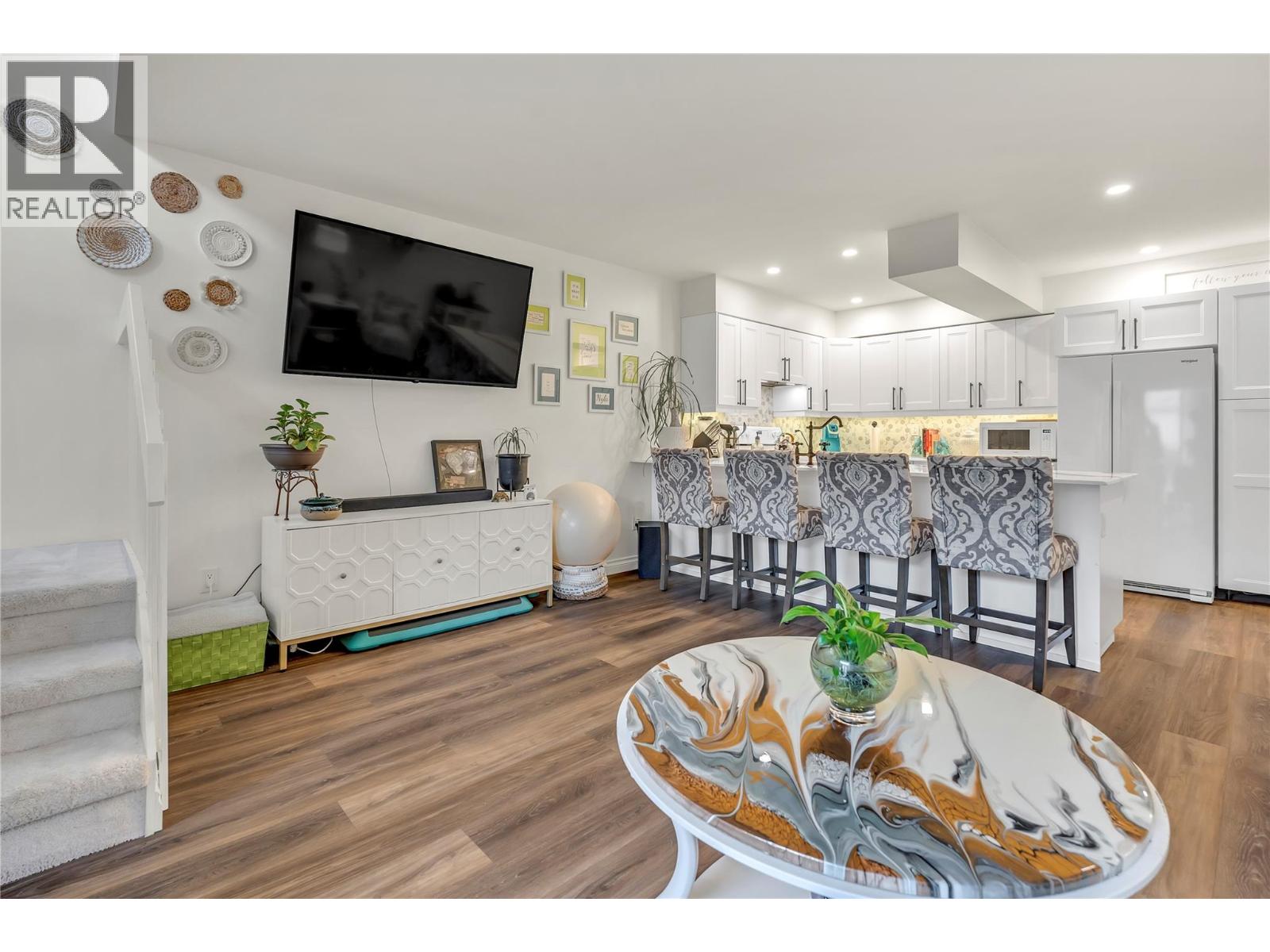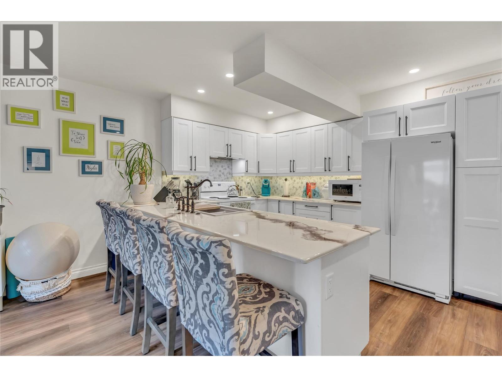 OPEN HOUSE SATURDAY DECEMBER 13 10-11 AM. Thoughtfully renovated 1 Bed 1 Bath condo in Tiffany Gardens. The renovated kitchen has been opened up from the original closed-off layout, with new epoxy countertops complimented with updated white cabinets and a matching extended pantry storage unit. The new vinyl flooring up and down tastefully complements the light and bright space by bringing in some colour dynamics. Under the stairs has been smartly renovated to include a built-in shelving unit with a second accessible storage. The loft space has been closed off, adding extra usable square footage to the bedroom, and also adding a layer of privacy to the home. Additionally, the bathroom has been completely renovated with a tasteful white appearance. There is plenty of storage inside the laundry room. The unit has 2 outdoor spaces to be enjoyed, additionally the bottom patio has a custom storage unit. On a quiet street, within walking distance to Skaha Beach, shops, parks, and school, this location is Penticton perfection. (39303209)
