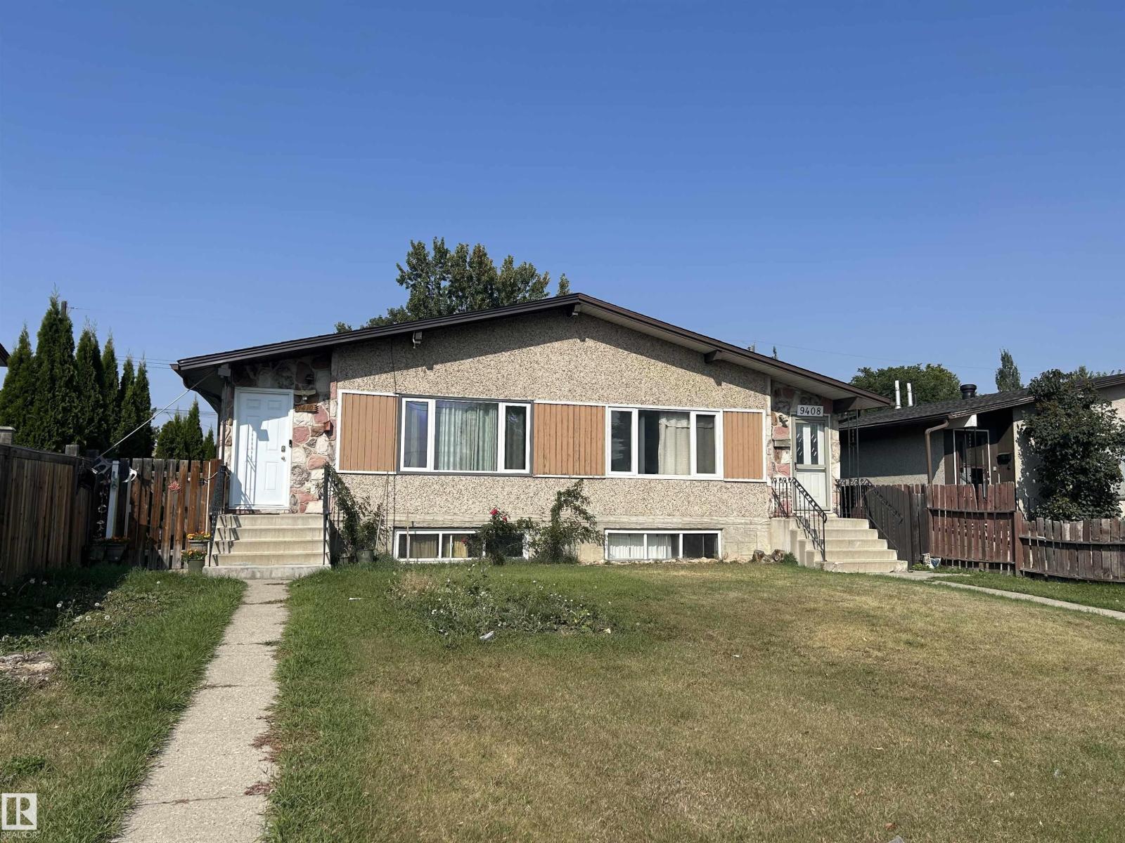 NO CONDO FEES !!! It is registered as a condo but this is regular half duplex.A wise investment property. Great for first time home buyers. This upgraded half duplex has so much potential!Good size kitchen,bright living room 3 bedrooms1.5 bathroom complete the main floor. Downstairs has a separate entrance with mother in-law suite.Newer shingles, soffits, doors, windows and 100 amp electrical panel.Half of a double garage belongs to the unit Quite neighbours. Close to schools, parks, public transportation and Yellowhead Trail. (33399460)